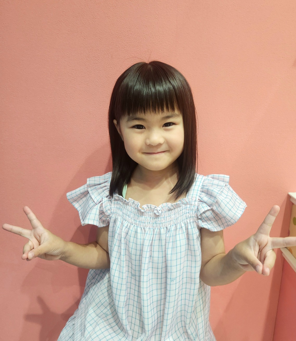 ちあかちゃん 5歳 つや感のあるミディアムスタイルです前髪は軽さを出して、キュートなお顔がさらに可愛くなりました ちあかちゃん、素敵にモデルさんありがとうまた遊びにきてたくさんお話聞かせてね お母様、お写真のご協力ありがとうございましたまたのご利用お待ちしております