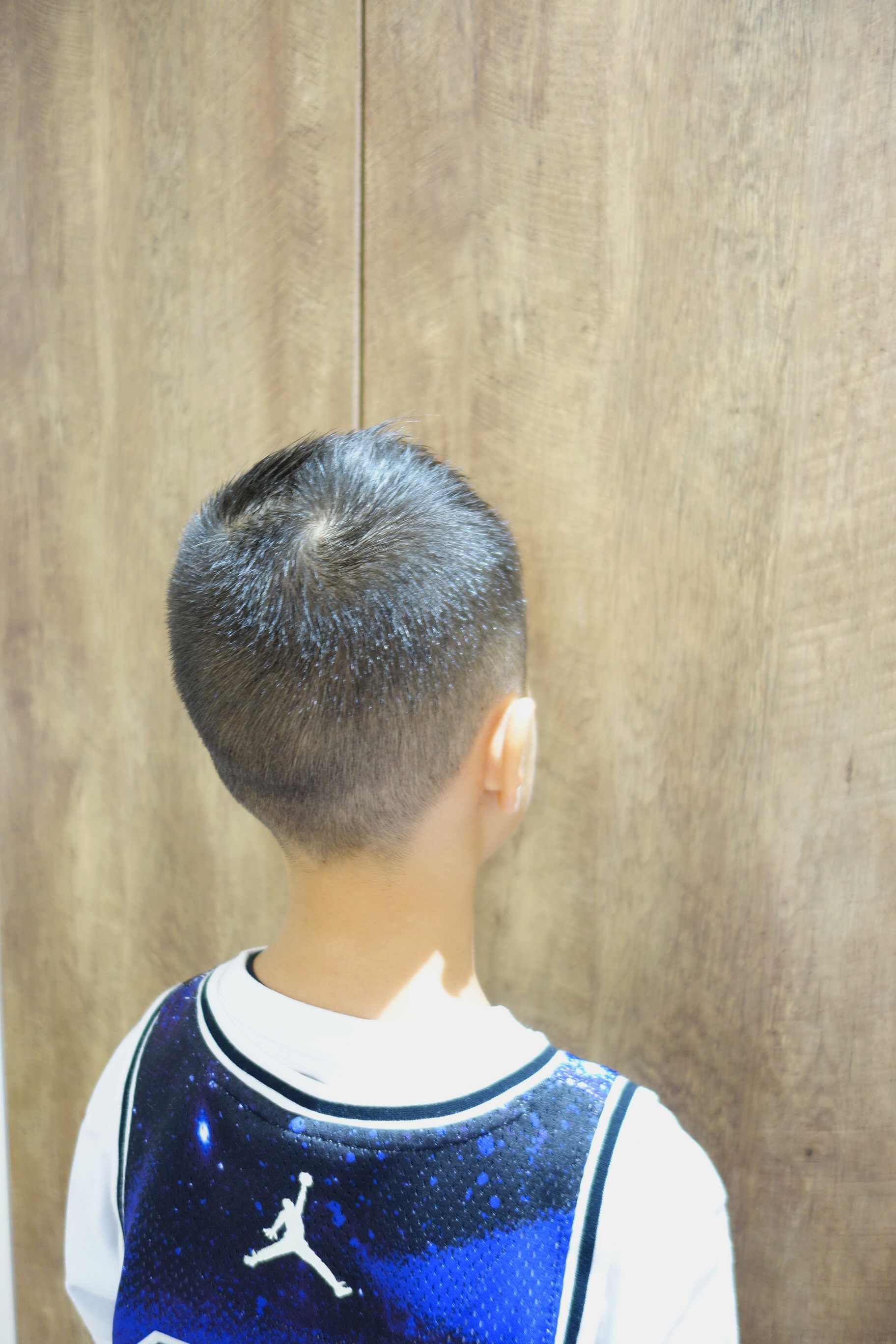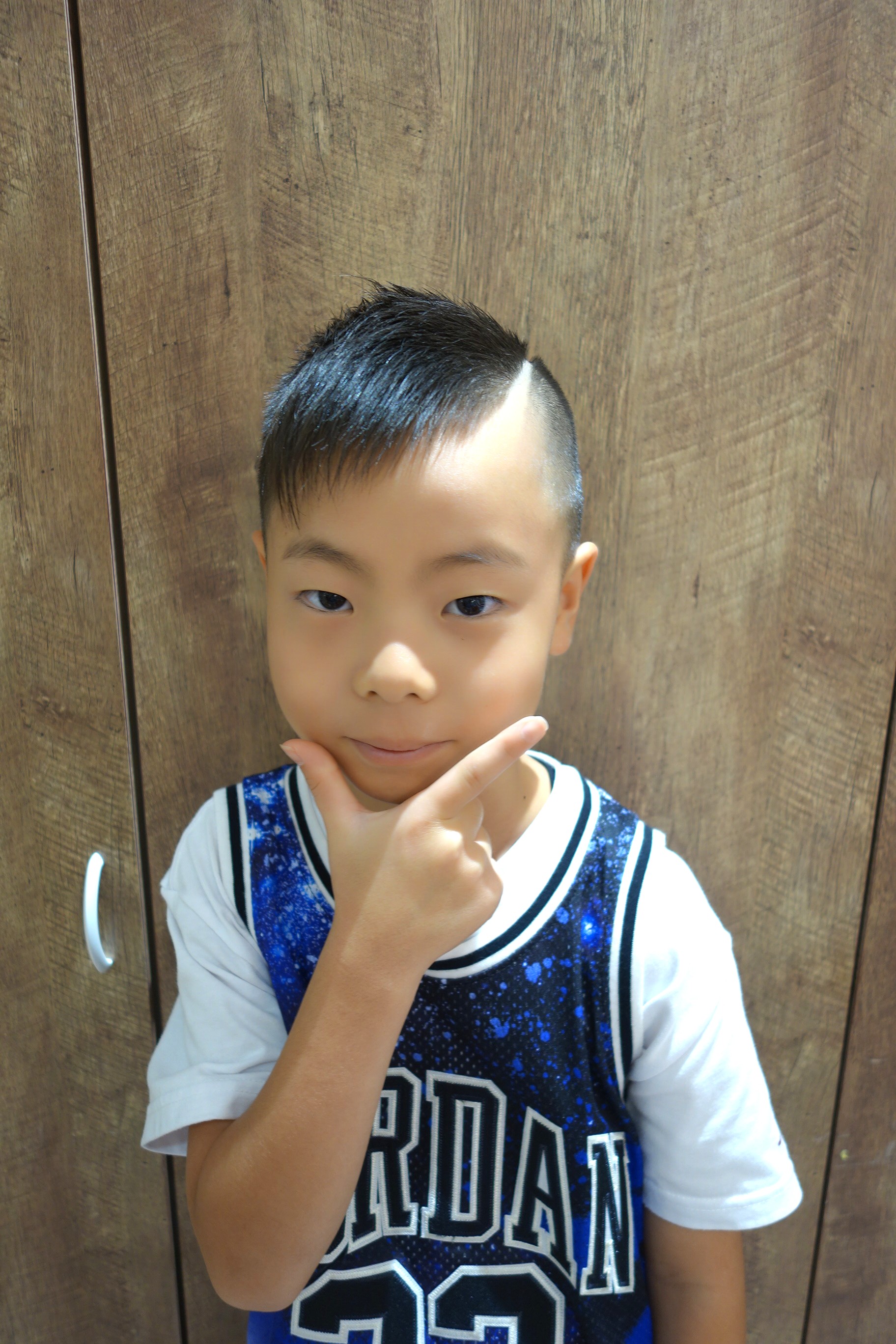 🌟いちとくん 9歳🌟 右→3㎜ローフェード、左→3㎜刈に太めのラインを入れて⚡つむじが2つあり立ちやすいので、おさまるように短めにカット✂️最近はこのスタイルがお気に入りで、最終チェックもしてくれます✨キメ顔もニタ~とした顔もどっちも素敵です🥰いつもありがとう😊チョキ友にご協力してくださりありがとうございます❣️