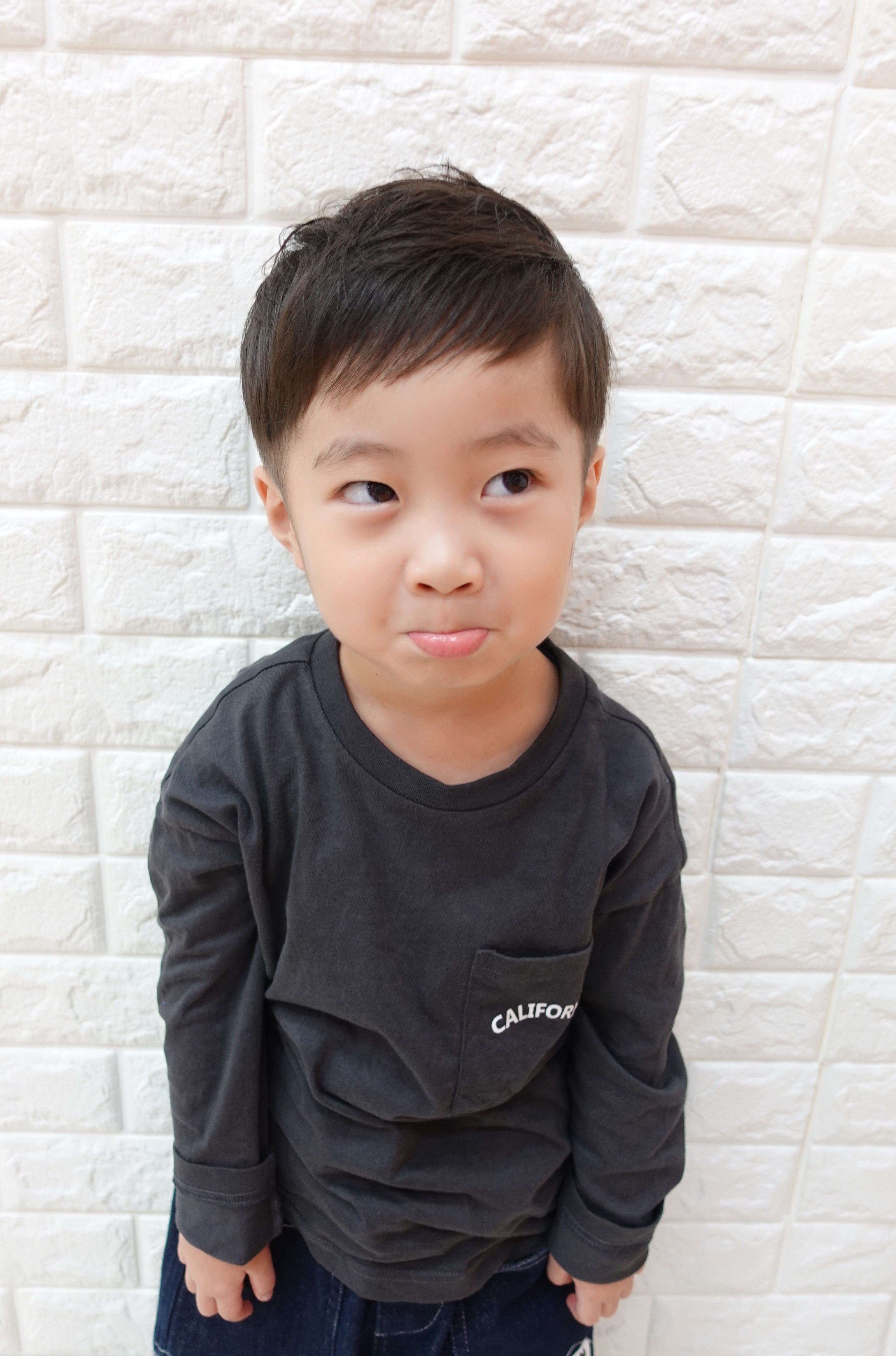 ☆ れんくん 4歳 ☆ サイド6~4mmツーブロックで、バックはバリカンでつなげたスタイルです前髪も流れに合わせて短めに カット中もいっぱいお話してくれたれんくんまたいっぱいお話しようねお写真も色々な表情をしてくれてかわいかったですご協力ありがとうございました