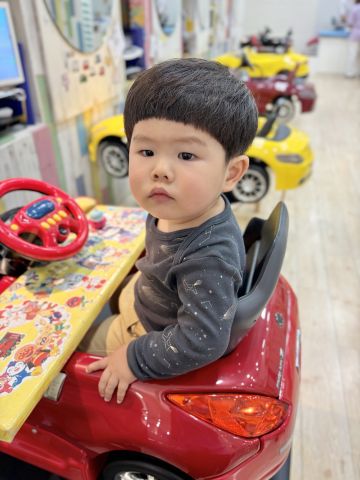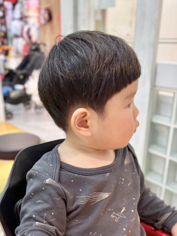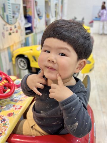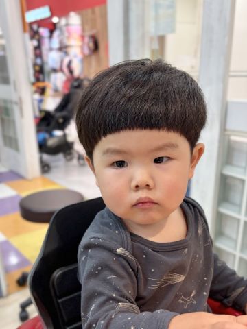 こはるくん1歳☺️初めてのチョッキンズでしたが、とっても上手にカットできました👍まだ1歳さんなのに、カットはもう何回もしていて慣れっこさんでした!緊張していたのかなー?と思いますがいろんなキャラクターやおもちゃに指差して「あった!」をしてくれていてとてもかわいかったですとってもかわいいマッシュスタイルになりました✨ぱっつんすぎないくらいで全体を調整してあります!ブログのご協力ありがとうございました😊