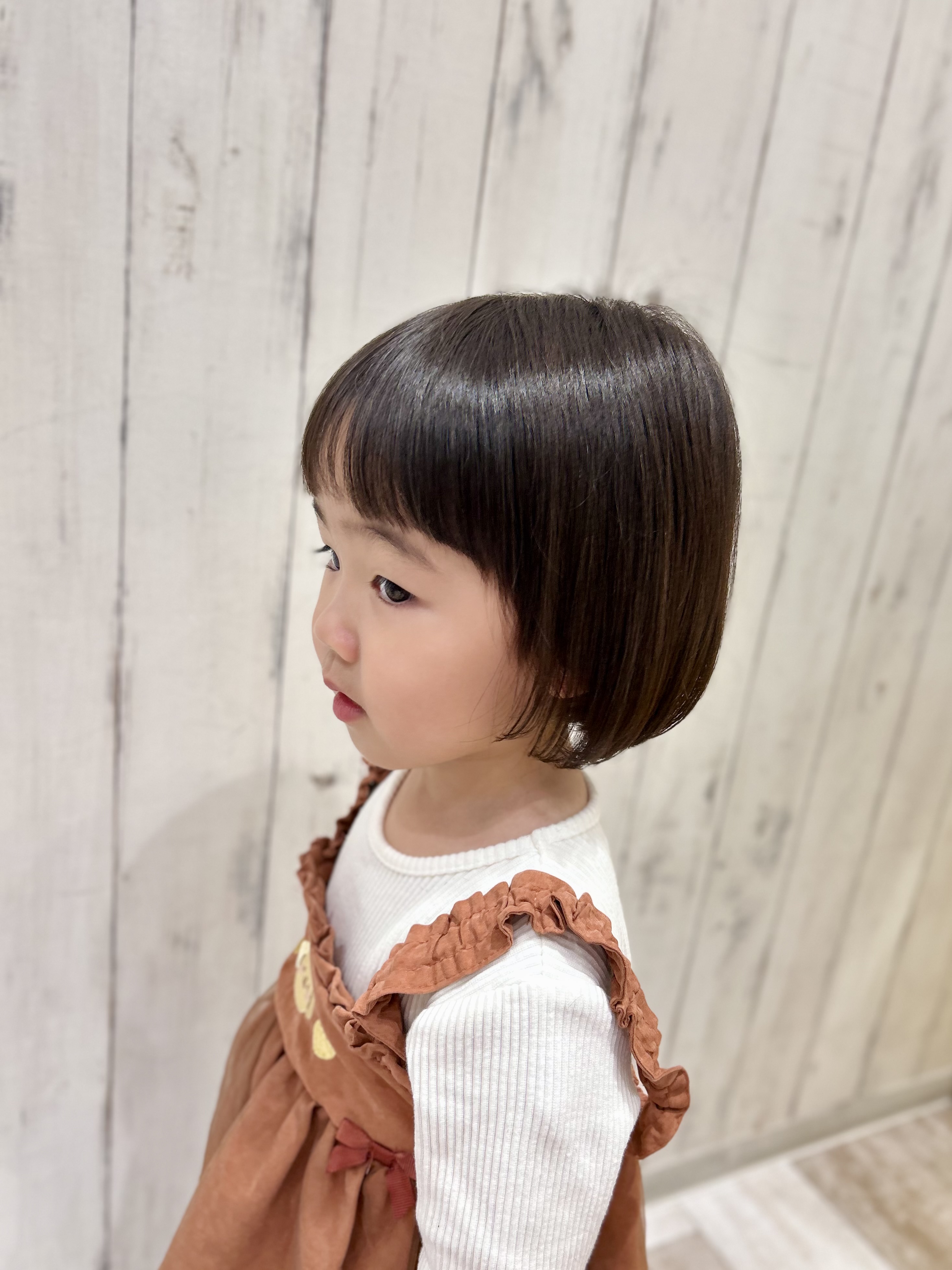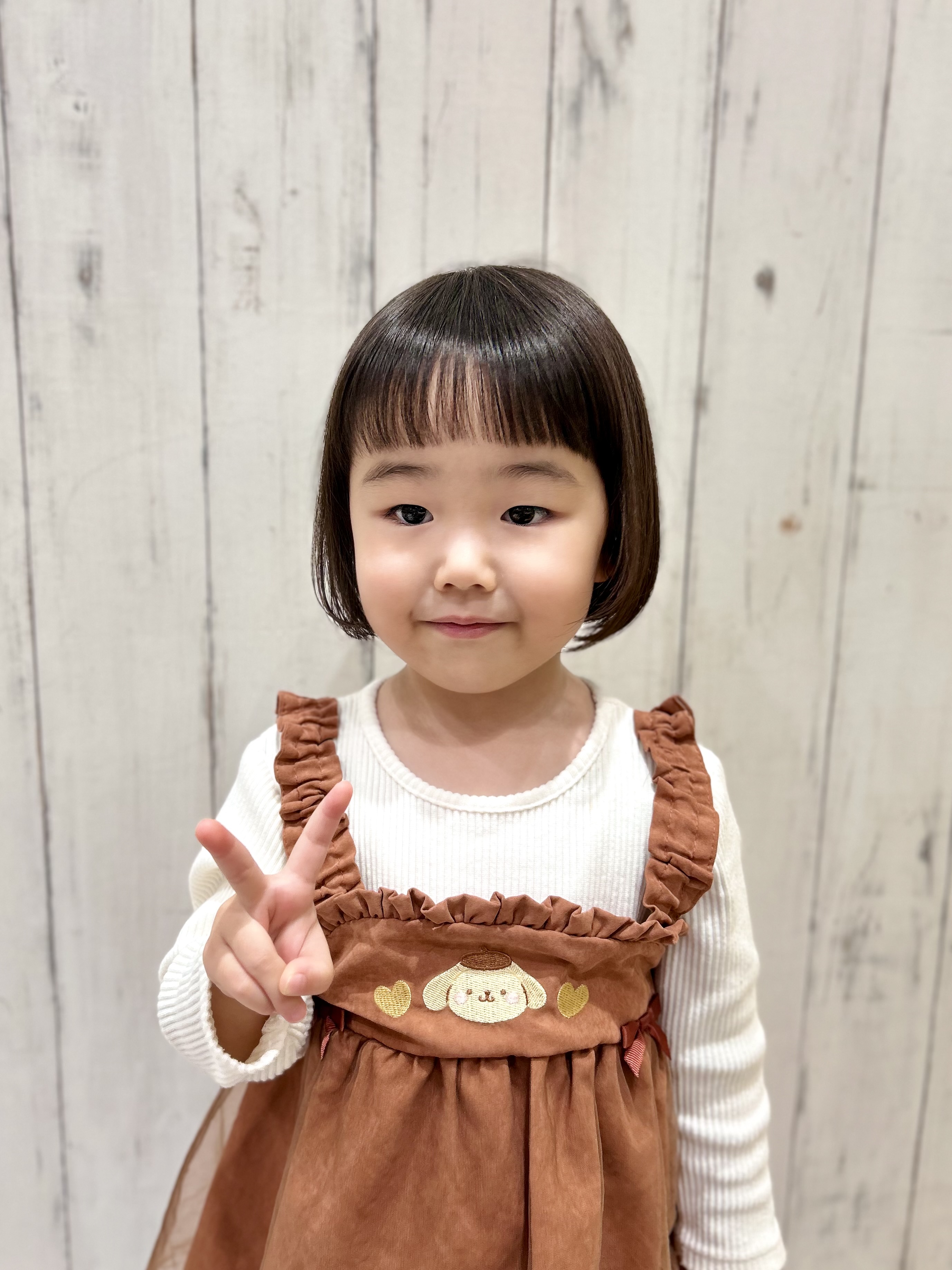 きなちゃん 3歳 ふんわりボブスタイル🫧動きのある髪質を活かしながら、可愛いさ抜群のふんわりボブに仕上げました❣️❣️3歳の七五三のお着物にもぴったりなスタイルです✨💄 撮影のご協力ありがとうございました🤗