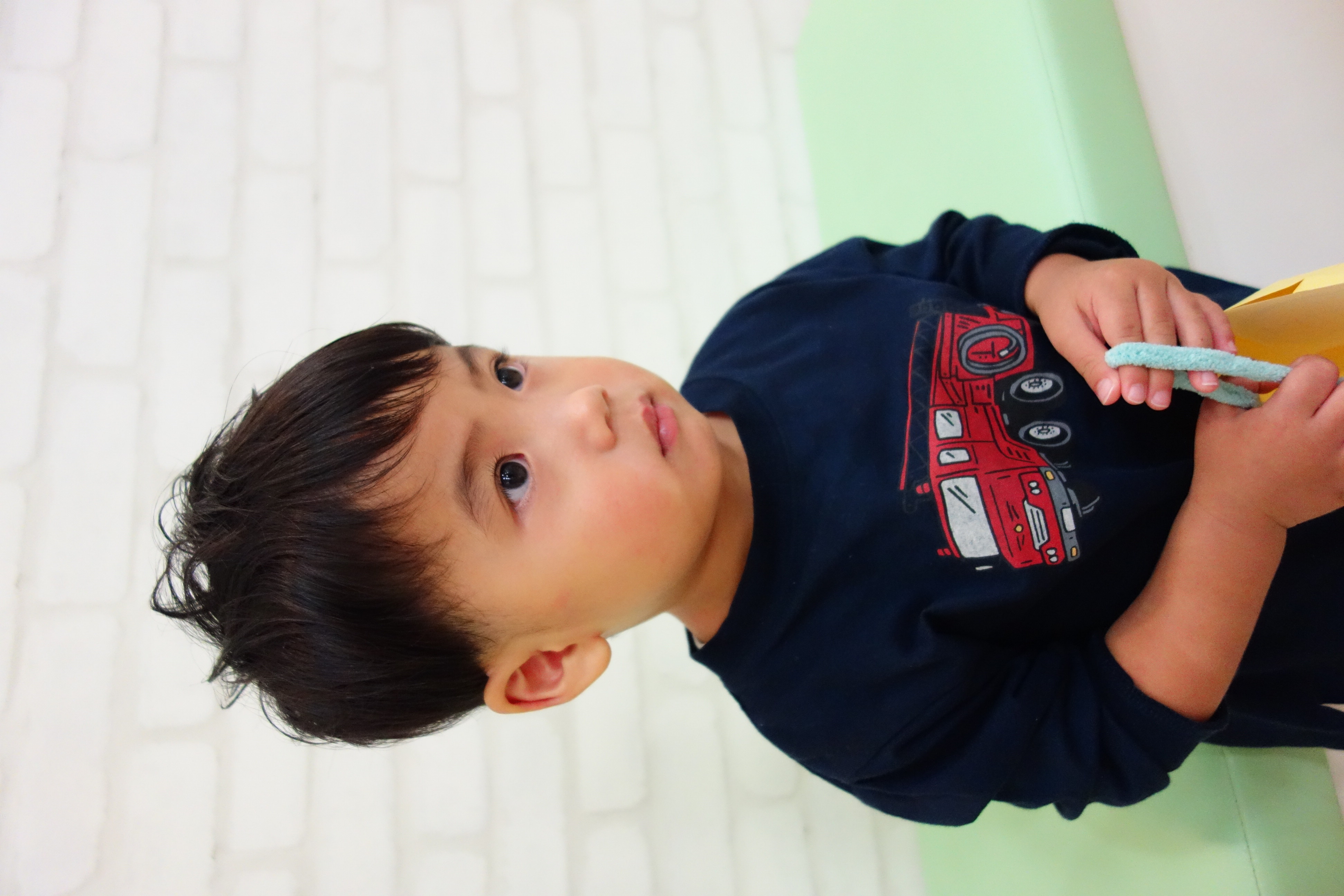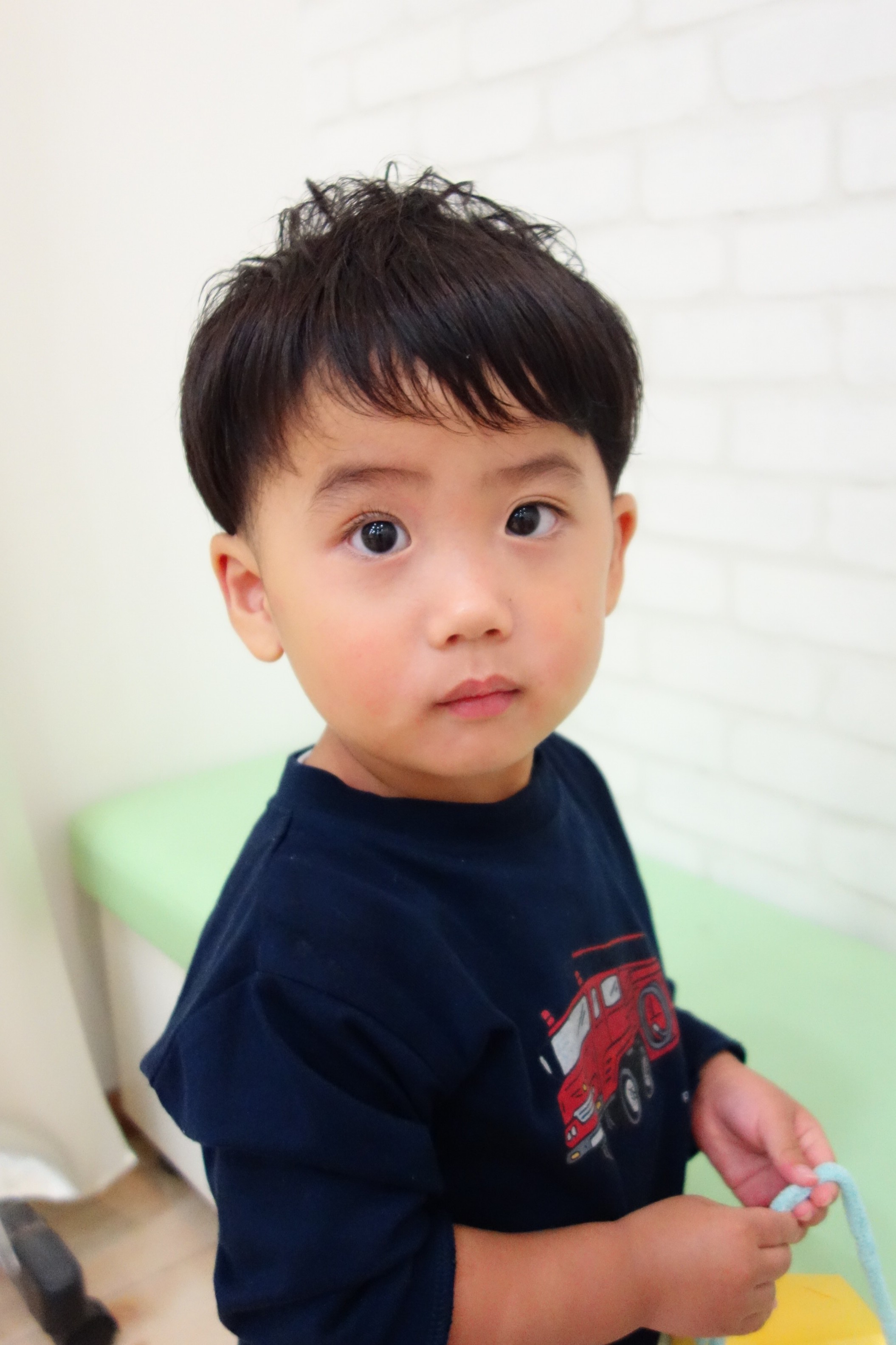 ★ 2さい 男の子 ★サイドは6ミリで刈り上げたツーブロック、えりあしも長め設定のバリカンでナチュラルにかりあげてあります。かわいいくせ毛をいかして動きが出るようにカットしました。と~~~~~っても上手にちょきちょきさせてくれました^^またレイクタウンに遊びに来てね♪ご家族のみなさまもありがとうございました^^