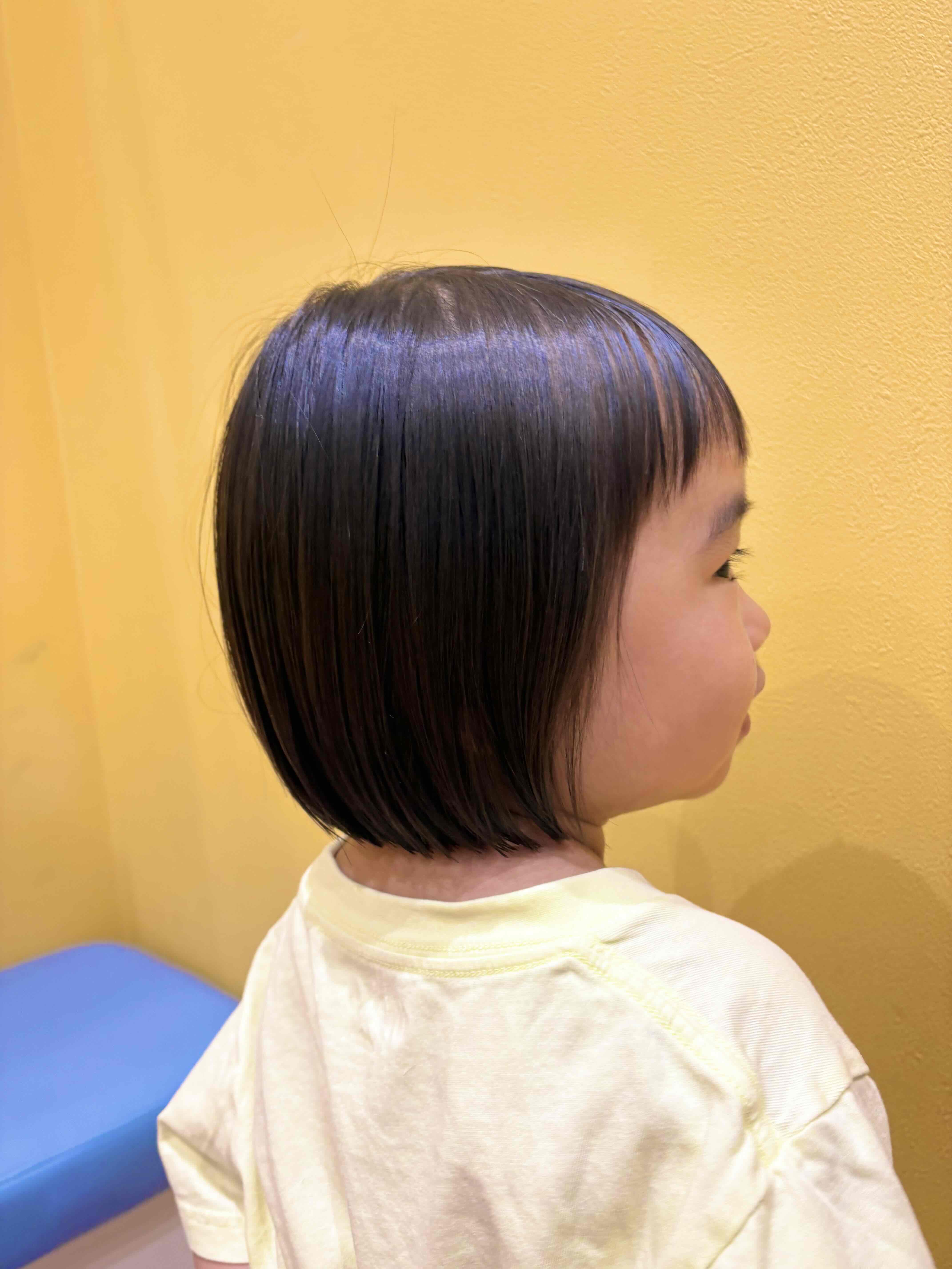 まどかちゃん 3歳 今日はまどかちゃんがちょっきんしにきてくれました👏🏻七五三終わりでばっさりボブにしました✂️✨️前髪も短めで自然に可愛らしく😻最後は頑張ってピースしてくれました✌🏻お母様、お写真のご協力ありがとうございました。またのご来店お待ちしております。