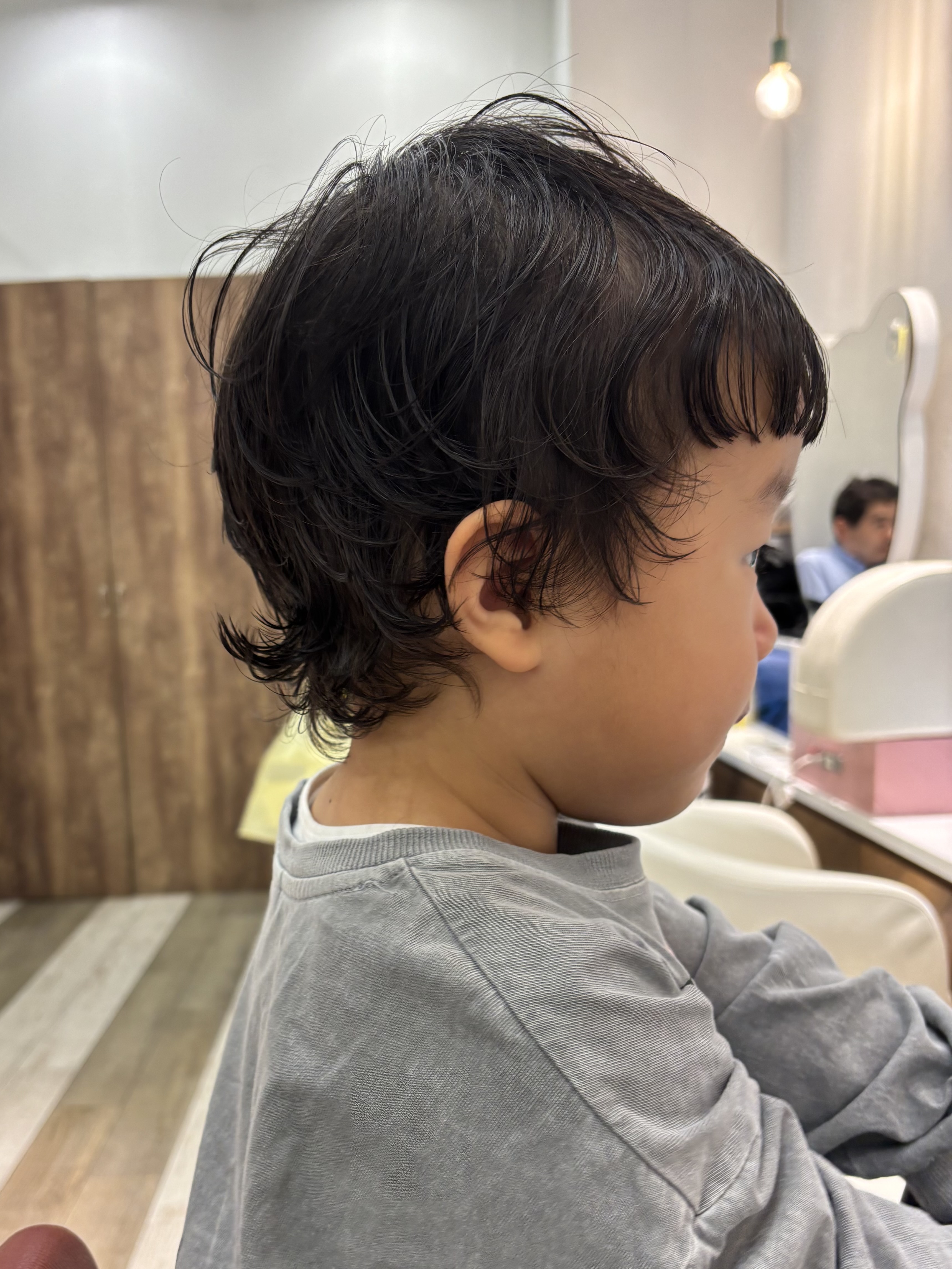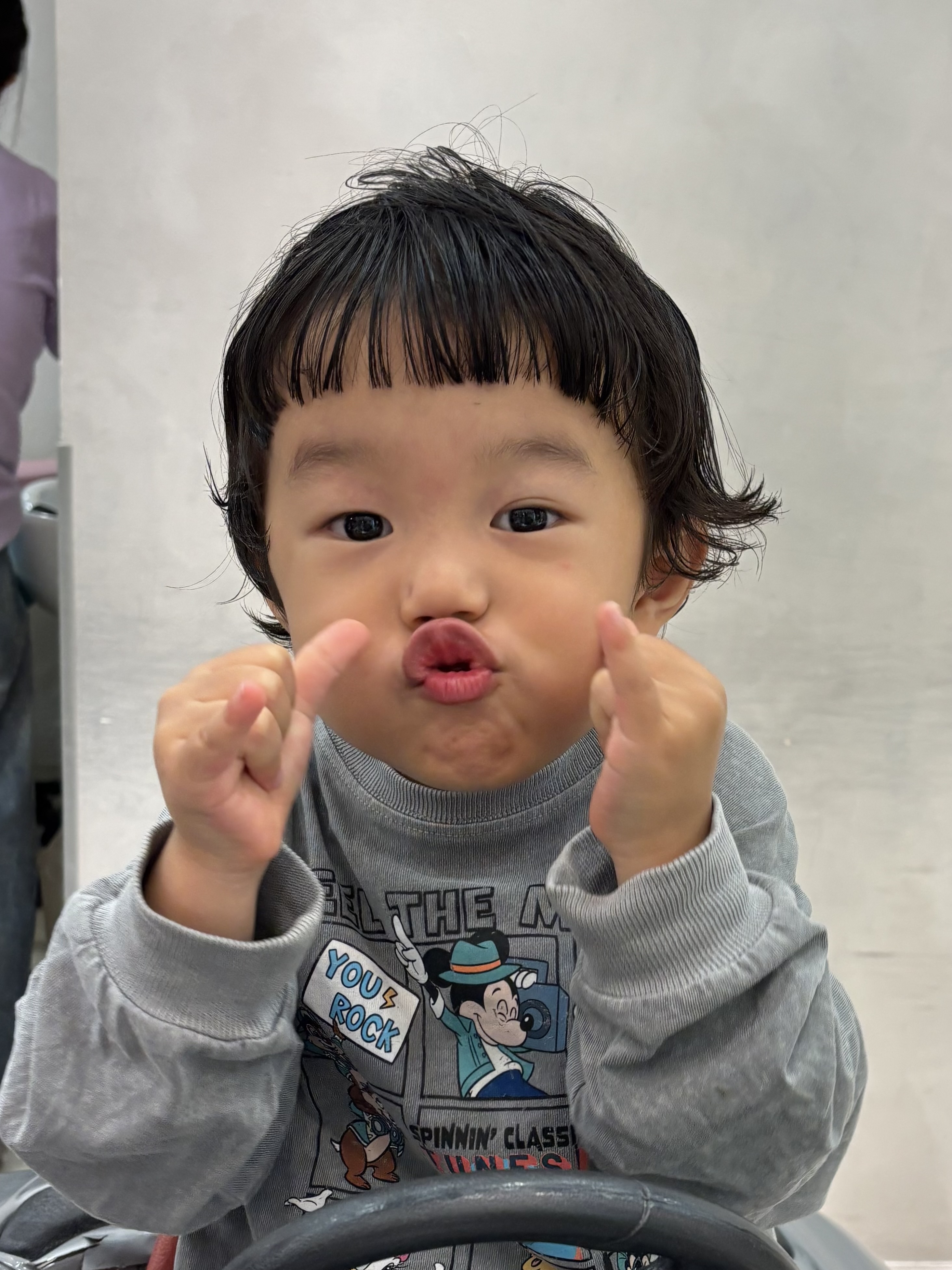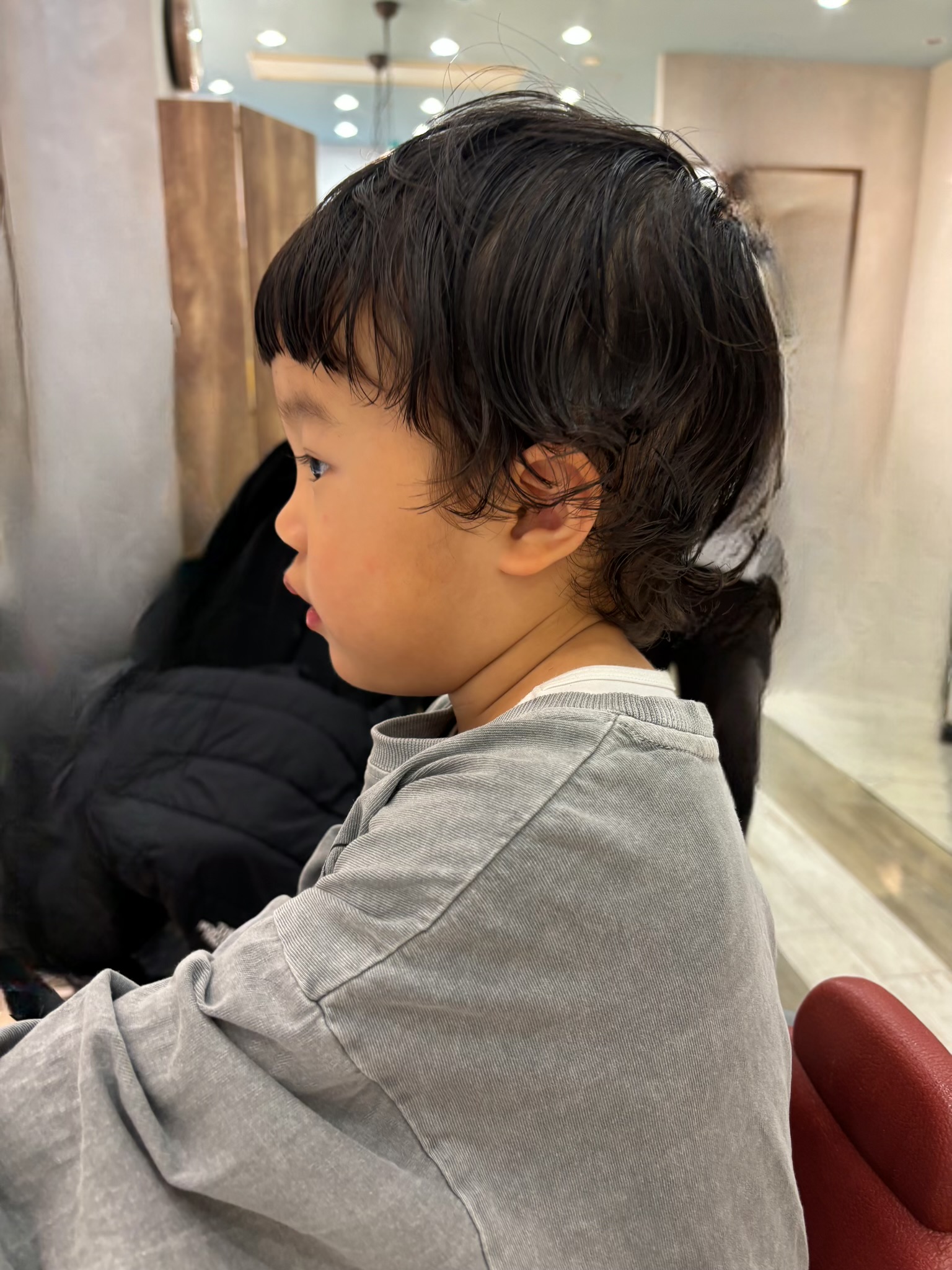 ☆ Uくん 2さい ☆ とても上手に頑張ったUくん 前髪はぱっつん、横と後ろは伸びてきた髪の毛とくせ毛を活かしてウルフカットにしました^^ とても似合っていて素敵でしたー!! 最後のポーズもかわいいです♡ お写真ご協力ありがとうございました!!!^^