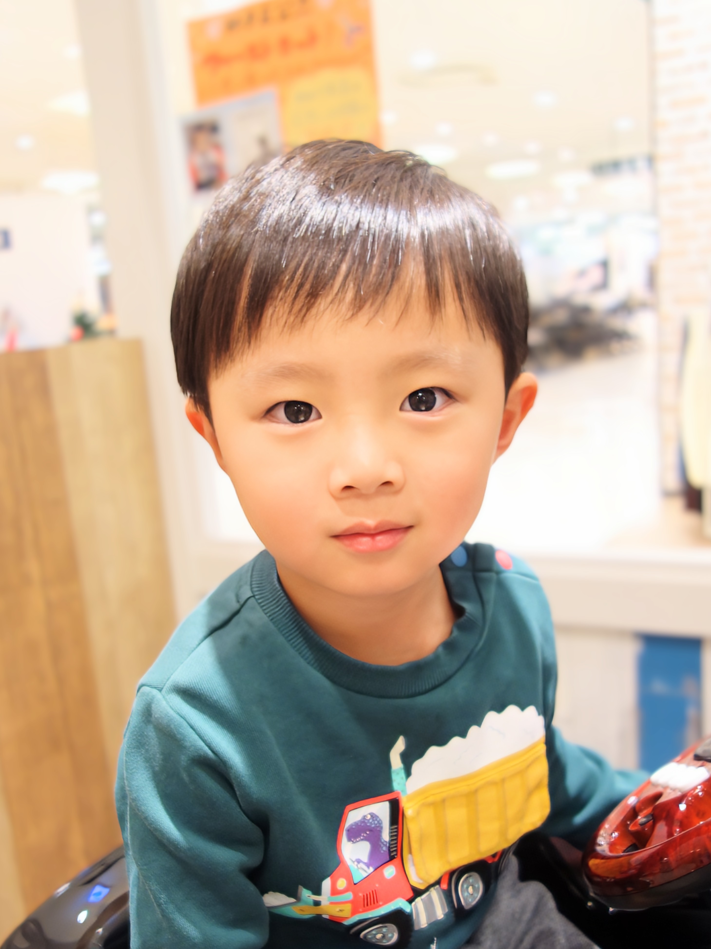 ゆうきくん 3さい 耳出しショート、前髪ななめ カット中も、大好きな車のDVDをみながらおりこうさんでした!スッキリしてカッコよくなったね 撮影のご協力ありがとうございます。またのご利用お待ちしております。
