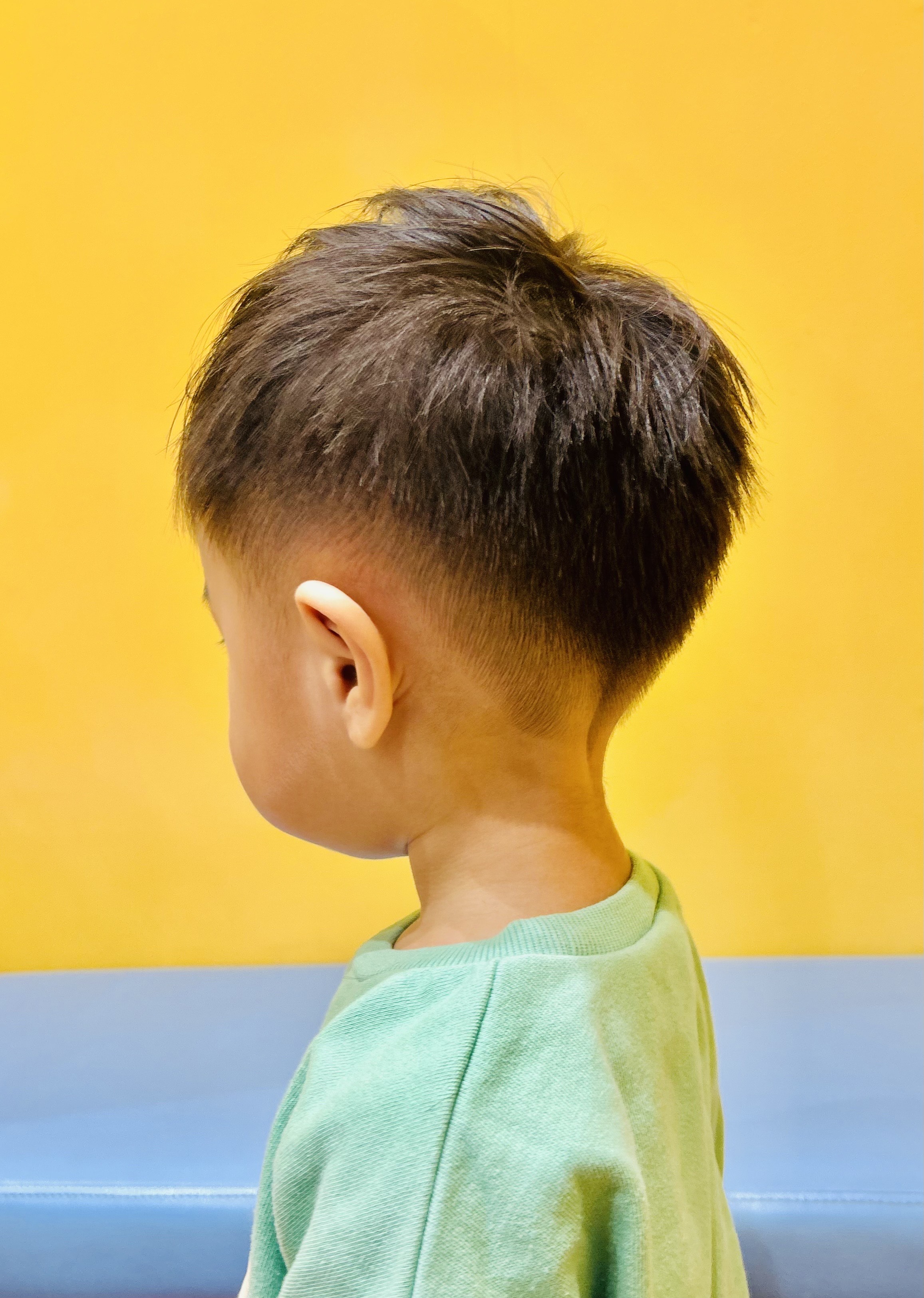 かなと君 1歳 今日は、かなと君が髪を切りにきてくれました人気のルーセントフェードで前髪はアシメにしたおしゃれなスタイルすそ周りはすっきりできて、ハチ周りはグラデーションで刈り上げるので骨格カバーができます!気になった方は是非チェックしてみてください!!最後のモデルさんみたいなポーズが素敵お母様、ブログのご協力ありがとうございました。またのご利用をお待ちしております。