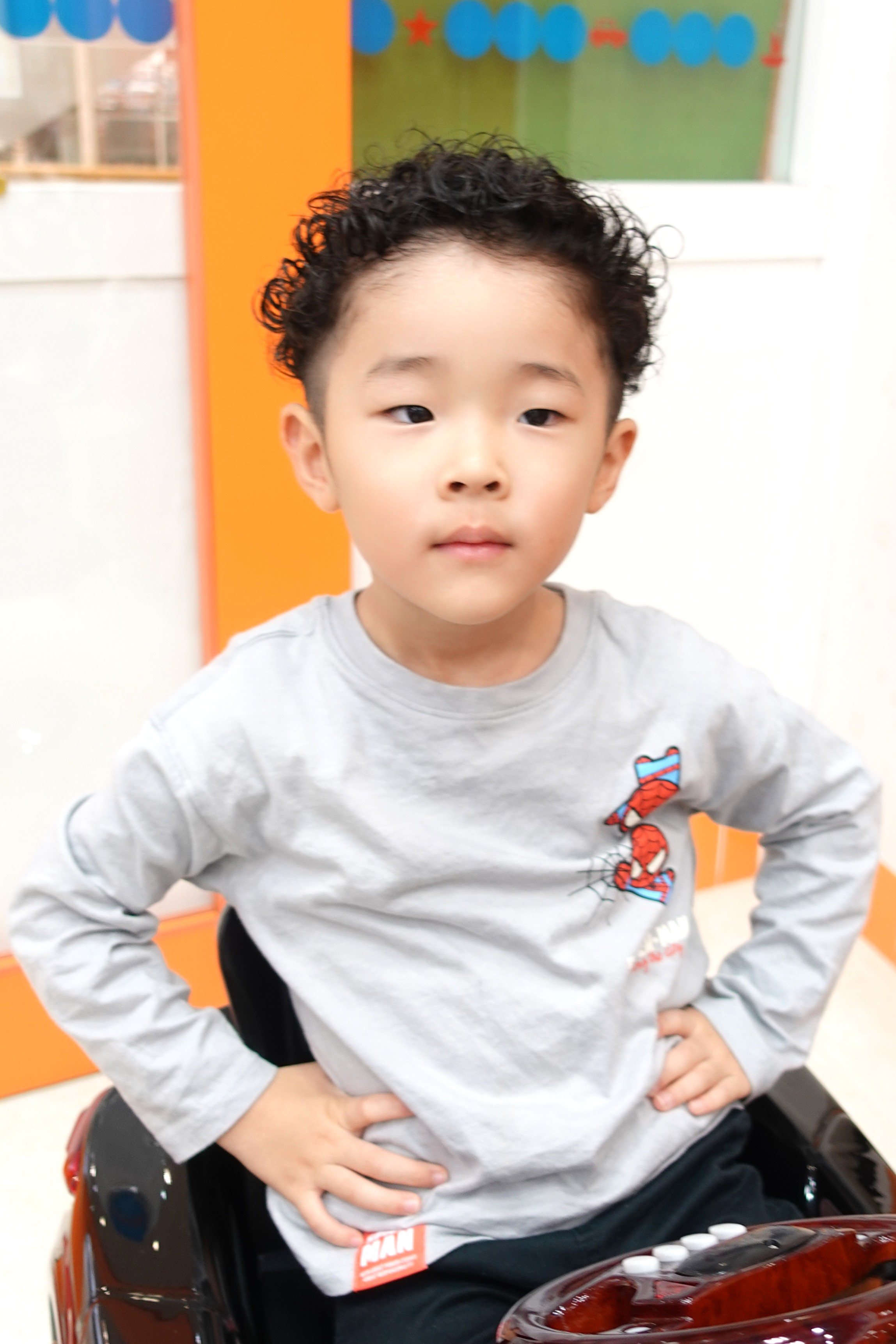 ☆ とあ君 4さい ☆ 七五三お写真の記念に パーマをかけたよ サイドとバックは4mmの長さで刈り上げてツーブロックにしスッキリとして、 前髪はアップバングにセットしておでこだし 気分変えて前髪おろすスタイルも出来ます。 お写真のご協力ありがとうございました。