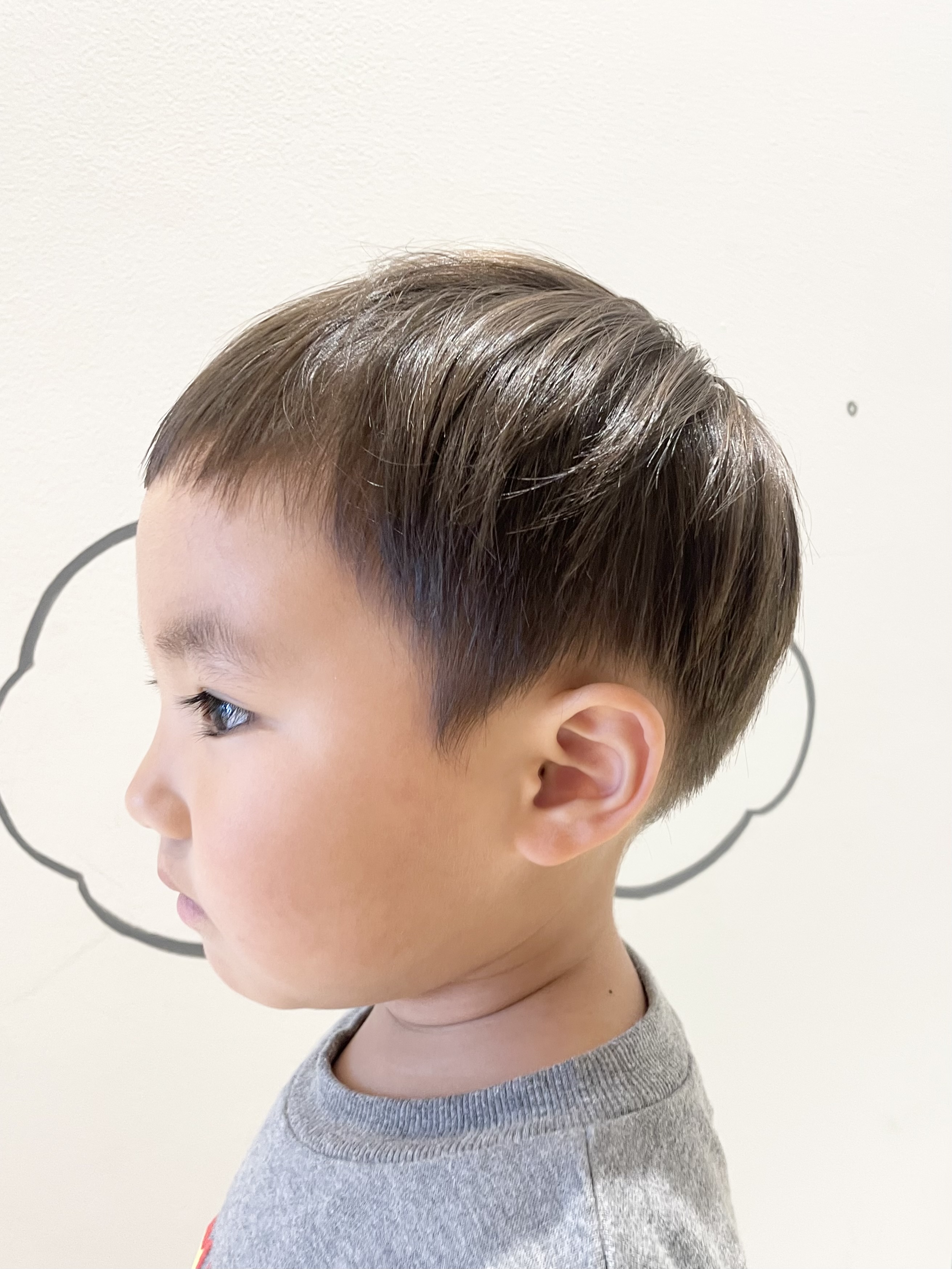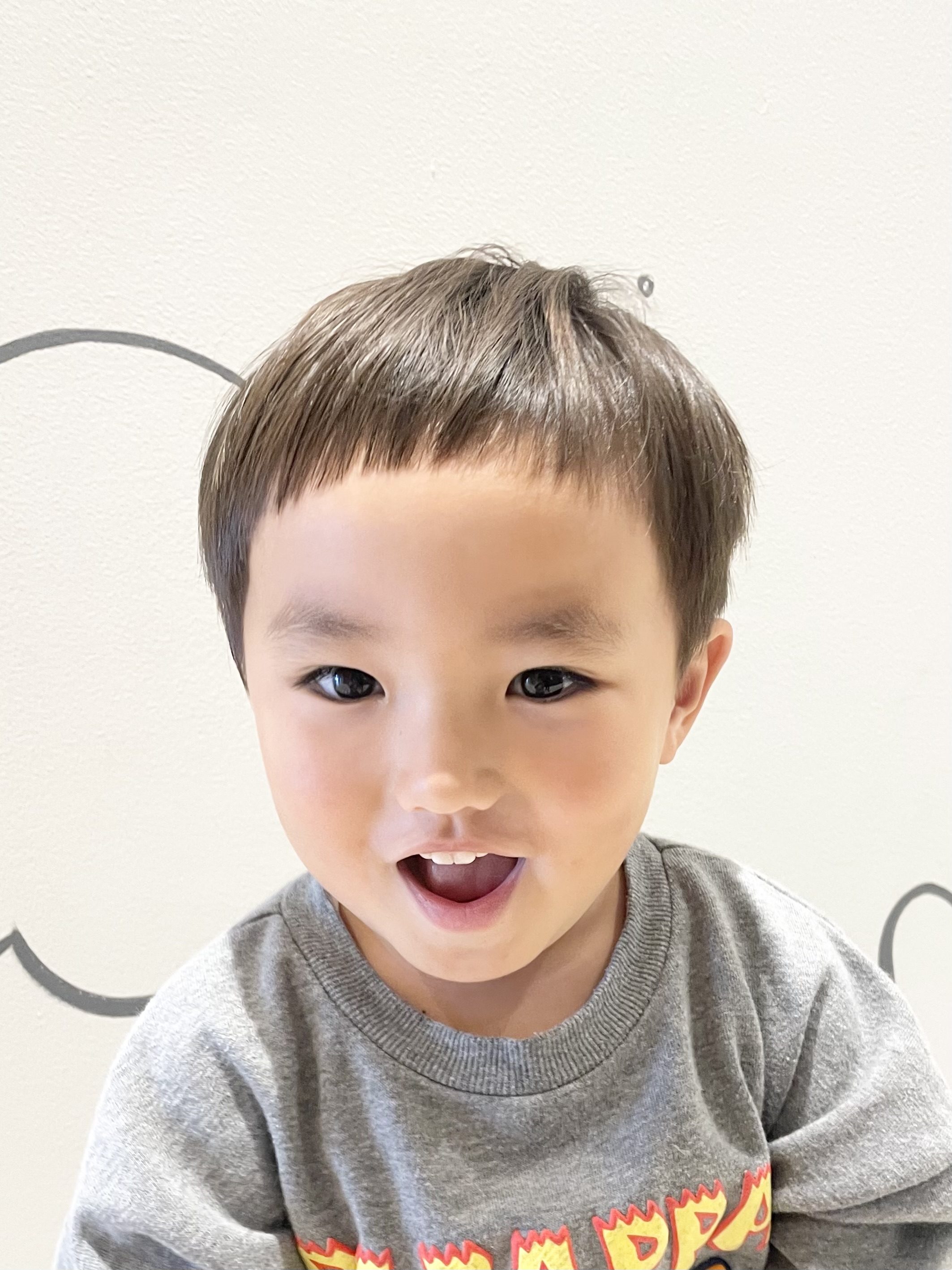 なるくん 3才遠くにお引越しをして今回久しぶりのご来店。おじいちゃんおばあちゃんに会いに来て髪の毛もチョキチョキしに来てくれてました😄前髪はおでこぎりぎりからラウンドにつなげたマッシュスタイルバックはスッキリめにほんのりかりあげました✂️なるくん、車の運転もお話もとーっても上手だったね最初ちょっと緊張しながらお写真も最後にはとびっきりの笑顔をありがとうまたチョッキンズに遊びにきてね❣️お母様ブログのご協力ありがとうございました。