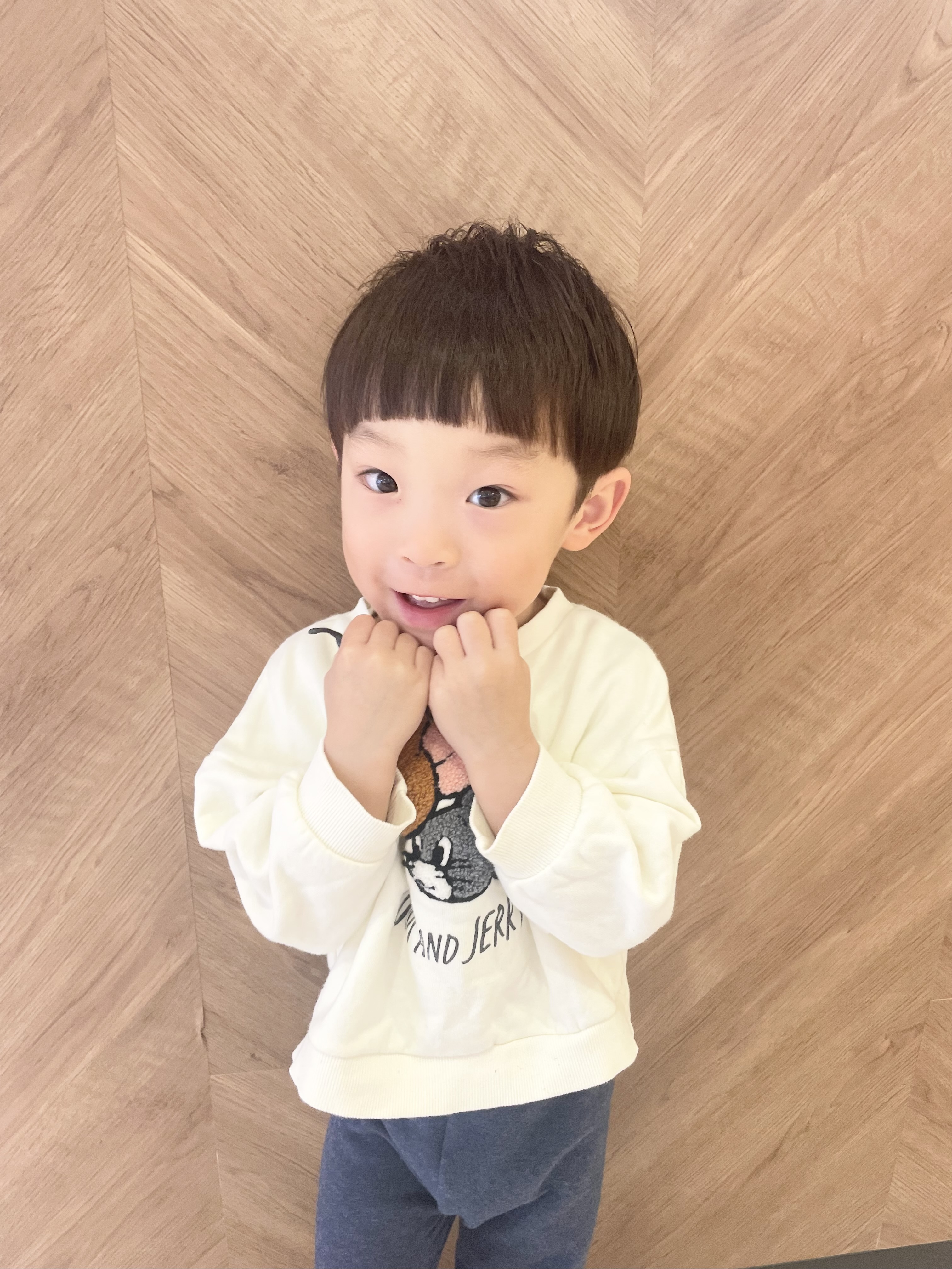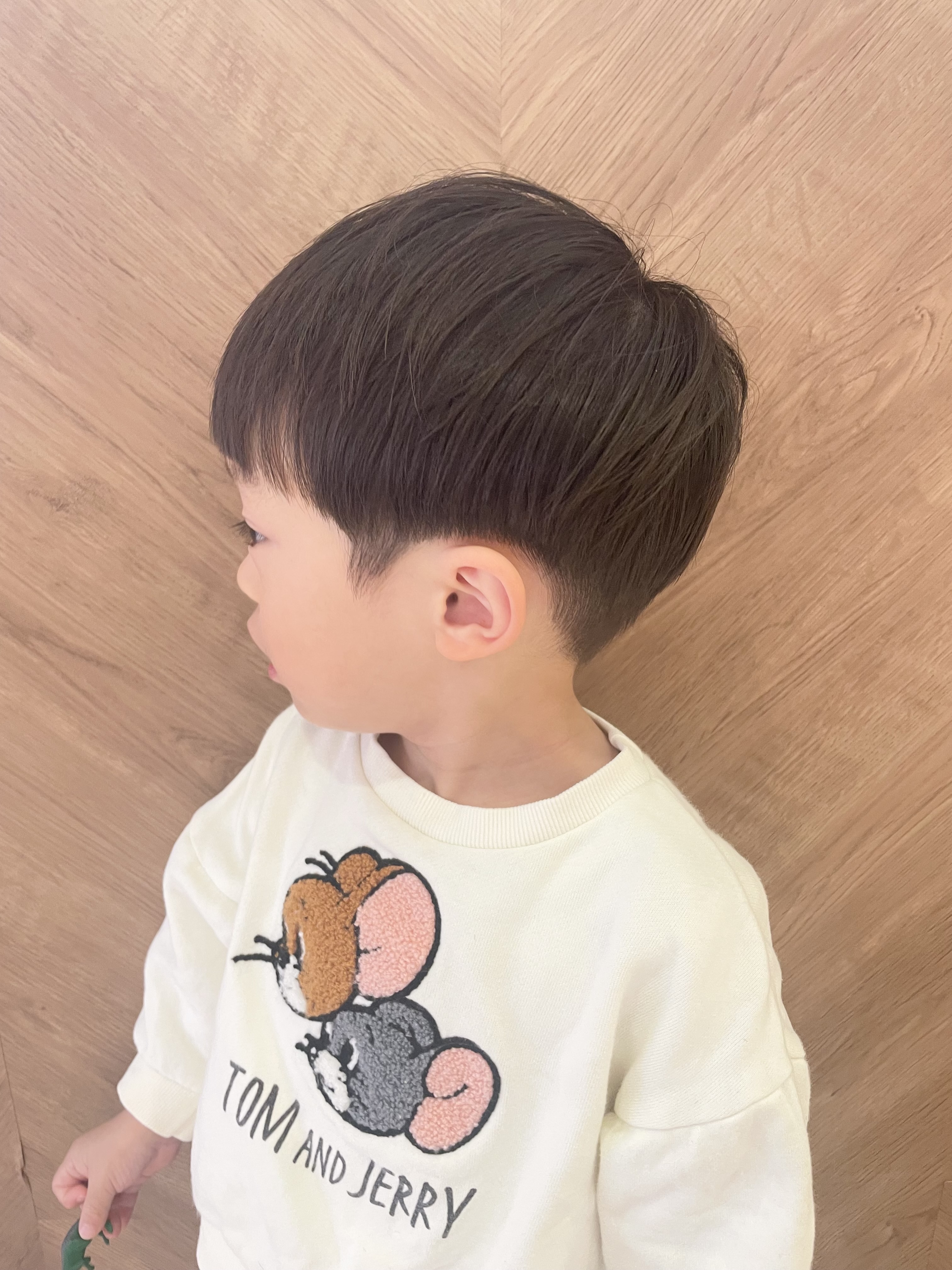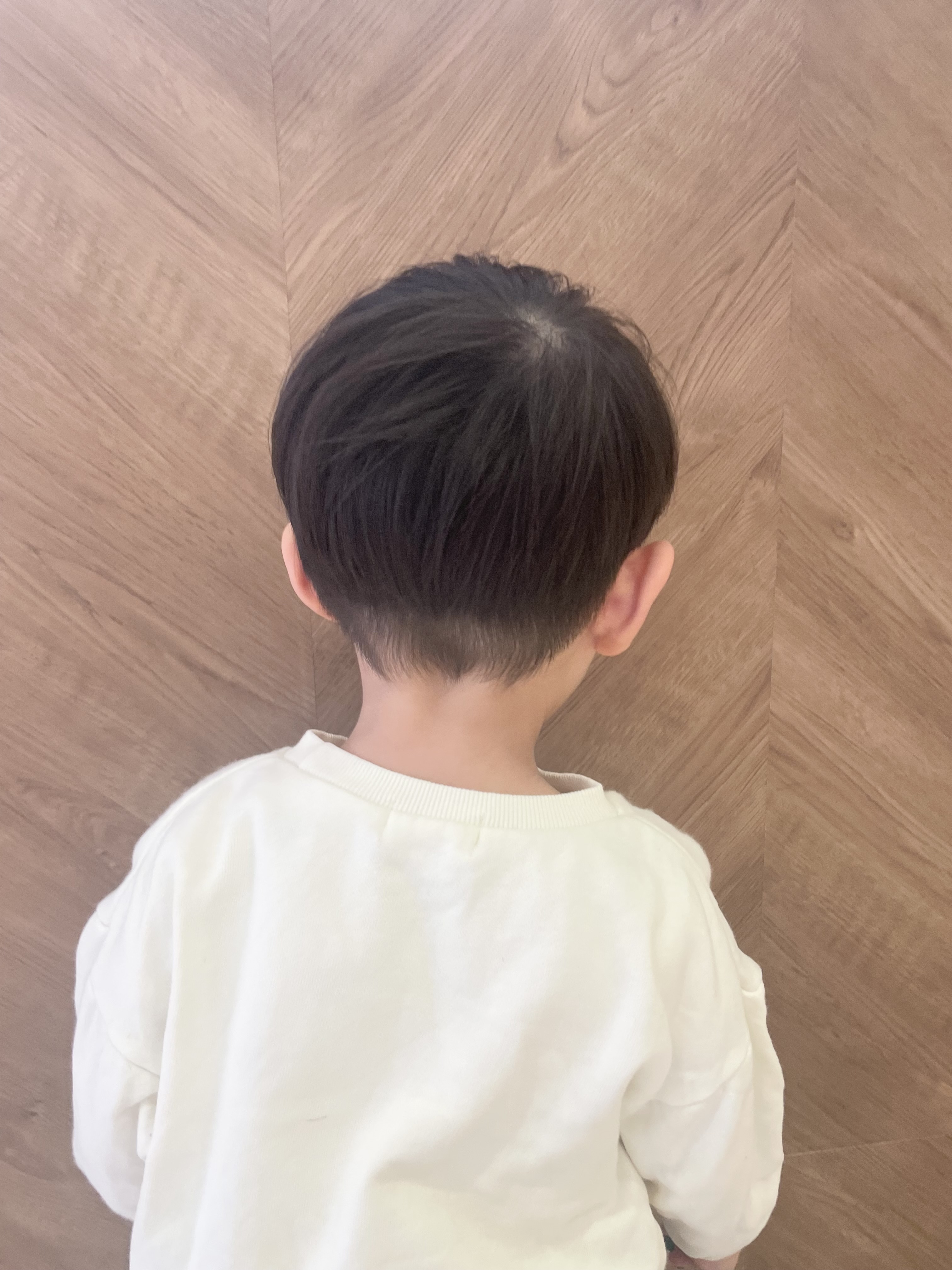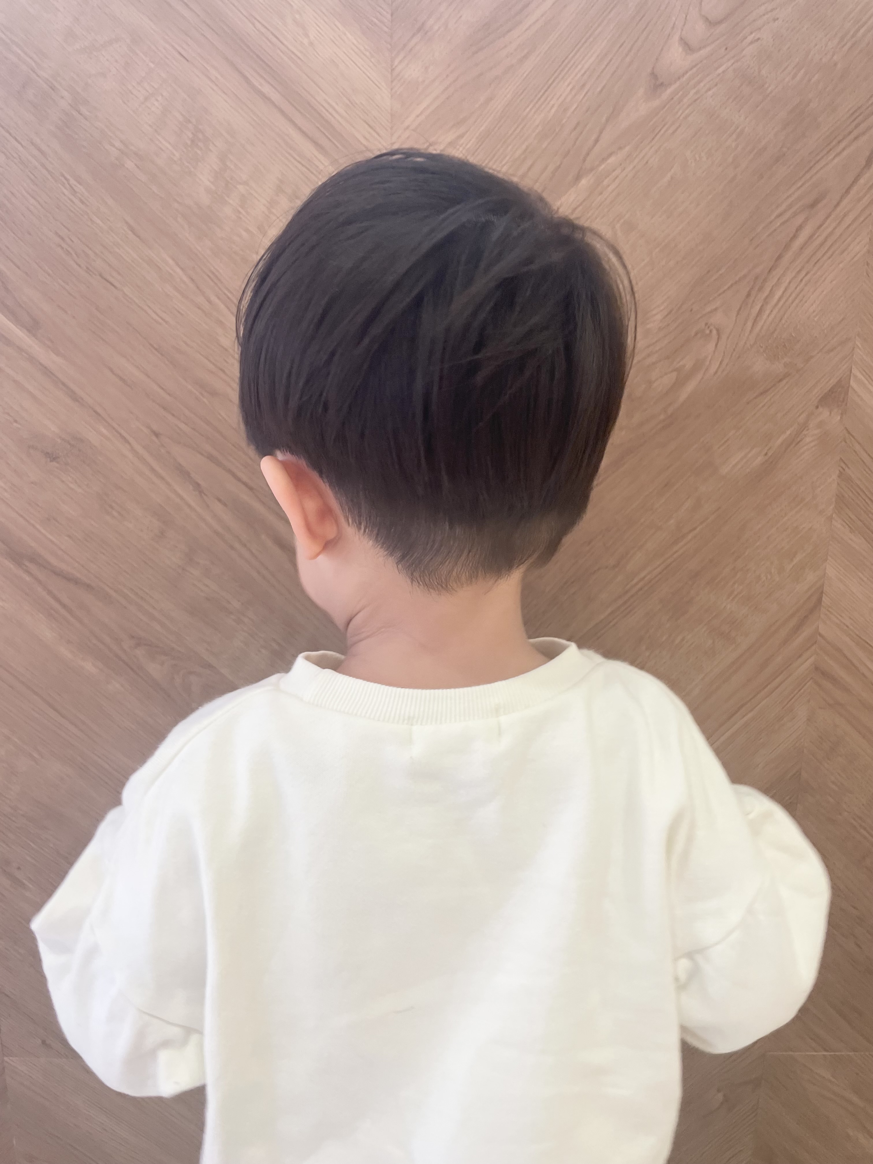 そうたろうくん 3さい 内側は横も一周バリカンを入れて、後ろはガッツリ刈り上げが見えるように横は長めに被せ、前下がりなかっこいいスタイルです前髪のラウンドぱっつんと、TOPの長さを残し丸いフォルムでかわいさも大好きなトミカと一緒にチョキチョキ楽しかったね!!キュートなお写真ありがとうまたお店で待ってるね~! お写真のご協力ありがとうございました。またのご利用お待ちしております!