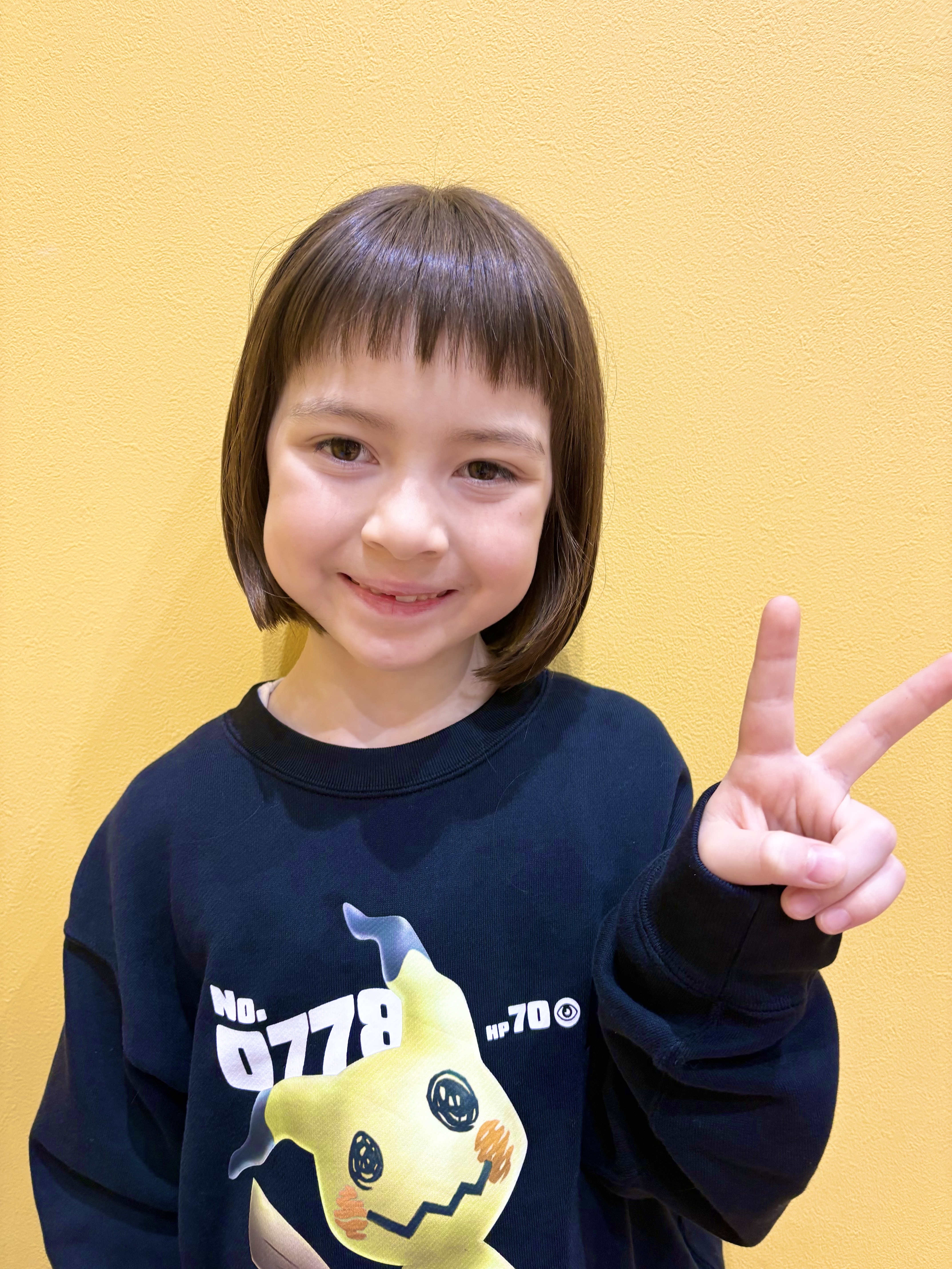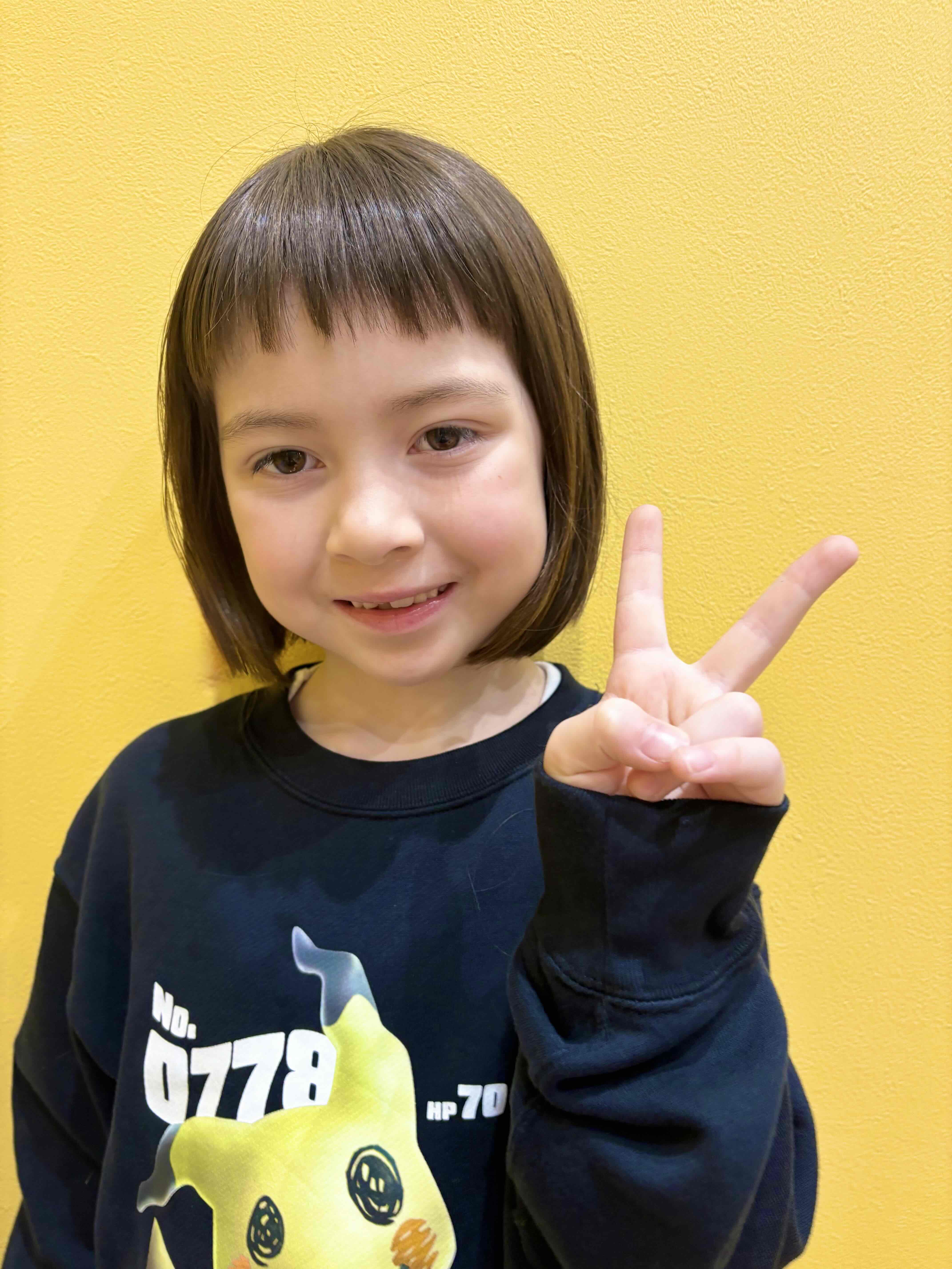 りんちゃん 7歳 りんちゃんがちょっきんしに来てくれました!!ばっさり切ってボブに大変身前髪もおでこ半分で可愛らしく自然に短いのもとっても似合ってるね お父様お母様、お写真のご協力ありがとうございました。またのご利用をお待ちしております。