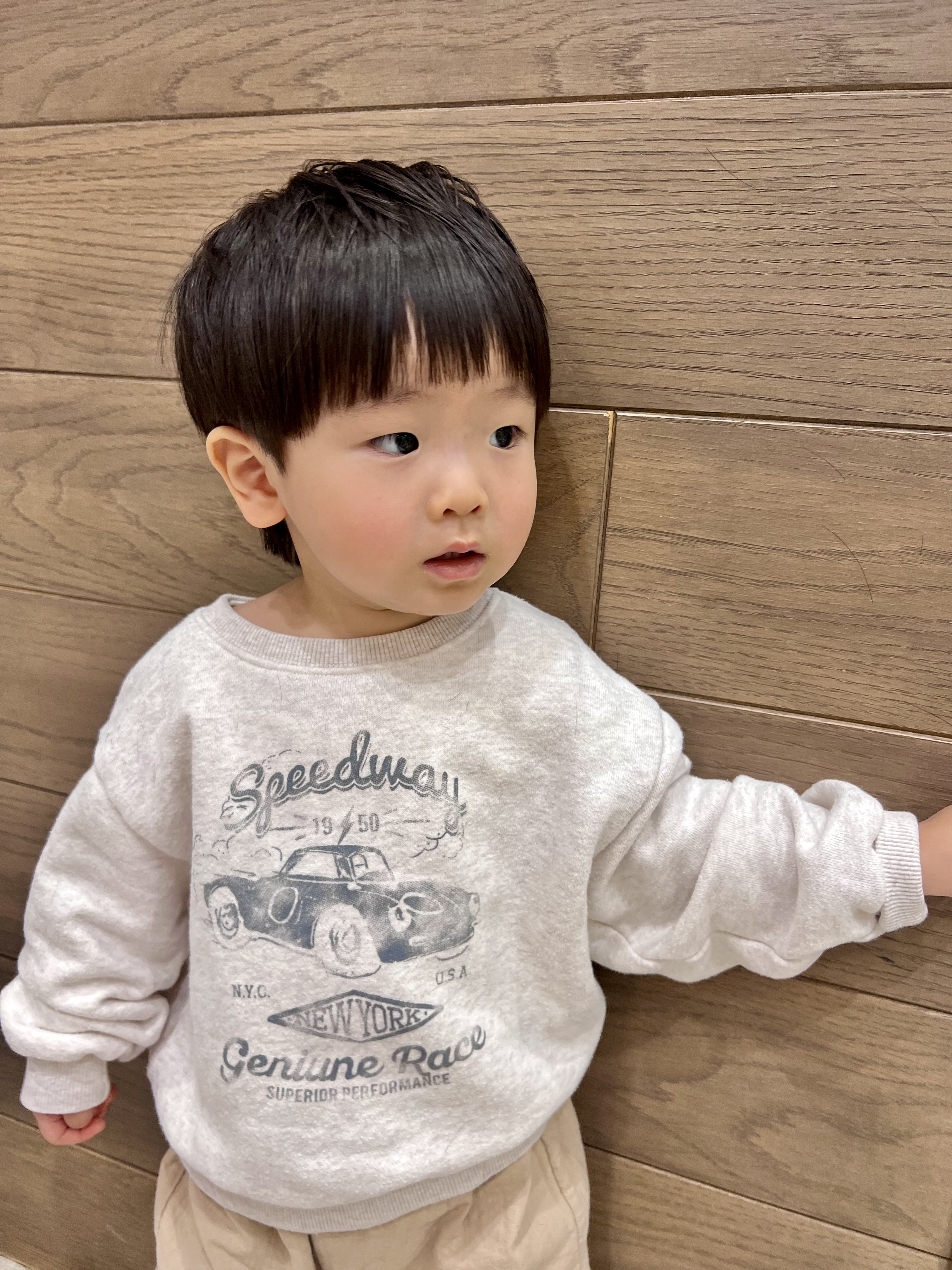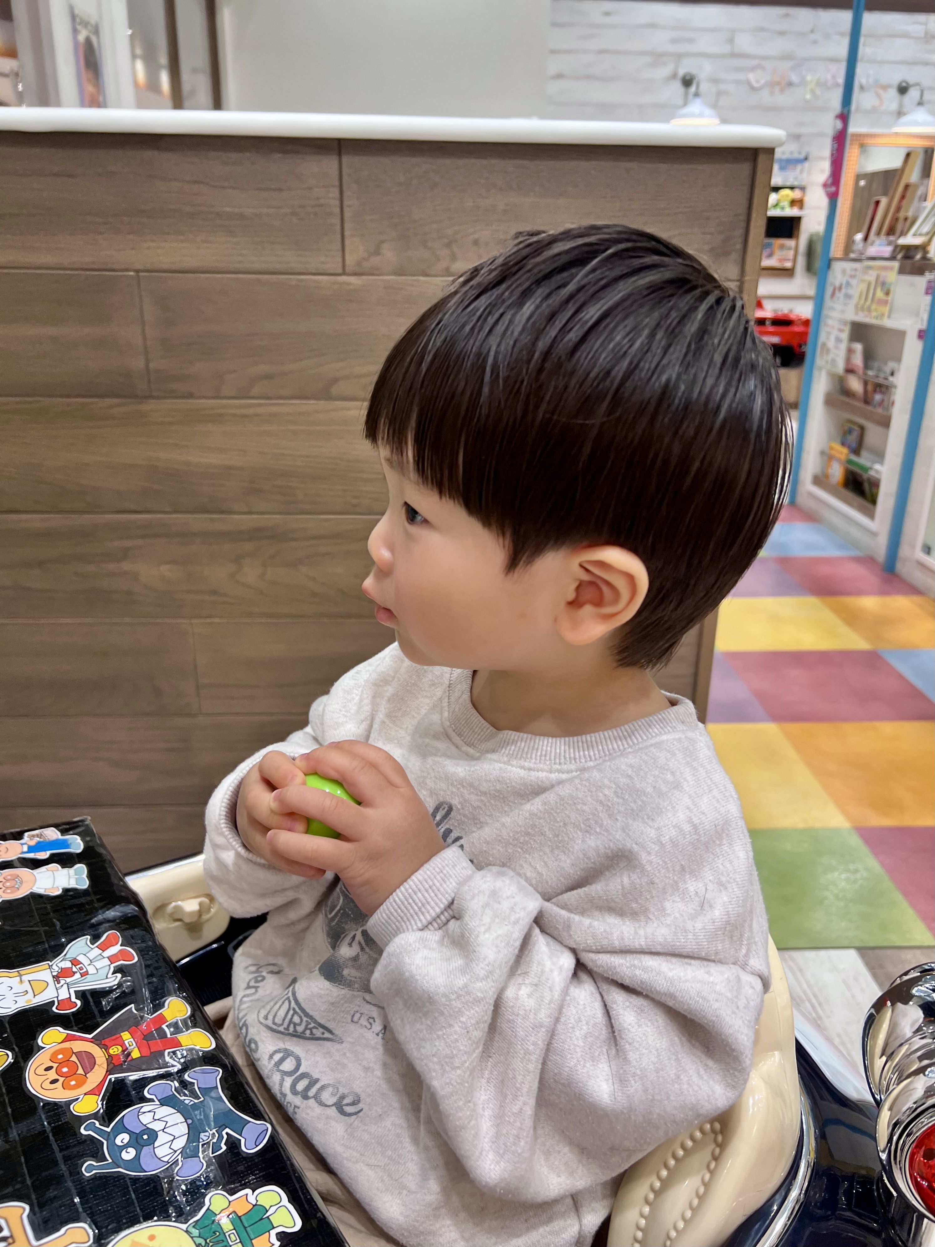 かいりくん 2歳 いつも遊びに来てくれる、かいりくんいつもは途中で涙が出ちゃったりだけど初めてにこにこ上手にチョッキンできたよ✂️ 襟足を少し長めに残しサイドはナチュラルにツーブロックして韓国風ショートにとってもお似合いです モデルさんもとっても上手👏ポーズもばっちり可愛かったです お写真のご協力ありがとうございました😊またお待ちしております✨✨