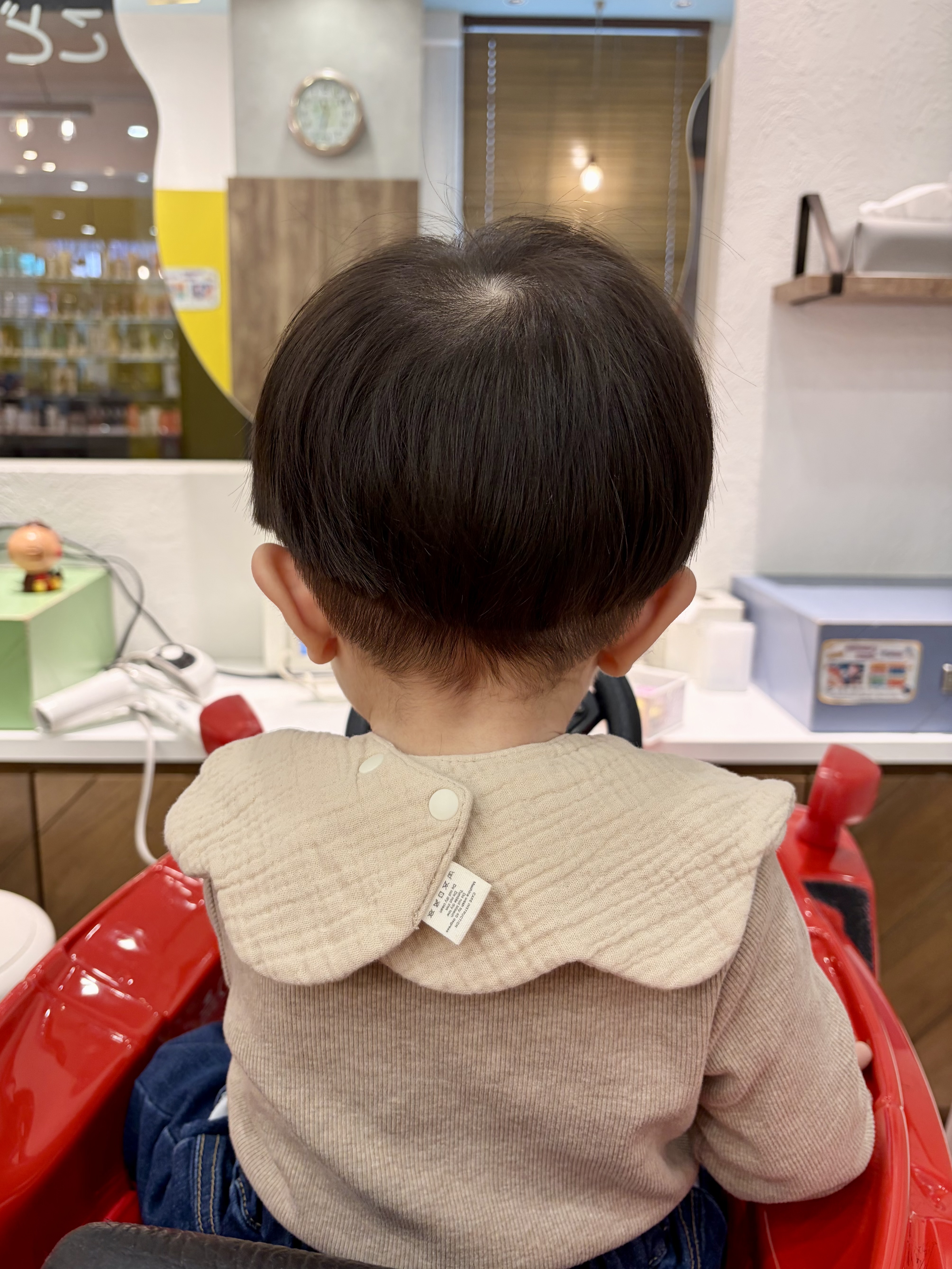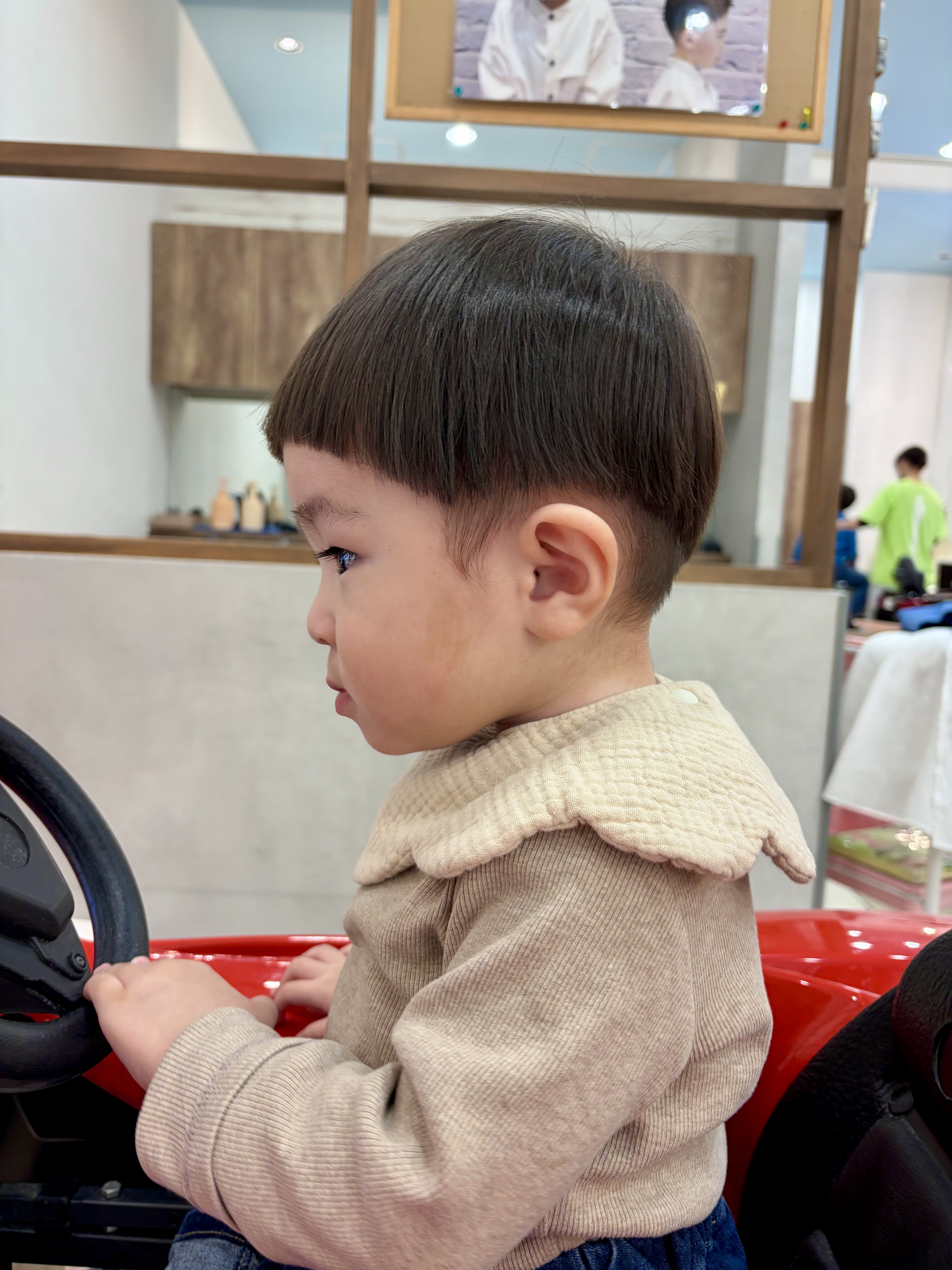 ✩すーちゃん 1さい✩ 全体刈り上げてツーブロックにし、ぱっつんマッシュに(*^^*)♪ 車に乗って上手にカットできました! また遊び来てください♪お写真ご協力ありがとうございました!!