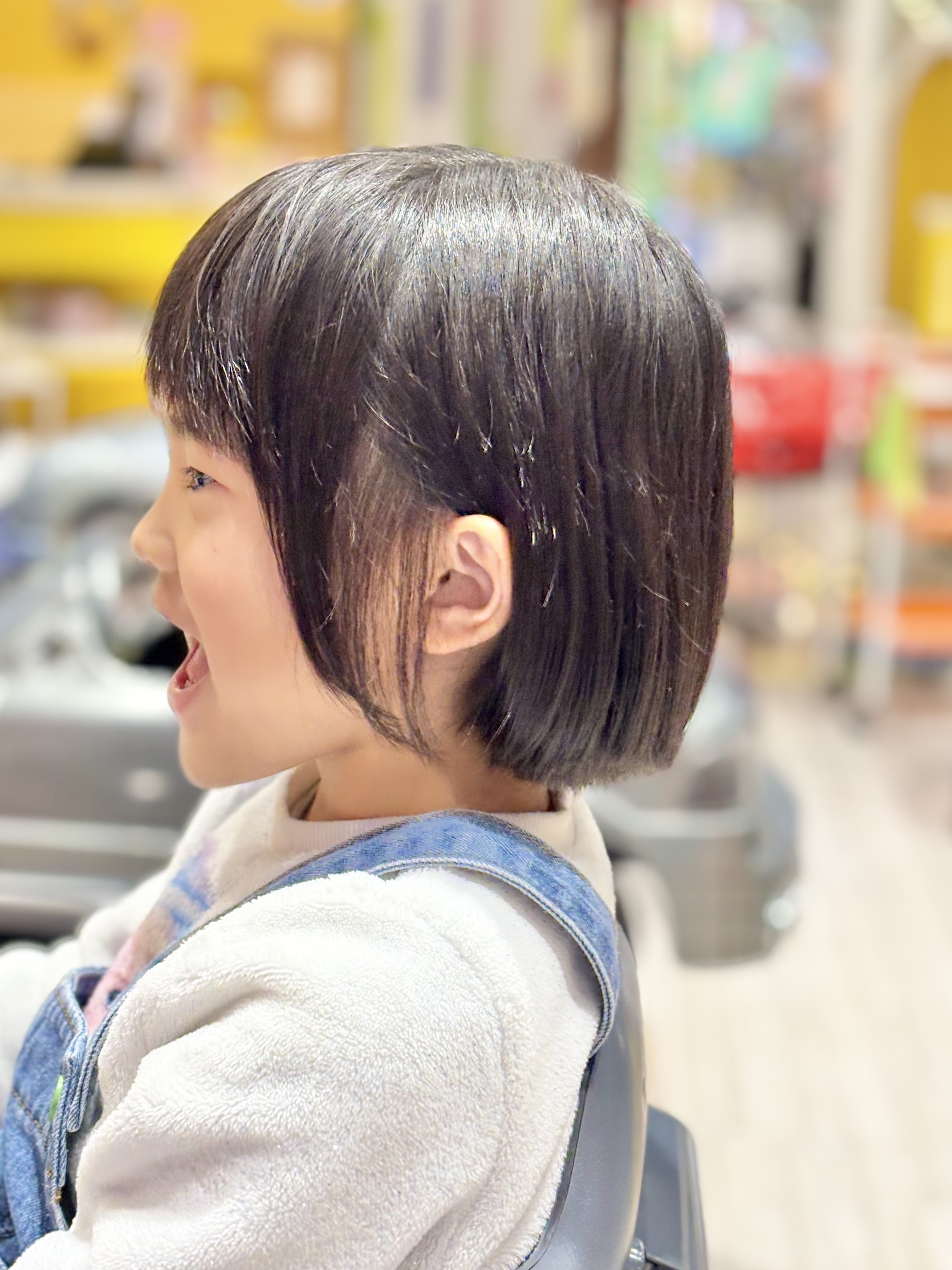 ちはるちゃん 6歳 大好きなキャラクターに近づきたくて、長かった髪をバッサリカット表情も生き生きして、とっても素敵な笑顔です お母様、お写真のご協力ありがとうございました。またのご来店をお待ちしております。