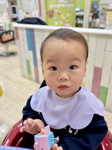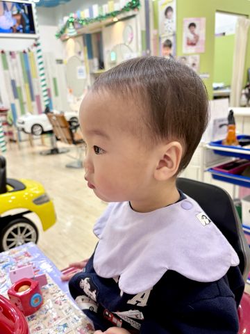 たいちくん1歳👶初めてのヘアカットとっても上手にできました👏お話もお返事もとっても上手で終始ご機嫌さんでした😙耳周り襟足とスッキリ整えてまだまだ幼いかわいさがでるようにカットしました💇‍♂️「はーい」のお返事がとってもかわいかったです🥰ブログのご協力ありがとうございました😊