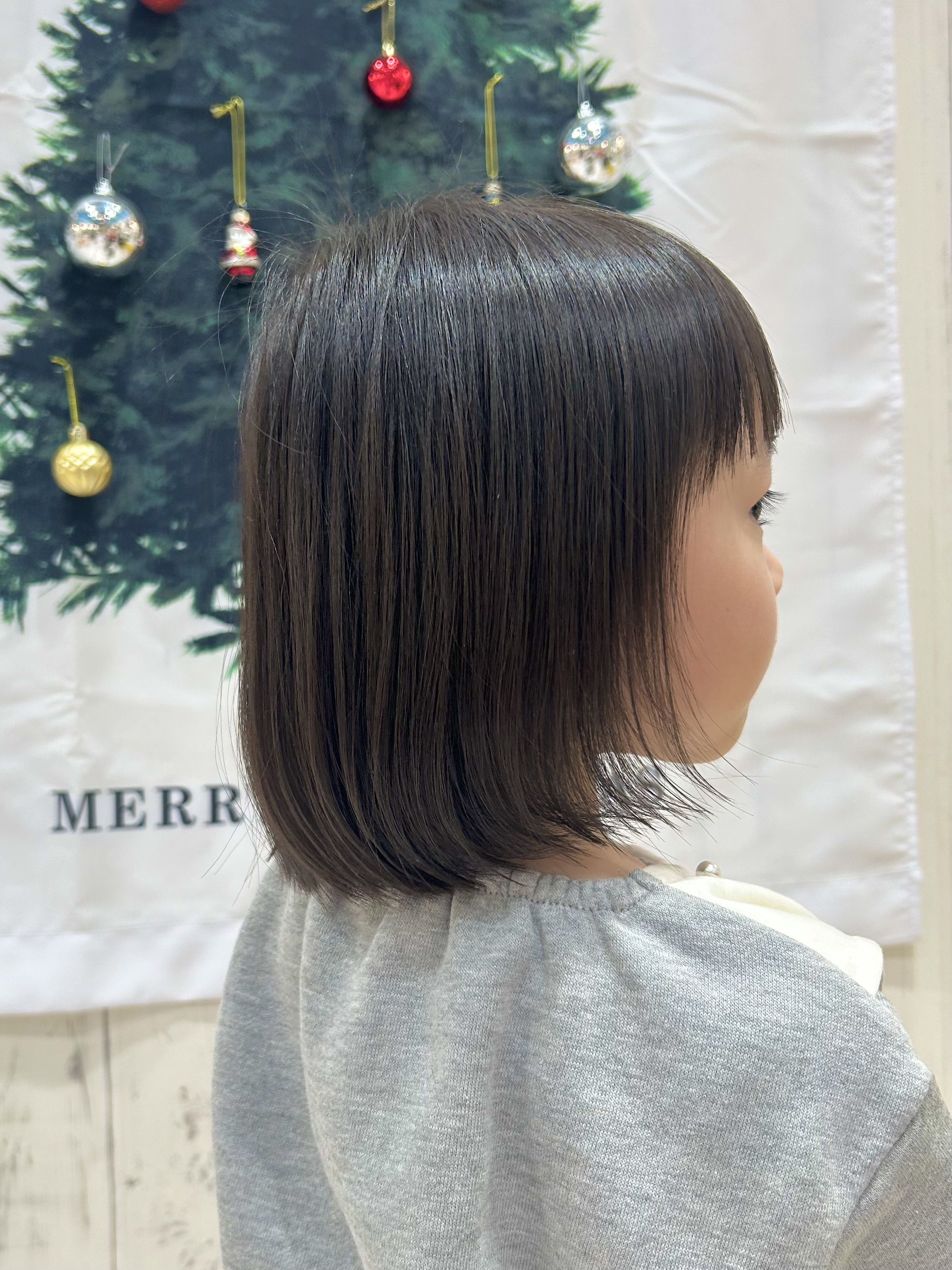 👧りさちゃん👧 4歳✌︎ 【前上がりボブ】肩よりも少し下に長さを設定して、顔周りを前上がりに仕上げたボブです✨前から見た時に顔周りがスッキリ見えますね☺︎まゆげが見える前髪は、りさちゃんの可愛らしさをより一層引き立ててます❤︎チョキチョキもお写真もとても上手にできましたね!ご協力ありがとうございました☺︎☺︎☺︎