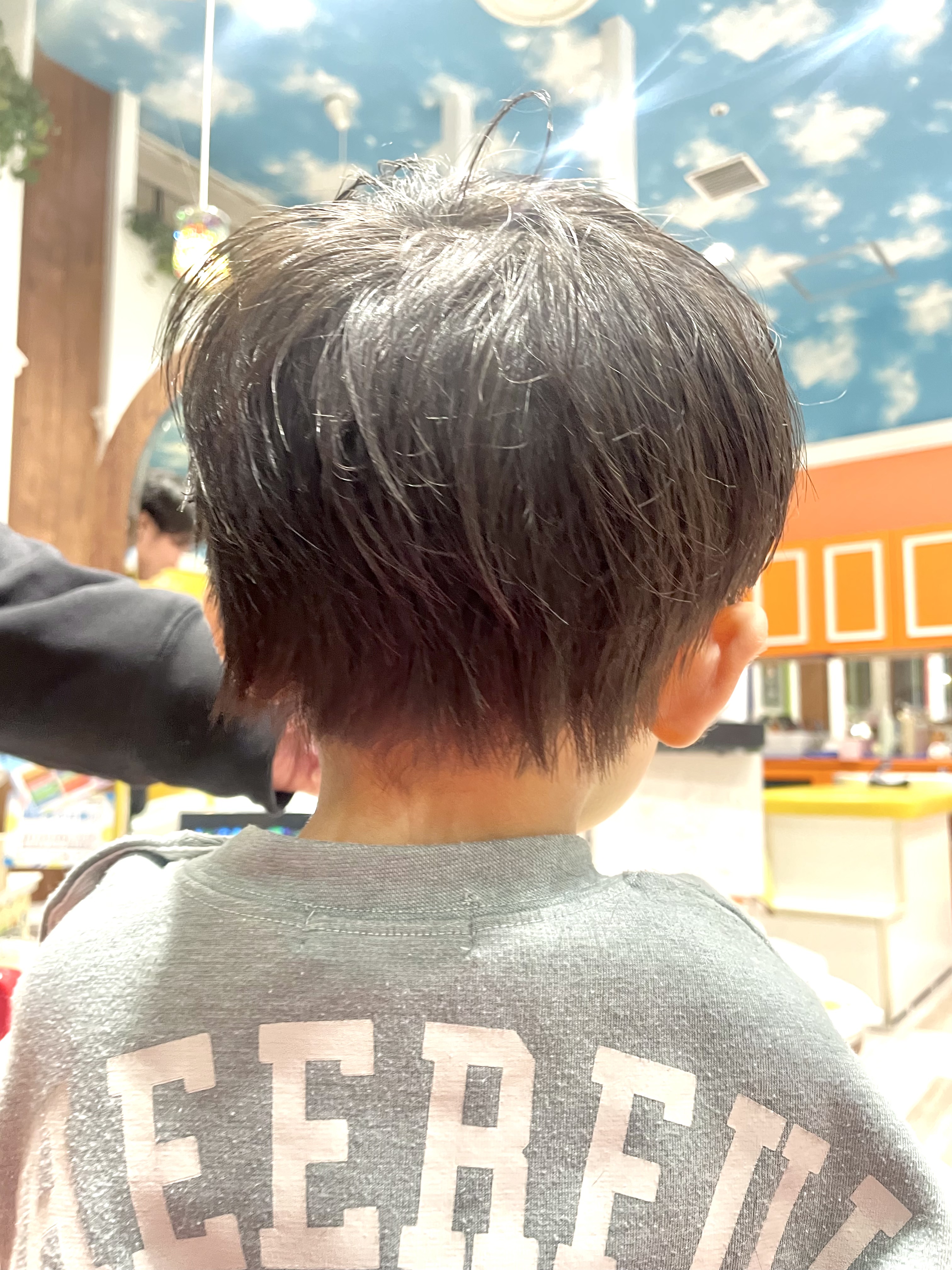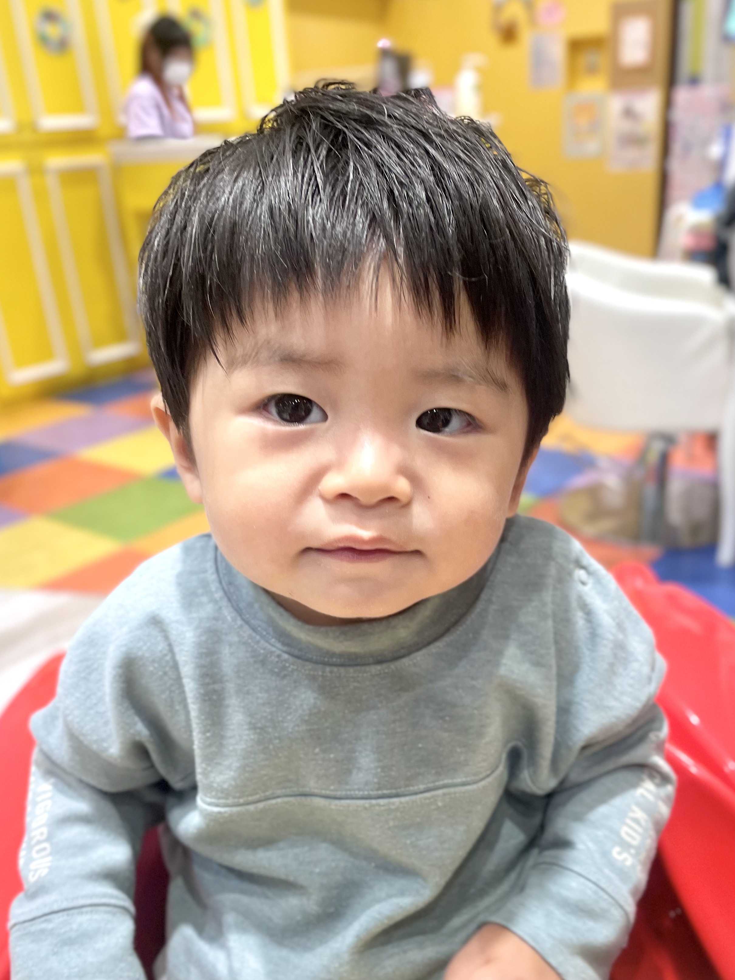 🚗 ゆうきくん 2歳 🚗 お耳出しのナチュラルショートスタイル🌱 前髪は短めでとてもかわいいです🫶 カット中ブラシで髪の毛をお掃除してくれました👏 お父様、お母様、お写真のご協力ありがとうございました。またのご来店お待ちしております。