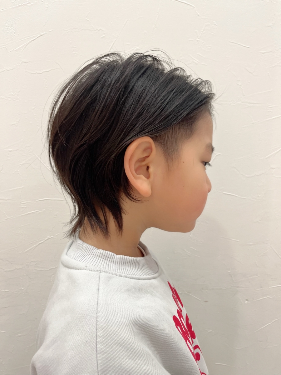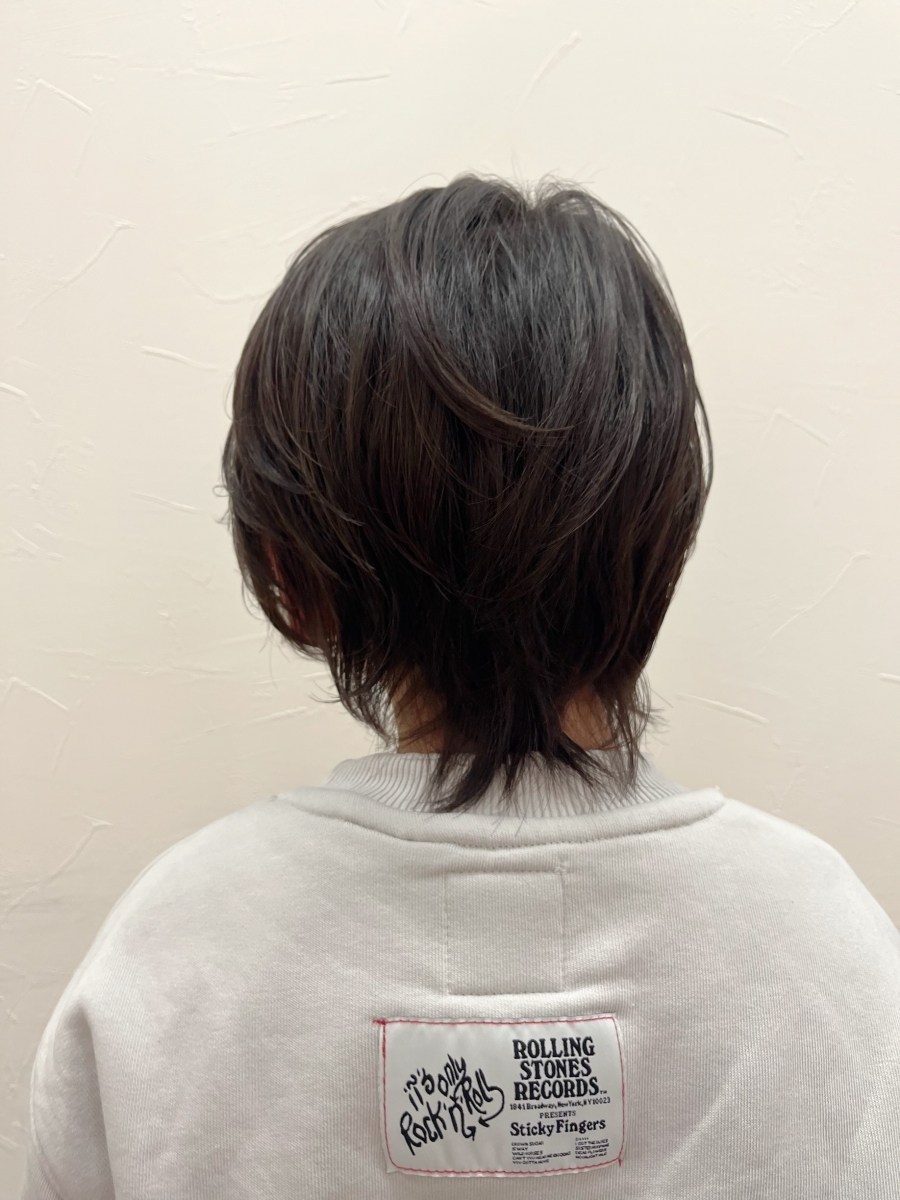 サイドだけツーブロックで刈り上げて、襟足は長めのウルフスタイルです。センターパートにしたり、耳にかけるとスッキリかっこよく見えておすすめです。