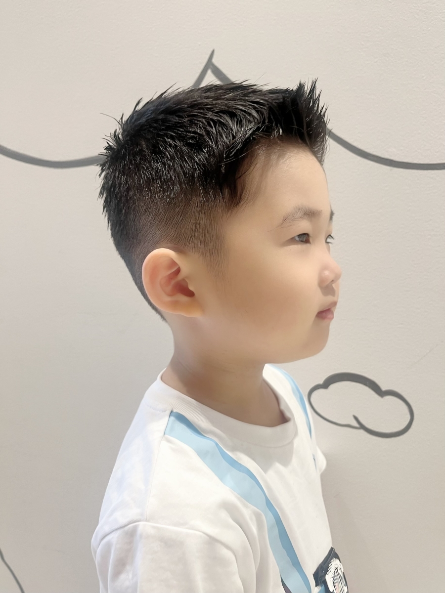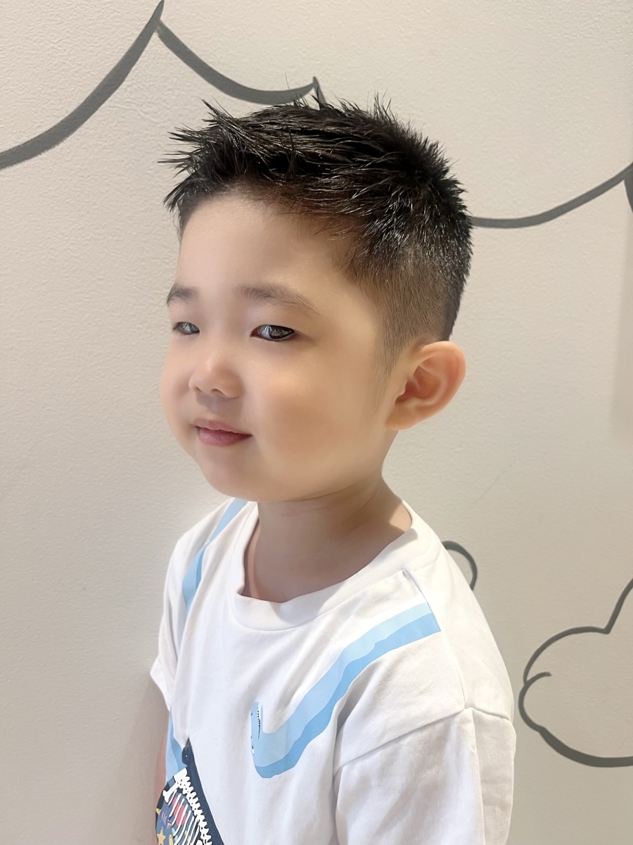 3㎜で短く刈り上げたクロップカットで、夏らしくツンツンにセットしてみました。