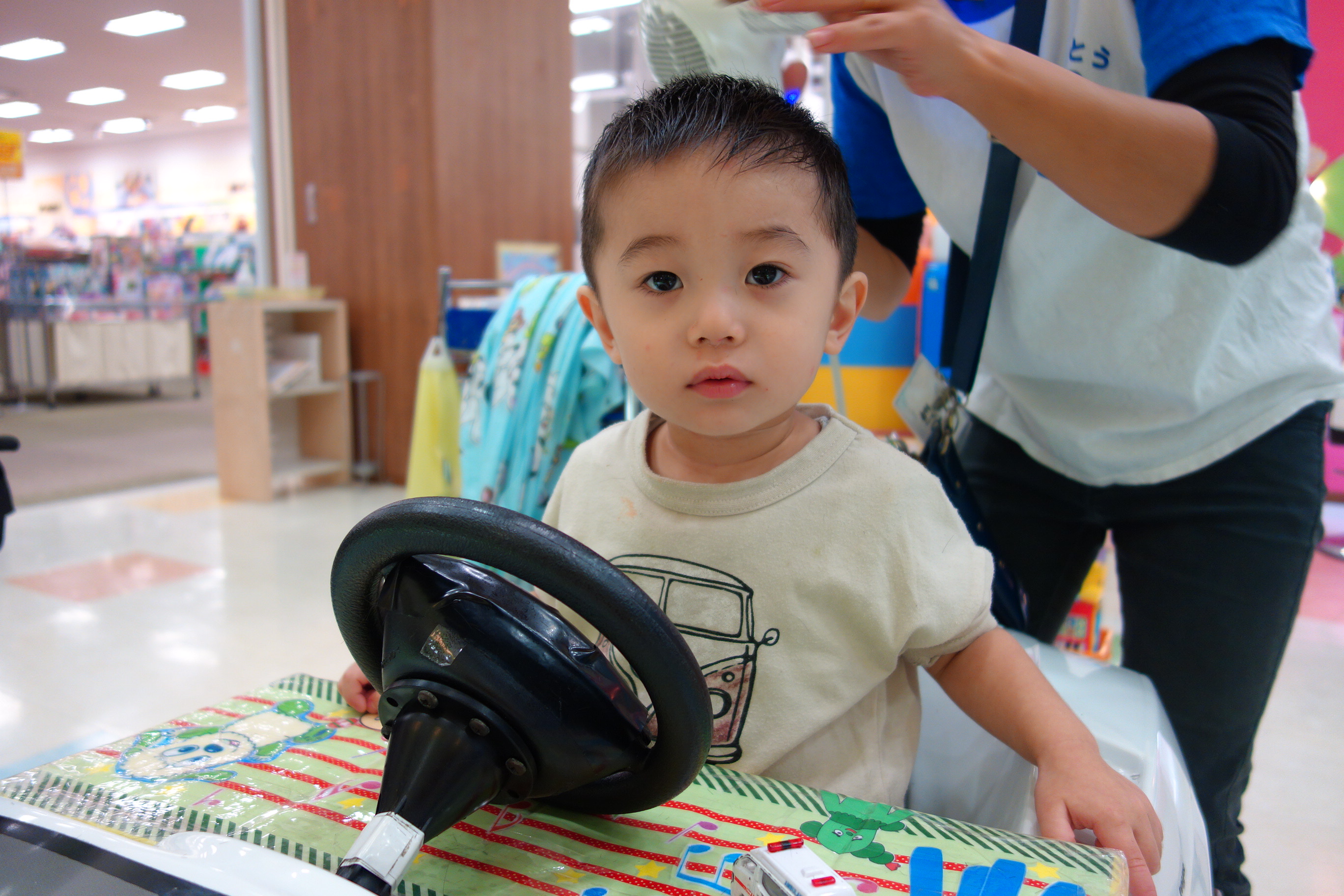 こんにちは与野店のおねえさんです と~~てもチョッキン上手なお友達が、与野店に来てくれたのでご紹介します お写真撮らせてね~とカメラを向けるとバッチリカメラ目線をくれたA君初めてのご来店でしたが、他のチョッキンズのお店に行ってくれた事があるようでバリカンもへっちゃらでした与野店大人気のおもちゃで遊びながら楽しくチョキチョキハンドルに気づいて、ブーン運転する姿もカッコイイね あっという間にチョキチョキ終わってシャンプーへシャンプーの時も可愛い目線をくれるほど余裕で最後までとっても上手にできました スッキリ サッパリカット中や、ドライヤー中も、『あ!』と指さしながらお姉さん達に沢山お話してくれてその可愛さにキュンキュン 癒されたよ~ 最後はご褒美にお菓子を貰ってカッコよくなった姿でパシャリ最後もバッチリカメラ目線でキメてくれました 沢山お写真撮らせてくれてありがとうまたチョッキンしにきてね~ お母様撮影のご協力ありがとうございましたまたのご来店スタッフ一同心よりお待ちしております