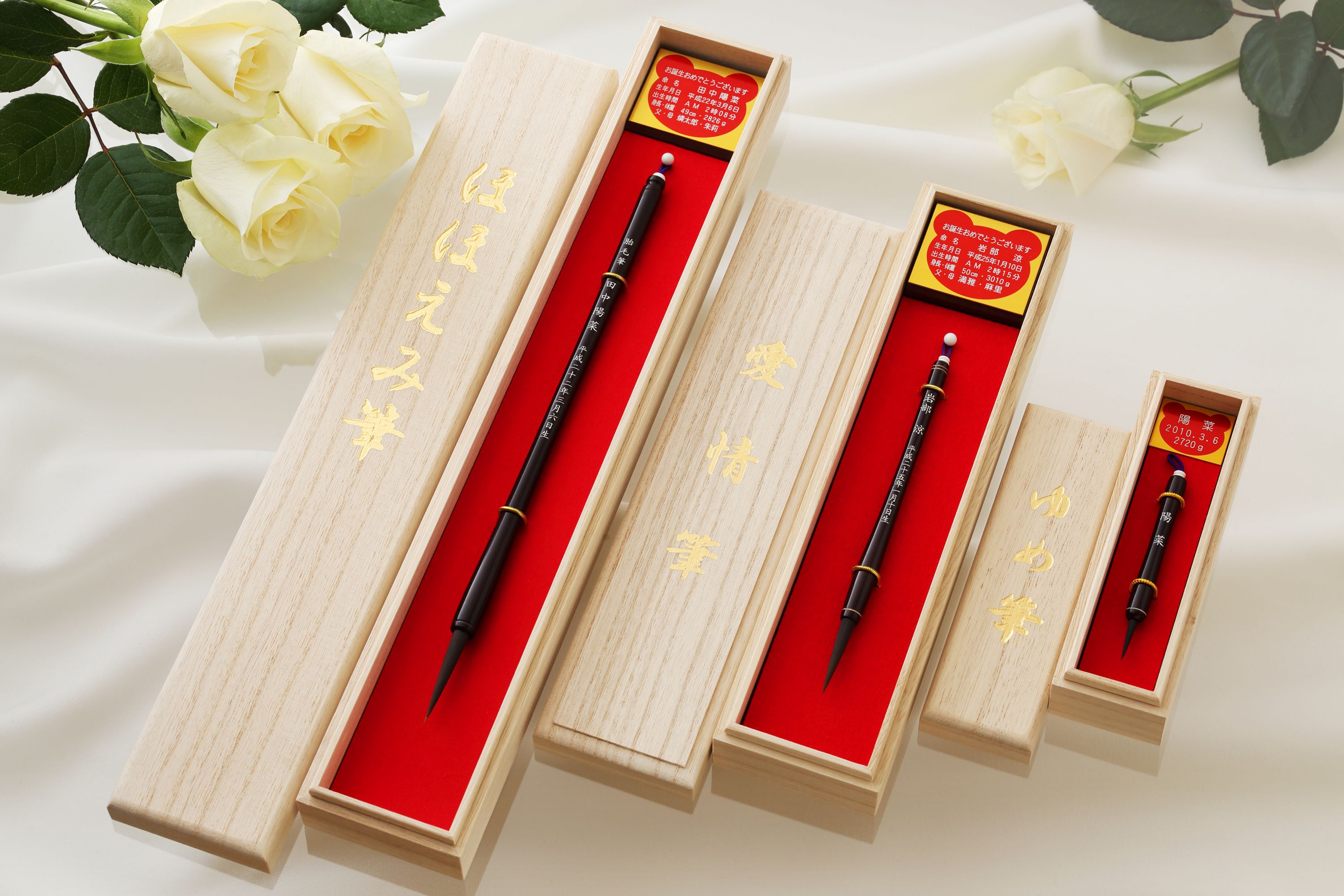 子ども専門美容室チョッキンズでは、胎毛筆メーカーの光文堂の商品を取り扱っており、年間の販売実績は全国一位の約5,000本にも上ります。その中でも販売本数の1位と2位にランクインしているお筆が、チョッキンズと光文堂がコラボした大人気のチョッキンズオリジナル胎毛筆の「愛情筆」と「ゆめ筆」です。そして今回はこのチョッキンズオリジナル胎毛筆がどうしてこんなに人気なのか、他のお筆との差はどこにあるのか等、その魅力や秘密について詳しく解説していきますので、ぜひ最後までお付き合いいただければと思います。➡関連記事:失敗しない赤ちゃん筆(胎毛筆)の作り方!いつ?どこで?どうやって?おすすめ商品も紹介します! この記事の目次閉じるチョッキンズオリジナル胎毛筆ができるまでチョッキンズオリジナル胎毛筆の紹介まとめチョッキンズオリジナル胎毛筆ができるまでチョッキンズオリジナル胎毛筆は2010年5月から光文堂とのコラボ商品として開発・制作され、チョッキンズで販売している商品の中で常に一番人気の商品となっています。ここでは、そんな大人気のチョッキンズオリジナル胎毛筆ができるまでのストーリーを簡単に順を追ってご紹介していきます。 ファーストカットへの想いファーストカットとは「ファーストヘアカット」のことで、読んで字のごとく美容業界では初めての散髪(ヘアカット)という意味で使われています。生まれてから一度も切っていない赤ちゃんの髪の毛は「胎毛」や「ファーストヘア」と呼ばれ、ママのお腹の中にいる頃から育った毛先や産毛の残った毛なので、本来の意味での毛先というのはこの胎毛(ファーストヘア)にしかないため、一生に一度しか採れないとても貴重な毛になります。そして生まれた子の頭脳明晰・健やかな成長を祈るために、この胎毛(ファーストヘア)を使って作るのが胎毛筆(赤ちゃん筆)と呼ばれるお筆で、チョッキンズオリジナル胎毛筆もその内の一つです。もちろんチョッキンズではファーストカットでご来店されるお客様も多く、これまでにも数えきれないくらいのファーストカットを担当させていただいてますので、初めてのヘアカットに対する親御さんの想いやお子さまへの愛情というのを日ごろから目の当たりにし、いつも感動をいただき良い刺激になっております。チョッキンズでは一生に一度しかない貴重な機会をお任せいただいていることへの感謝と共に、お子さまの歴史の大事な一ページに携われる喜びや責任を感じながら、日々のサロンワークの中でファーストカットを担当させていただいています。そして、こうしたファーストカットでご利用いただくお客様も多いことから、必然的にチョッキンズでは創業当初から赤ちゃん筆(胎毛筆)の取り扱いを始め、大変ご好評をいただいておりチョッキンズのサービスの中の大事な一部となっています。 ➡ チョッキンズの主なサービス内容はこちら 光文堂との出会い光文堂 本館 チョッキンズで光文堂のお筆を取り扱うようになったのは2009年からで、実はそれ以前は別の赤ちゃん筆(胎毛筆)メーカーさんのお筆を販売していました。ですが、それまでお取引をさせていただいていた赤ちゃん筆(胎毛筆)メーカーさんは良くも悪くも商業主義が強めで、親御さんがお子さまを想う気持ちや愛情に寄り添えていないと感じることが多々あり、チョッキンズとは少し方向性のズレが生じていました。そんな折に光文堂との出会いに恵まれ、初めてお話を聞かせていただいた際にファーストカットや胎毛に対する親御さんの想いを理解し大切にしており、チョッキンズとベクトルが一致している企業さんだというのがひしひしと伝わってきて一瞬でファンになってしまい、それからずっと現在もお取引をさせていただいています。 チョッキンズオリジナル胎毛筆の商品開発光文堂とのお取引が始まった段階ですぐにチョッキンズオリジナルのお筆を作るプロジェクトがスタートし、約半年をかけて現在も販売中のチョッキンズオリジナル胎毛筆の3本が完成しました。以前の赤ちゃん筆(胎毛筆)メーカーさんではなかなか実現せず半分諦めていたのですが、光文堂にご相談させていただいたらとんとん拍子に話が進み、何度も試作を重ねながら約半年の制作期間で満足のいくものが出来上がりました。そんなチョッキンズオリジナル胎毛筆を開発する際にこだわったポイントは、次の3つが挙げられます。 1.日本古来の伝統的な筆様式の4色展開上の写真を見ていただくとわかるとおり、そのまま実用としても使えそうなしっかりとした伝統的なお筆のデザインになっていて、一般的な赤ちゃん筆(胎毛筆)との最大の違いは「筆軸」の色が4色から選べることです。具体的には「伝統的ブドウ色」「お洒落なパールホワイト」「重厚感のあるシャンパンゴールド」「シンプルなシルバー」の4色から選べるようになっており、デザインは伝統的ながらも色でチョッキンズらしいモダンでお洒落な