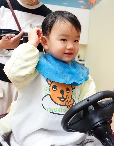 こんにちはつくば店のお姉さんです初めて来てくれたまさひとくんをご紹介します初チョッキンですが、来た時からやる気満々ニコニコでお店に来てくれてましたまずはバリカンしていくよ~☆ちょっと緊張してるかな…❓ 後ろの髪の毛が短くなったねハサミのチョキチョキもとても上手です前髪も短くしていくよ途中経過のぱっつん前髪も可愛い~これからカッコよくしていくねとってもさっぱり~かっこよくなったよちょっと緊張してたみたいだけど、車で頑張ってくれましたシャンプーもして、ドライヤーで仕上げだよ~お家では苦手らしいけど、そんな様子も見せずやり遂げました最後はニコニコではいチーズとってもカッコよくなったね笑顔がとてもキュートなまさひとくんでした まさひとくん、お母様、お写真のご協力ありがとうございましたまたの御来店をお待ちしております