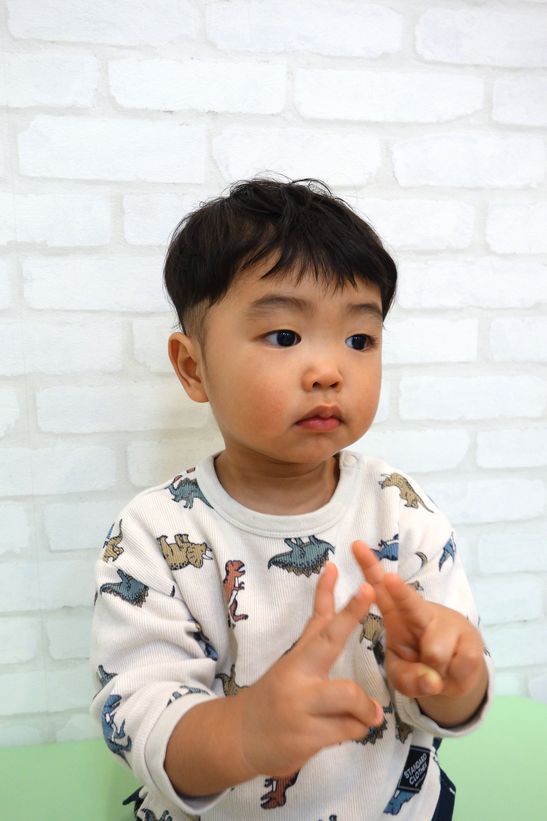 ☆Sくん 2歳☆サイドはバリカンでしっかり刈り上げてえりあしはハサミでスッキリのツーブロックです。Sくんのくせをいかしてワックスでふわっと仕上げたかわいい髪型になりましたSくんモデルさんしてくれてありがとう