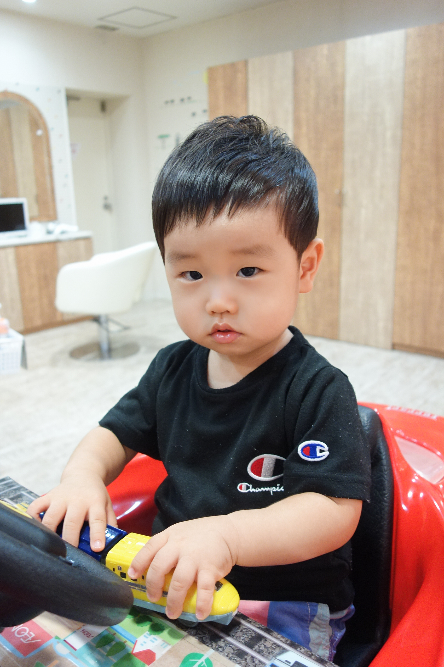 ☆ はるくん 1歳 ☆ 丸さを残したお耳だしショートスタイル。前髪はアシメでかっこかわいいスタイルに。 お兄さんになってたはるくん。車に乗って上手に出来たね♡最初はドキドキだったけど大好きな電車のお名前をニコニコで教えてくれたはるくんがとても可愛くて♡♡かと思えばカメラ目線はキリっとかっこよく☆そんなはるくんにメロメロでした♡また楽しくちょきちょきしようね♪ はるくん、お母様。SNSへのご協力、ありがとうございました。またのご来店を心よりお待ちしております♡