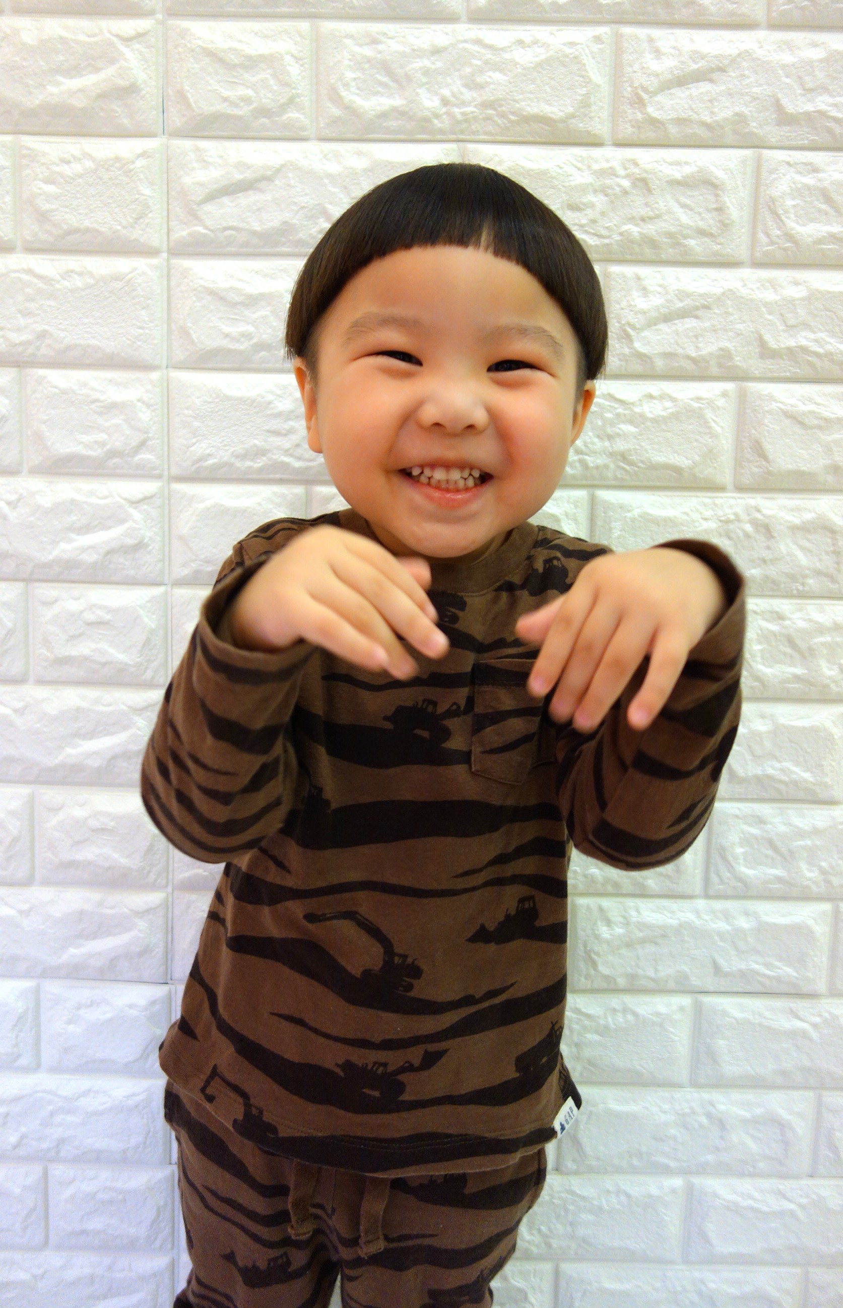 じんくん 2さいツーブロ コボちゃんスタイル 1周6ミリバリカンでツーブロックにしましたぱっつんバングで じんくんにとっても似合ってるね お写真のポーズもおちゃめな感じで はい チーズなんともいえないかわいい笑顔とおしゃべりもかわいいじんくんにきゅん今度は しつかり カメラを見てさわやか スマイルでピース きおつけピー も じょうずだねじんくんの雰囲気にぴったりのコボちゃんヘアーほんと 似合ってるまた おねえさんとたくさんおしゃべりしようね