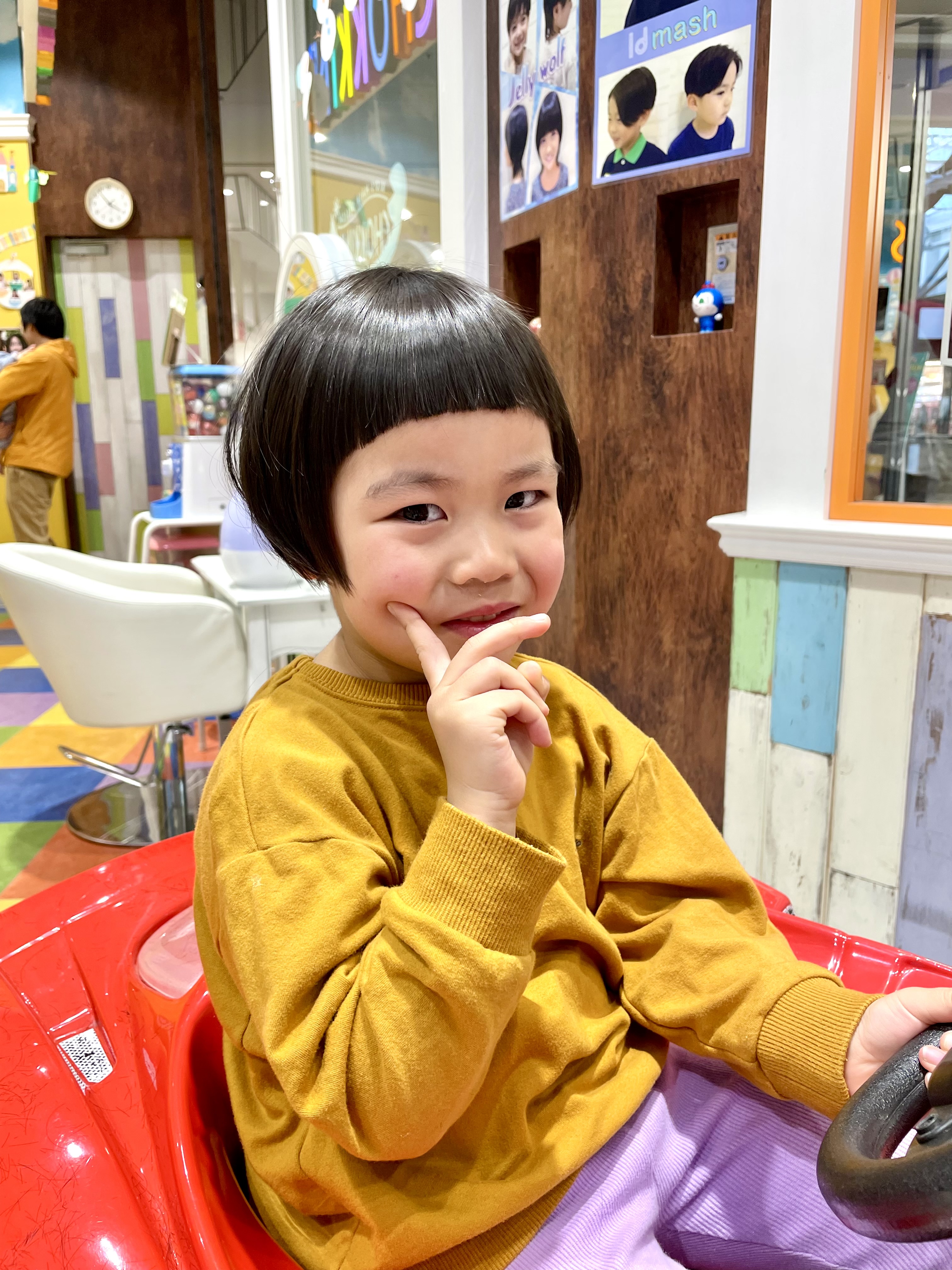 りおなちゃん 3歳前髪ぱっつんで、襟足もスッキリグラボブに全体は軽く仕上げておしゃれワカメちゃん短めがとっても似合う〜 お父様、お母様、お写真のご協力ありがとうございました。またのご利用お待ちしております。