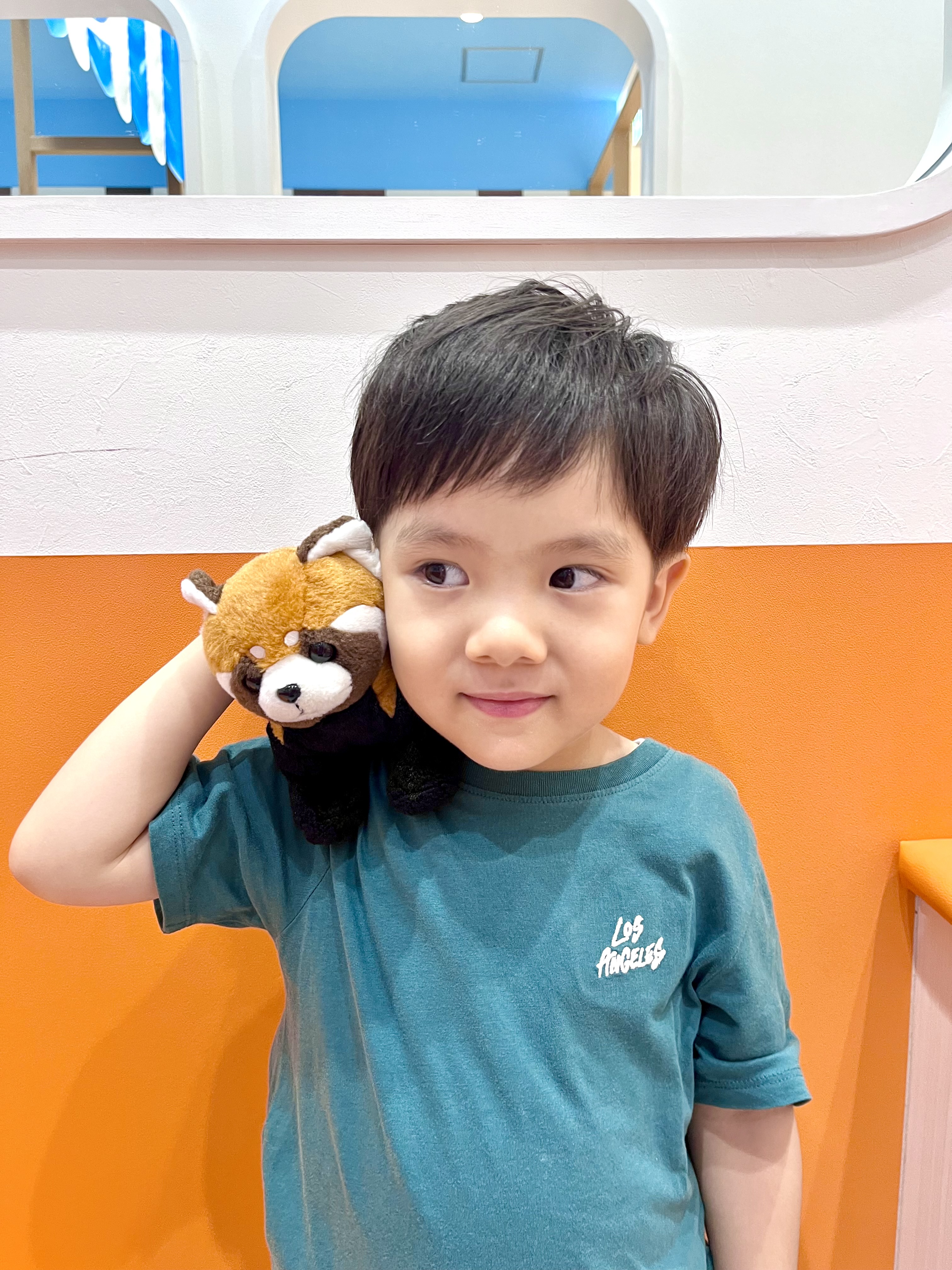 4歳男の子 丸みを出したツーブロック前髪も自然に流れるようにカットしました可愛さとカッコイイのいいとこどりなスタイルになりました お写真のご協力ありがとうございました!レッサーパンダちゃんと一緒に座ってた姿がとっても可愛かったです こどもの髪型/子供の髪型/キッズカット/メンズカット/男の子髪型/イケメン/かっこいい/かわいい/子供専用美容室/有明