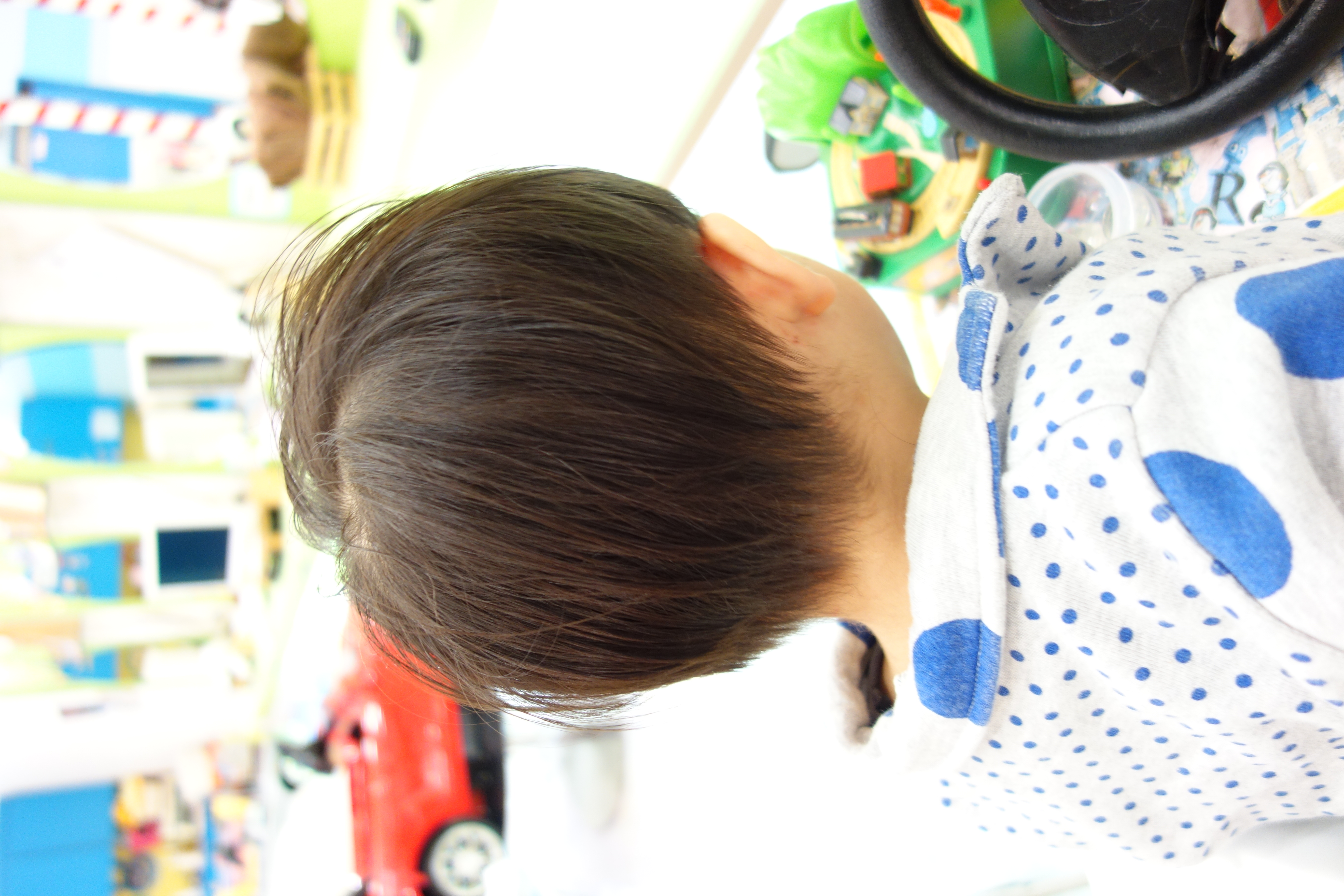 れおくん サイドをバリカンでスッキリしました後ろも長めにバリカン入れました前髪はかっこよくアシメにしてみましたとってもニコニコで上手だったねまたいつでも遊びに来てねスタッフみんなで待ってるよ最後まで頑張ってくれてありがとう