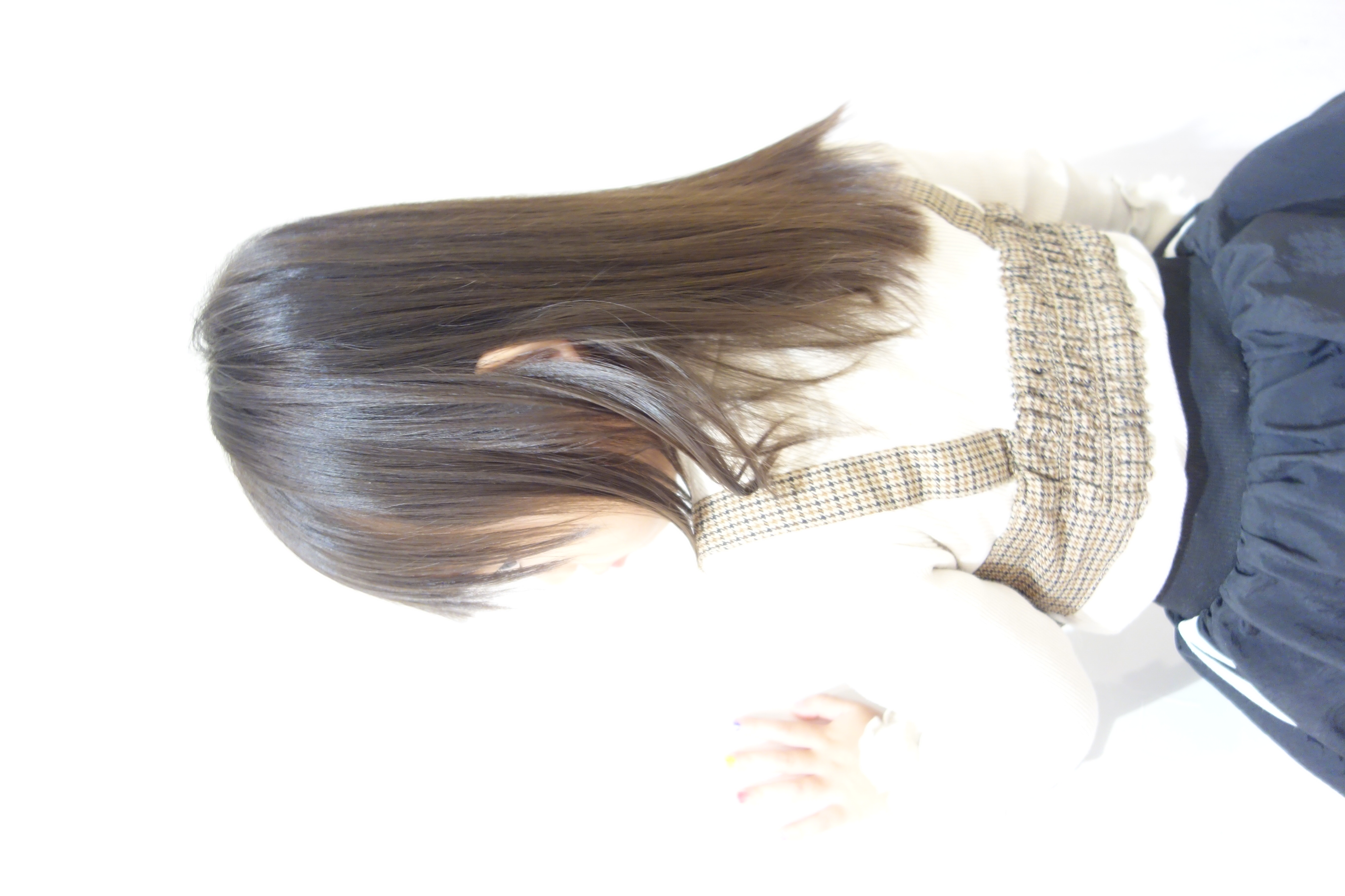 4歳 女の子 初カットで鎖骨ラインでスッキリ顔周りはレイヤーを入れて動きをプラスにしました前髪はいシースルーバングにしていくために量を減らしてカット雰囲気によく似合っていてかわいいですモデルさんのご協力ありがとうございました