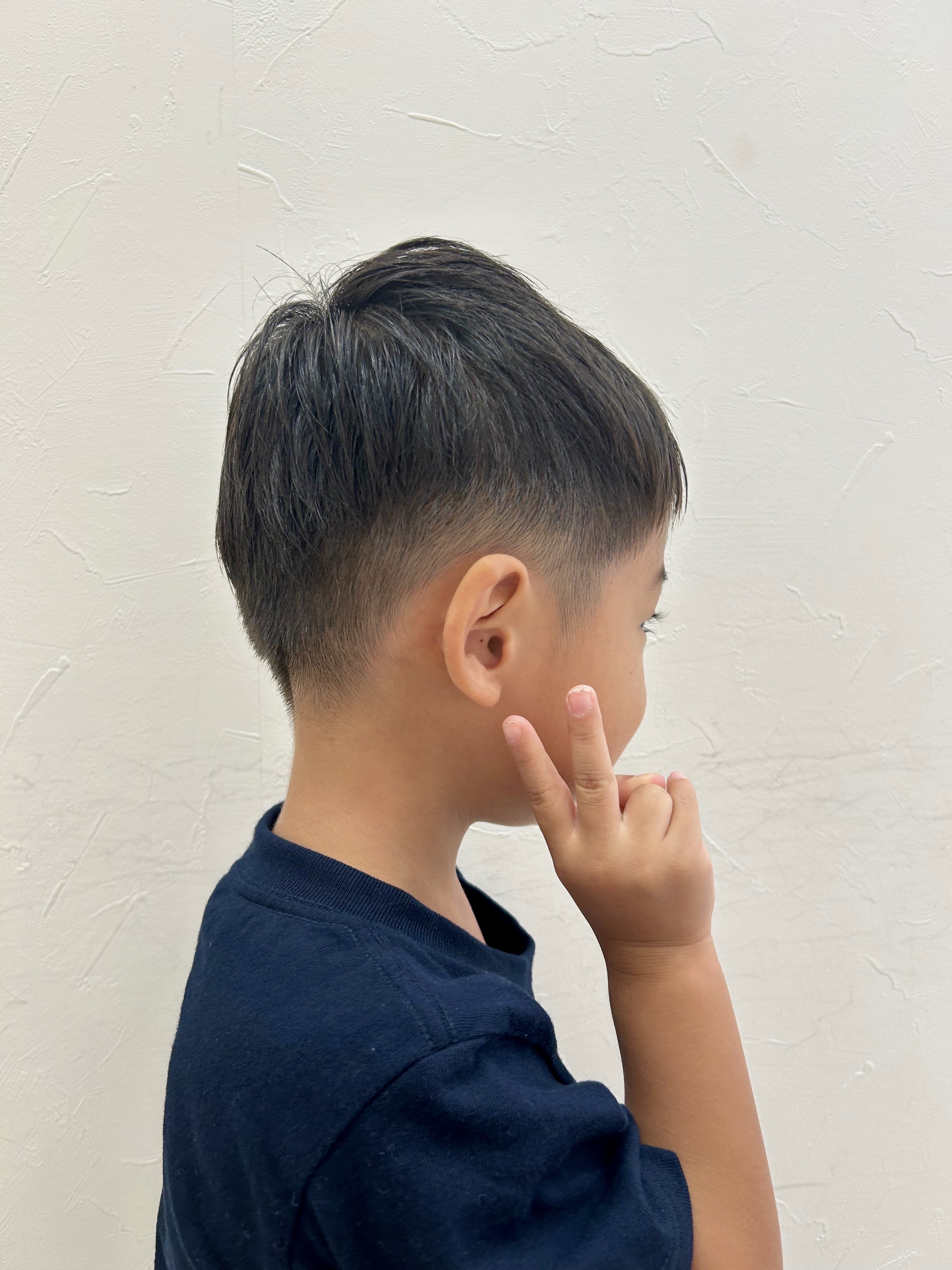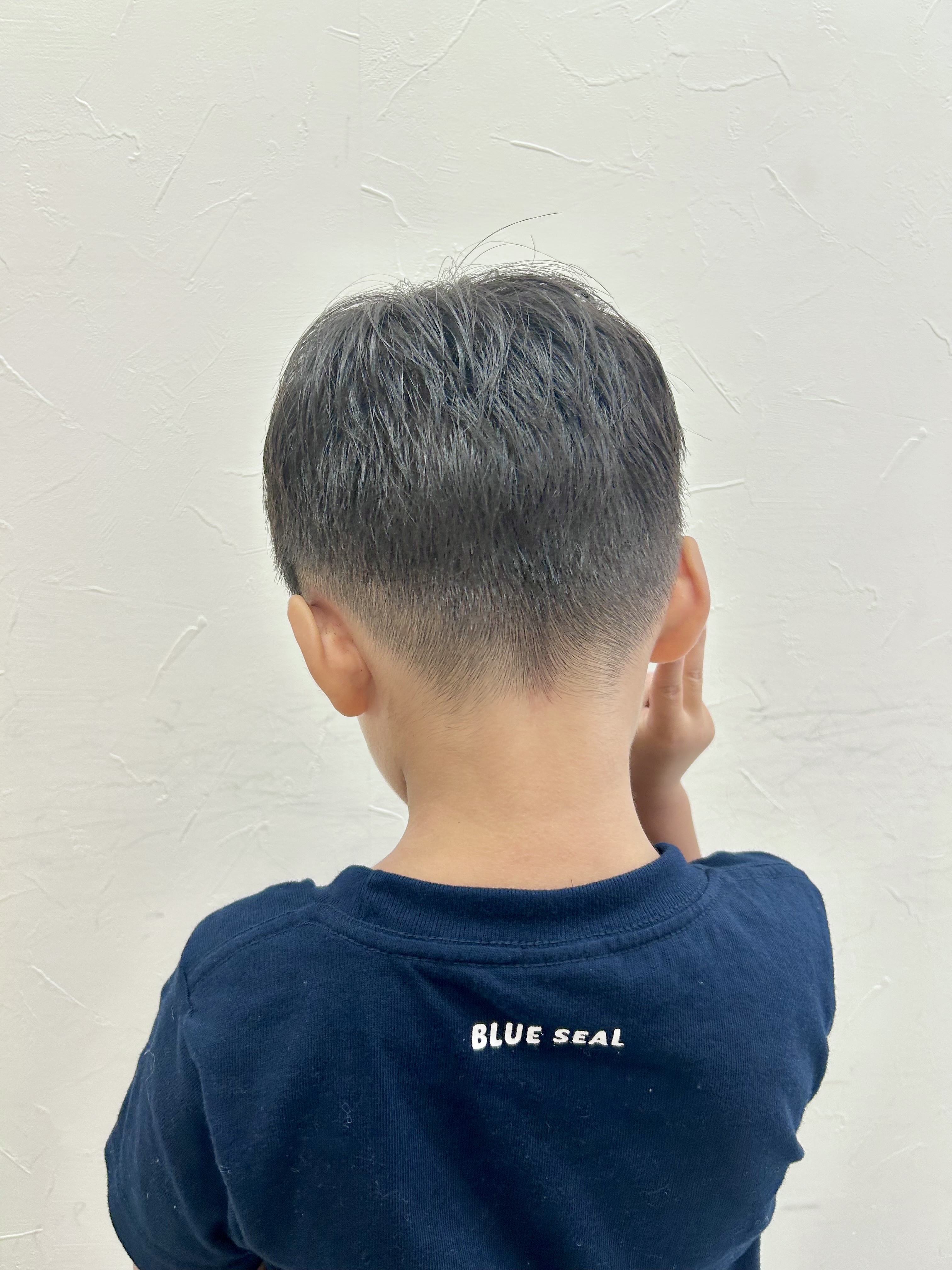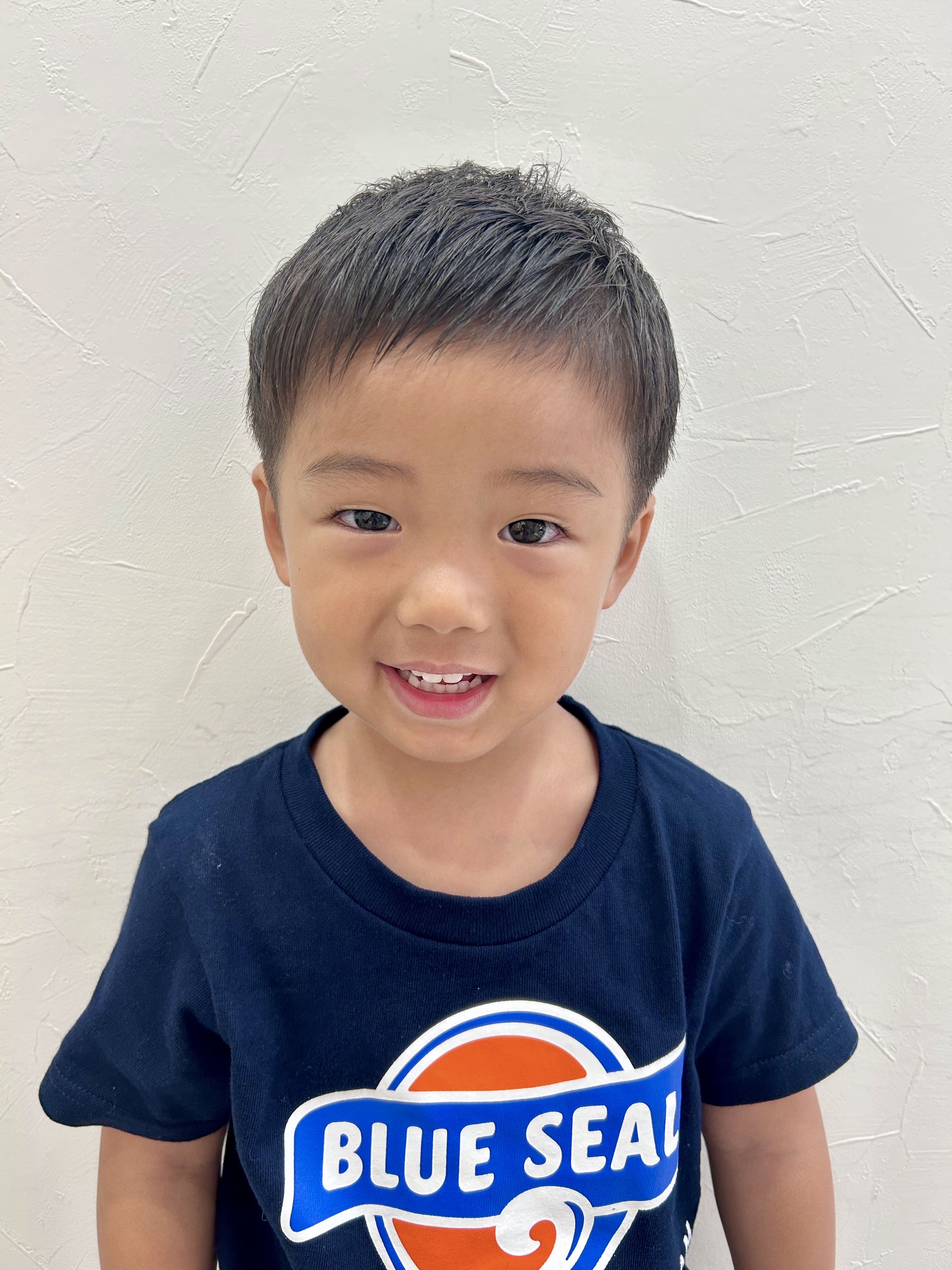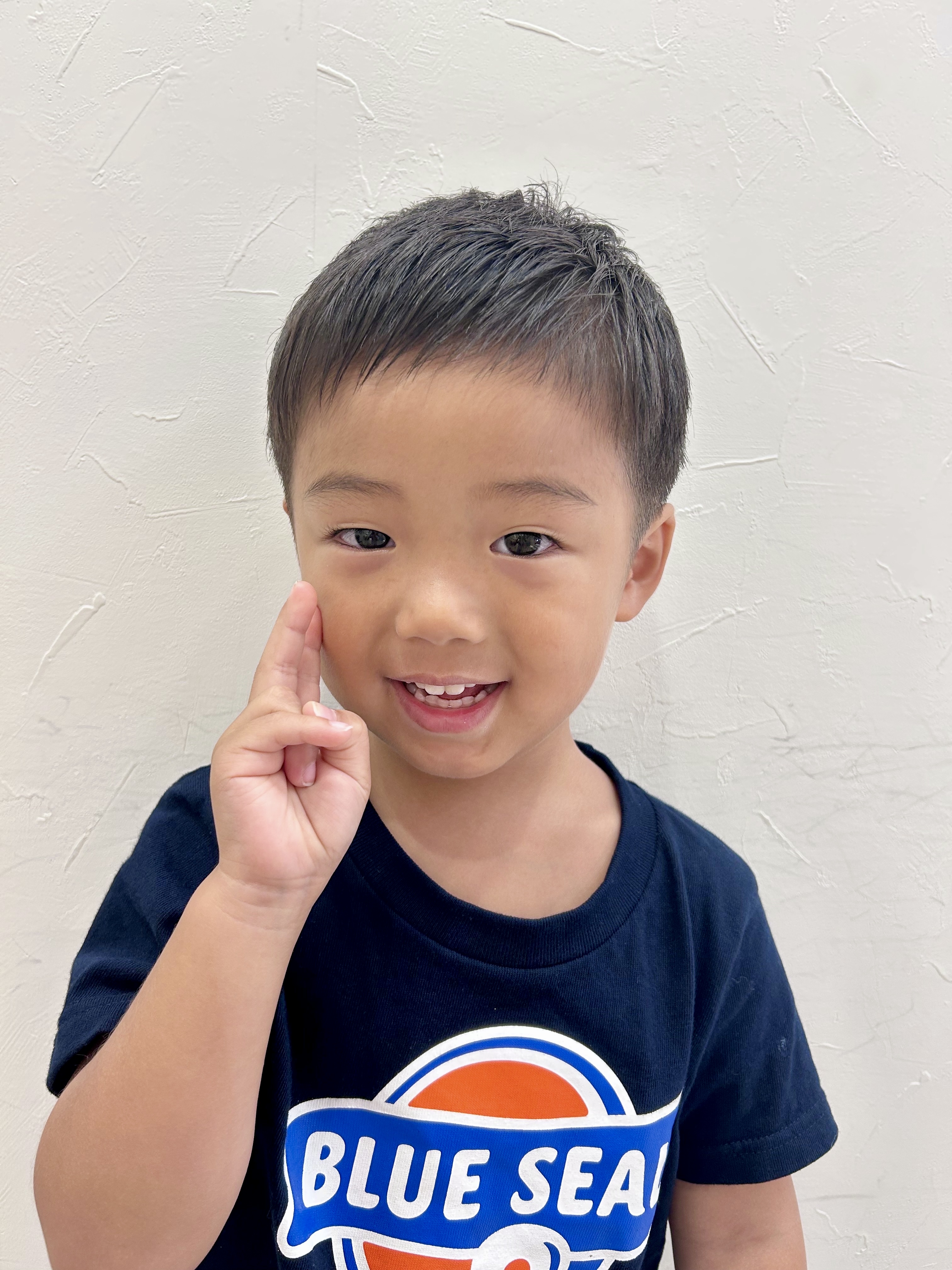 とらてつくん 3さい いつも来てくれるとらてつくん いつもより短くさっぱりスタイルにチェンジ 幅広く短いミリ数のバリカンでしっかり刈り上げました 横も後ろもすっきり どの角度の時もピースしてくれました 短めも似合っていてかっこいいです 素敵なスマイルショットもありがとう お写真のご協力ありがとうございました またのご来店をお待ちしております