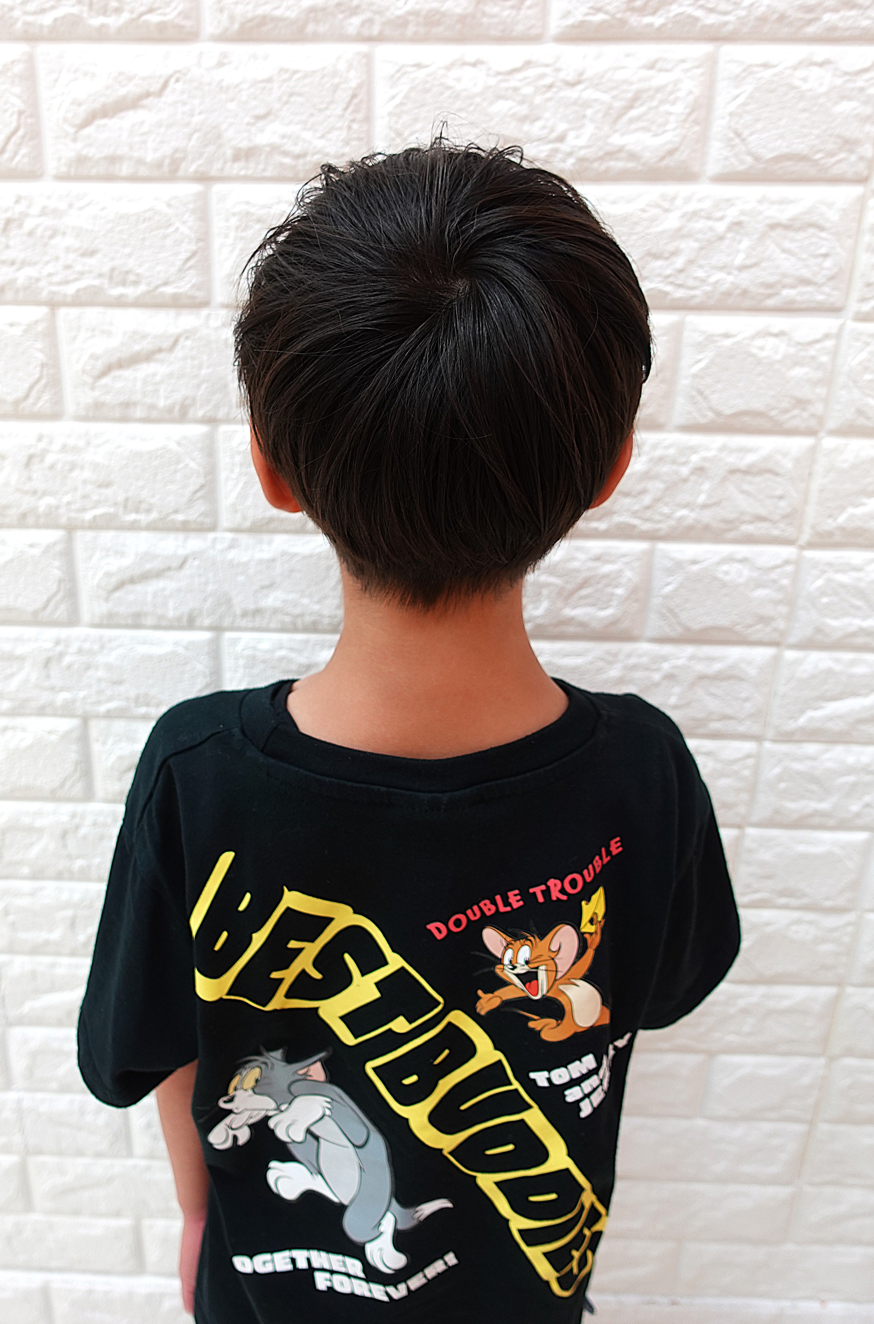 ☆ よしちか君 6歳 ☆ 耳かかりで襟足はスッキリのショートスタイルです前髪も短すぎずナチュラルに カット中夏休みのお話などいっぱい聞かせてくれてありがとう!後1週間夏休み楽しんでね お写真のご協力ありがとうございました!