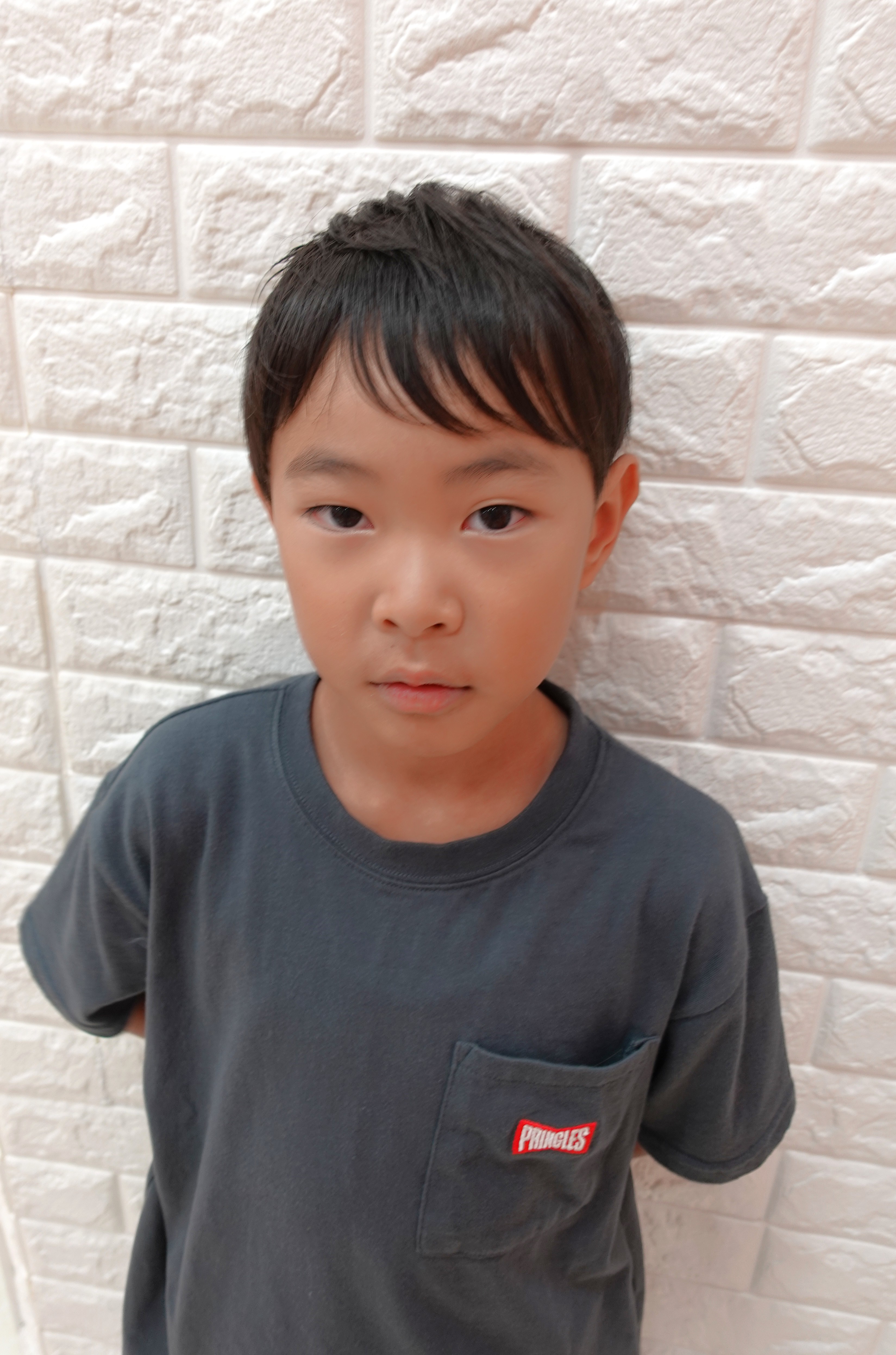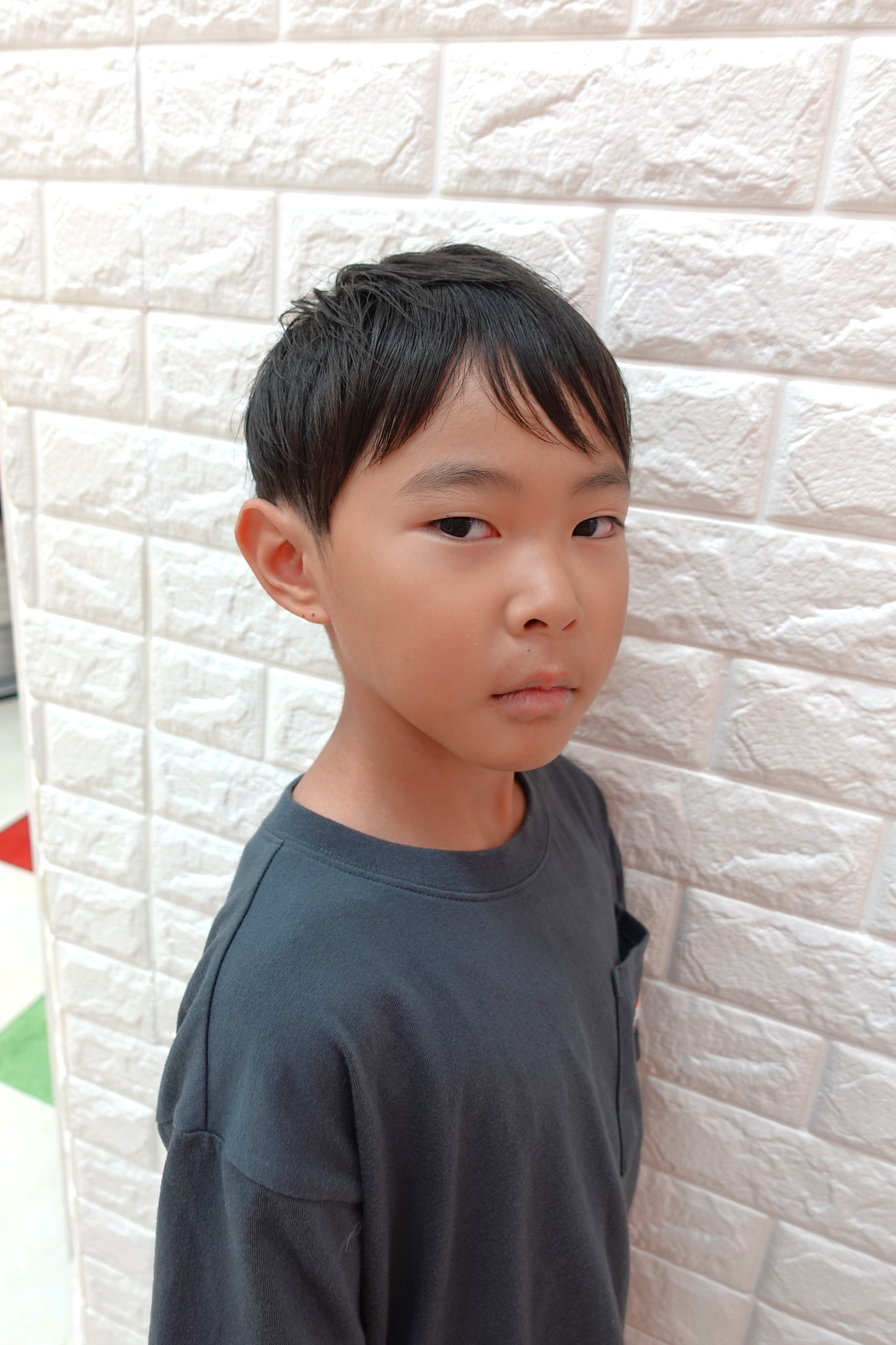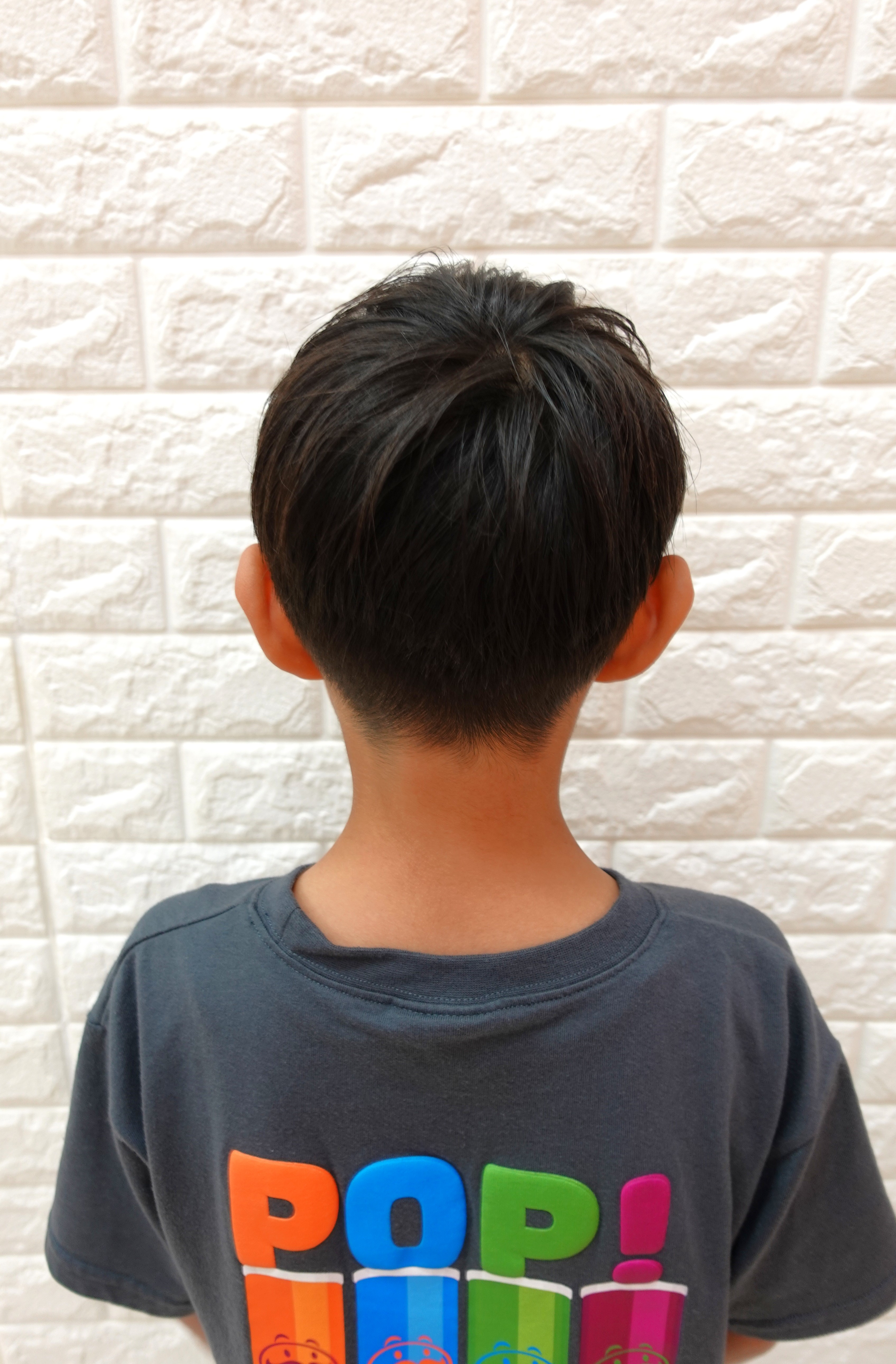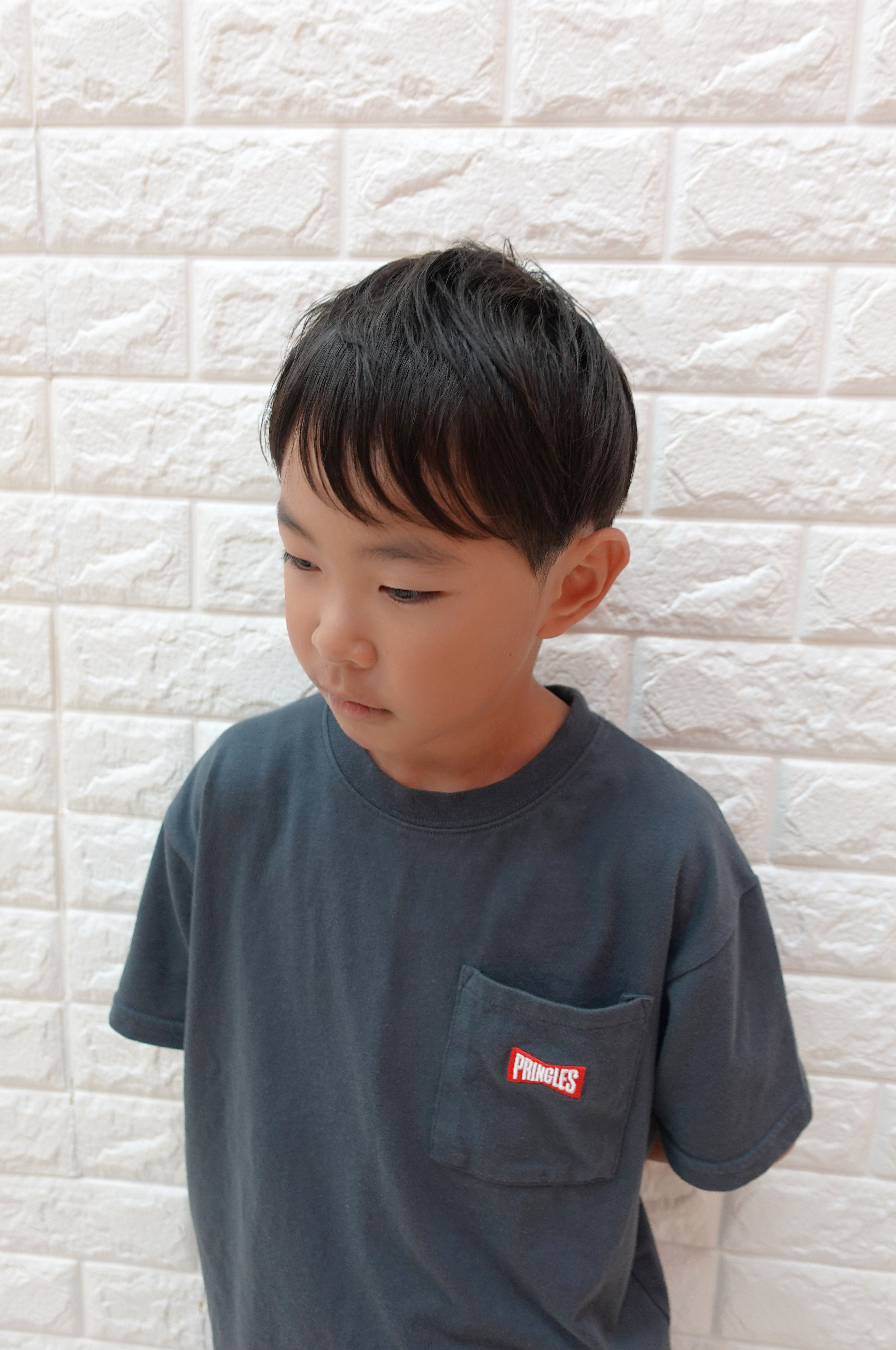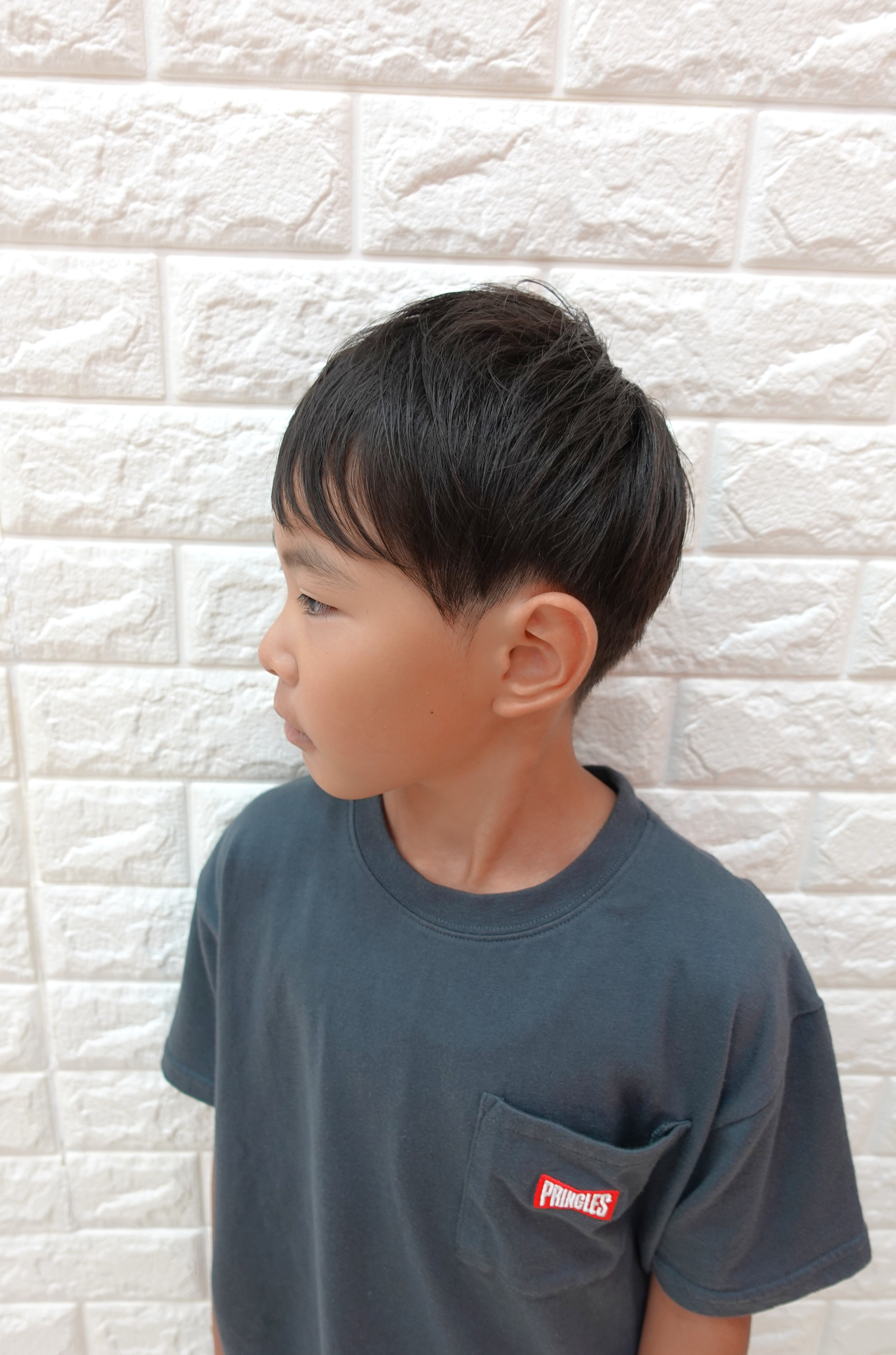ゆずきくん 7歳 サイドはツーブロック、うしろは刈り上げからつないでます短く!はしたくないけどすっきりさは欲しいので、トップやサイドはかるくしてシャープさを爽やかにかっこいいお写真のご協力ありがとうございました