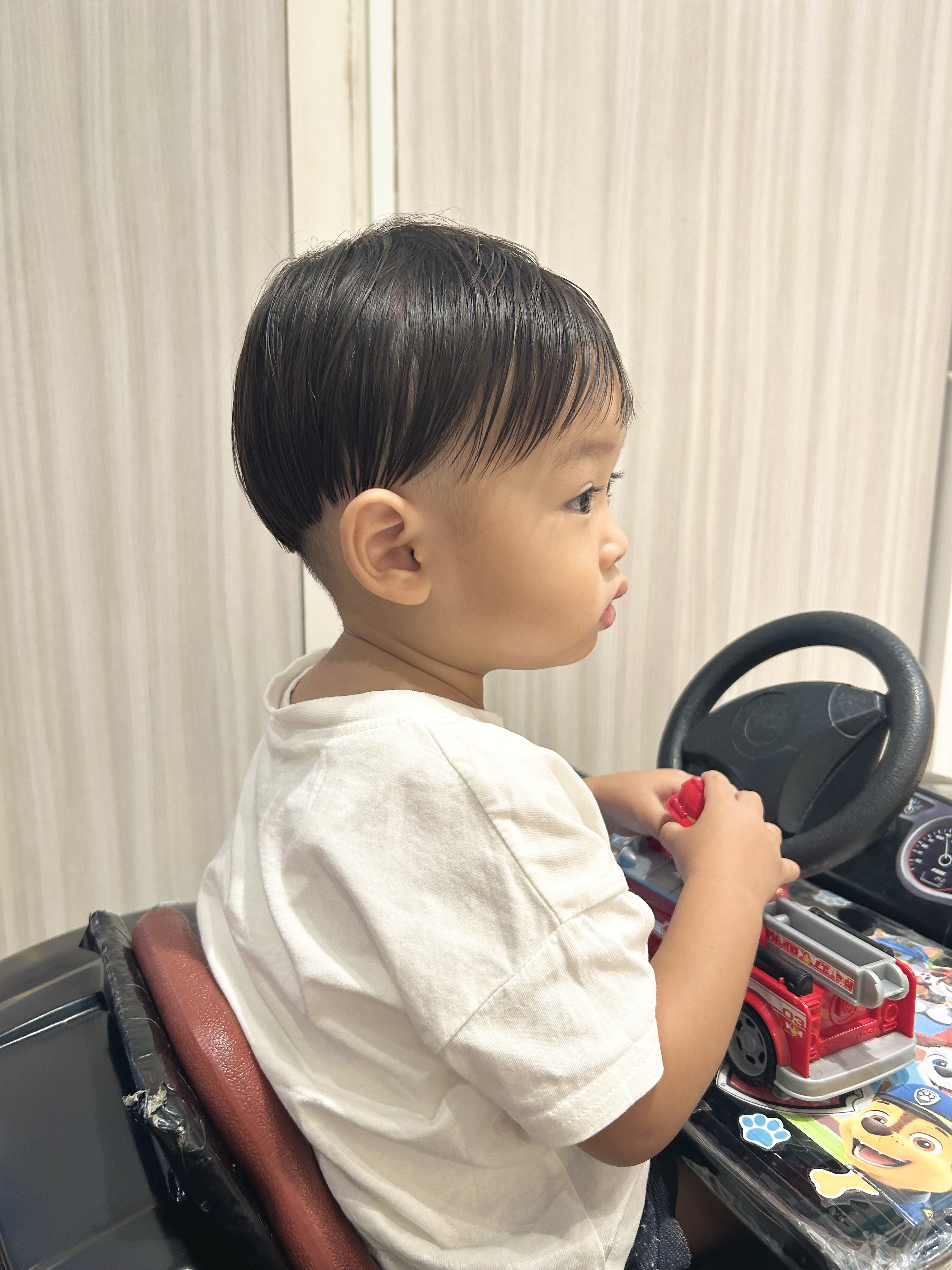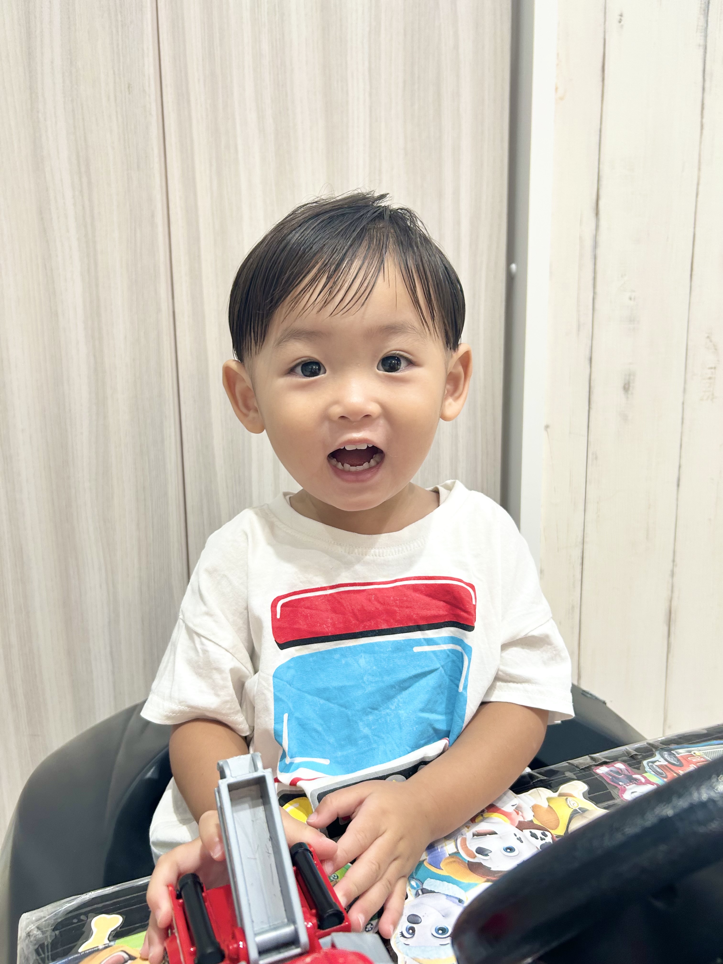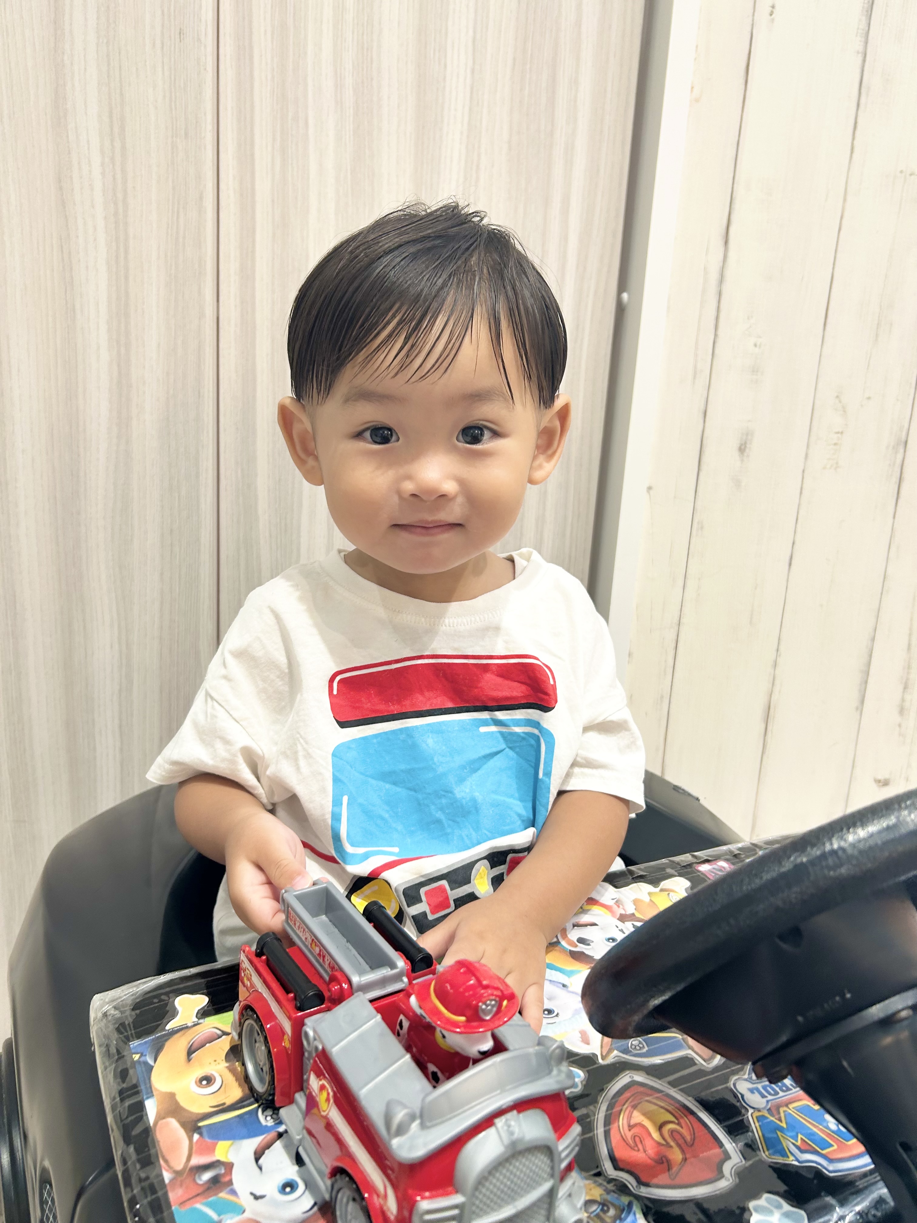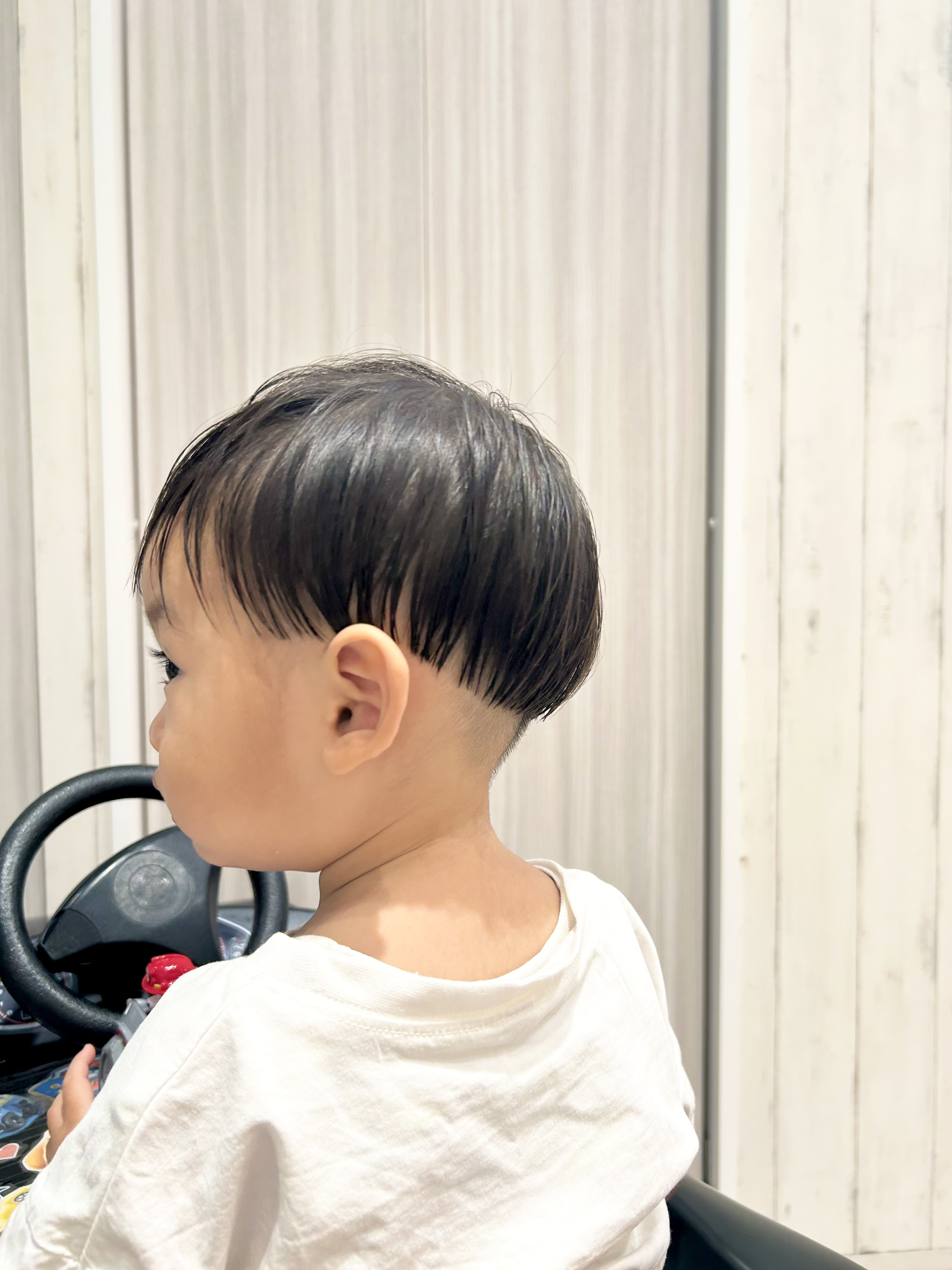 👦かがみくん👦 2歳✌︎ このスタイルからは想像もつかないくらいの長さから、ばっさりカットのかがみくん⭐︎ 中はガッツリ刈り上げたけど、丸い可愛らしさも残した【キュートツーブロ】❤︎ パパママお姉ちゃんお兄ちゃんに見守られながらのカットでした✂︎✂︎✂︎心配をよそに、バリカンも、ハサミでチョキチョキもへっちゃら!!!あっという間に変身できちゃったね✌︎すごーい!!! 最後はみんなでパチリ📷✨撮影のご協力ありがとうございました☺︎