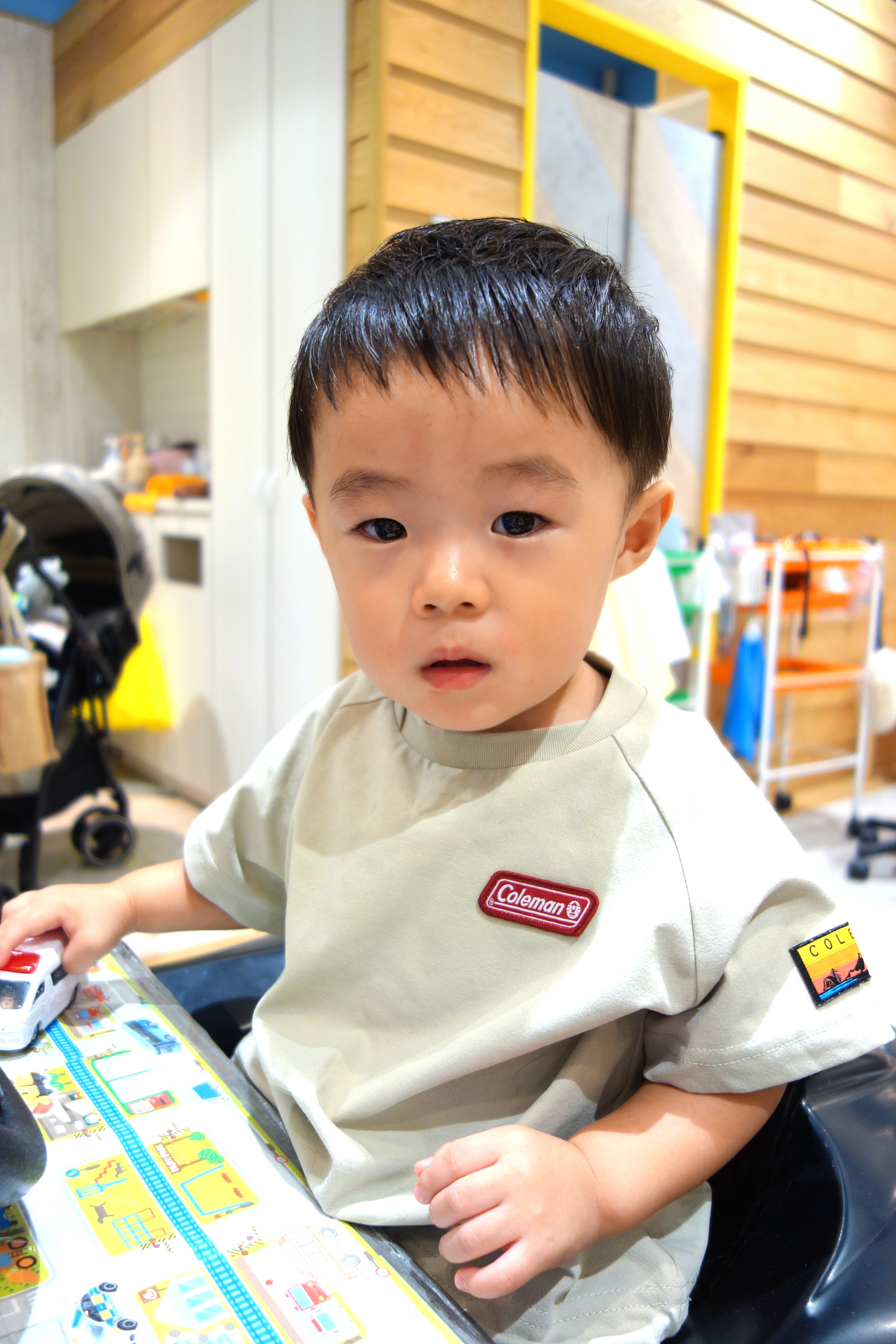 1歳 男の子 1周6ミリですっきり2ブロックスタイルにしましたトップを短く軽めにして、お兄さん風に 前髪も短く切って、おろしても流してもいけるように気持ちアシメ風にしてみました モデルさんのご協力ありがとうございましたすごくかっこよかったです!!またのご利用をお待ちしております