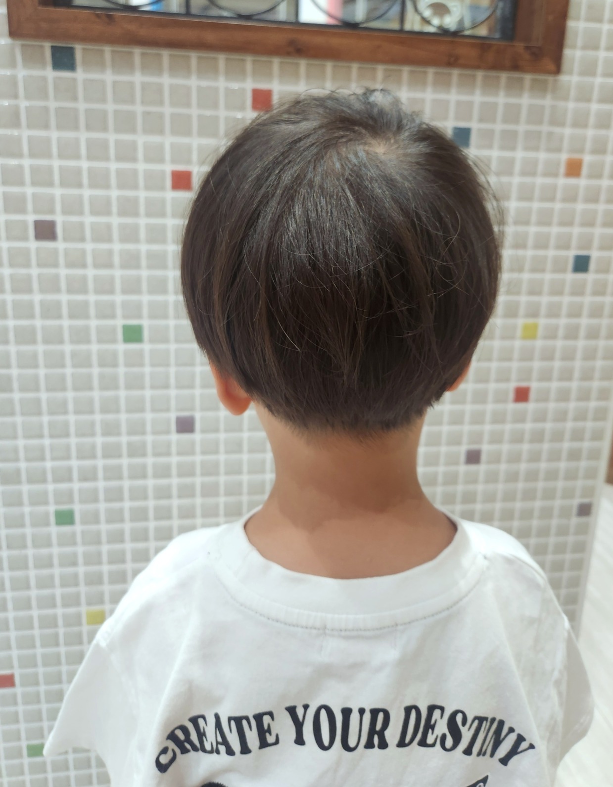 きょうや君 5歳 ふんわりと落ち着きのある雰囲気のツーブロックです全体に丸さをだしてナチュラルながらかっこいいスタイルです きょうや君、素敵にモデルさんありがとうまたお話しようね お母様、お写真のご協力ありがとうございましたまたのご利用をお待ちしております