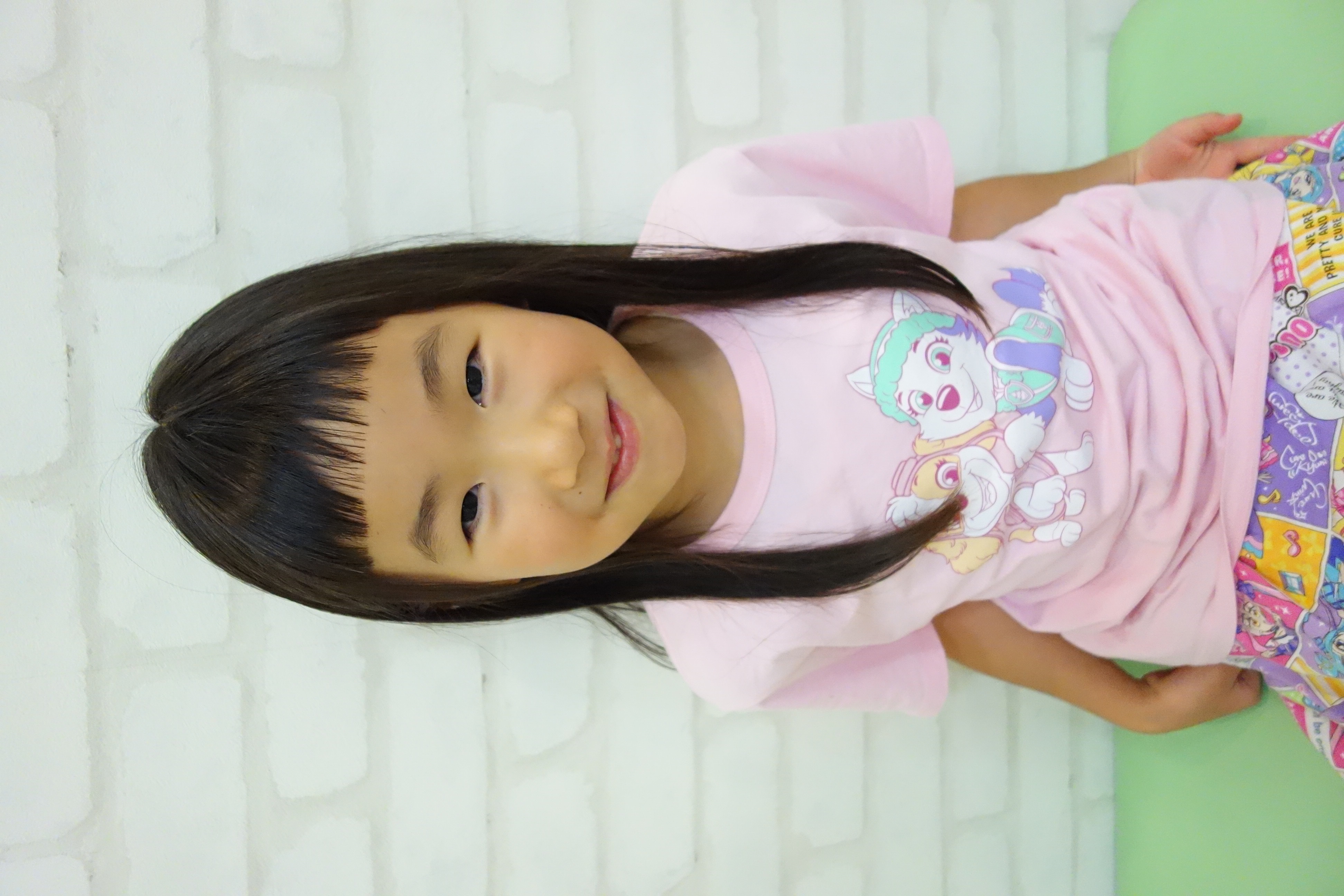 ☆いろはちゃん☆5さい 全ていろはちゃんが髪型のオーダーをしてくれました♪伸ばし中の毛先を整えて、パツンとラインを残した前髪がお似合いです!! ポーズも沢山キメてくれて、ありがとうございました☆またの来店お待ちしております☆