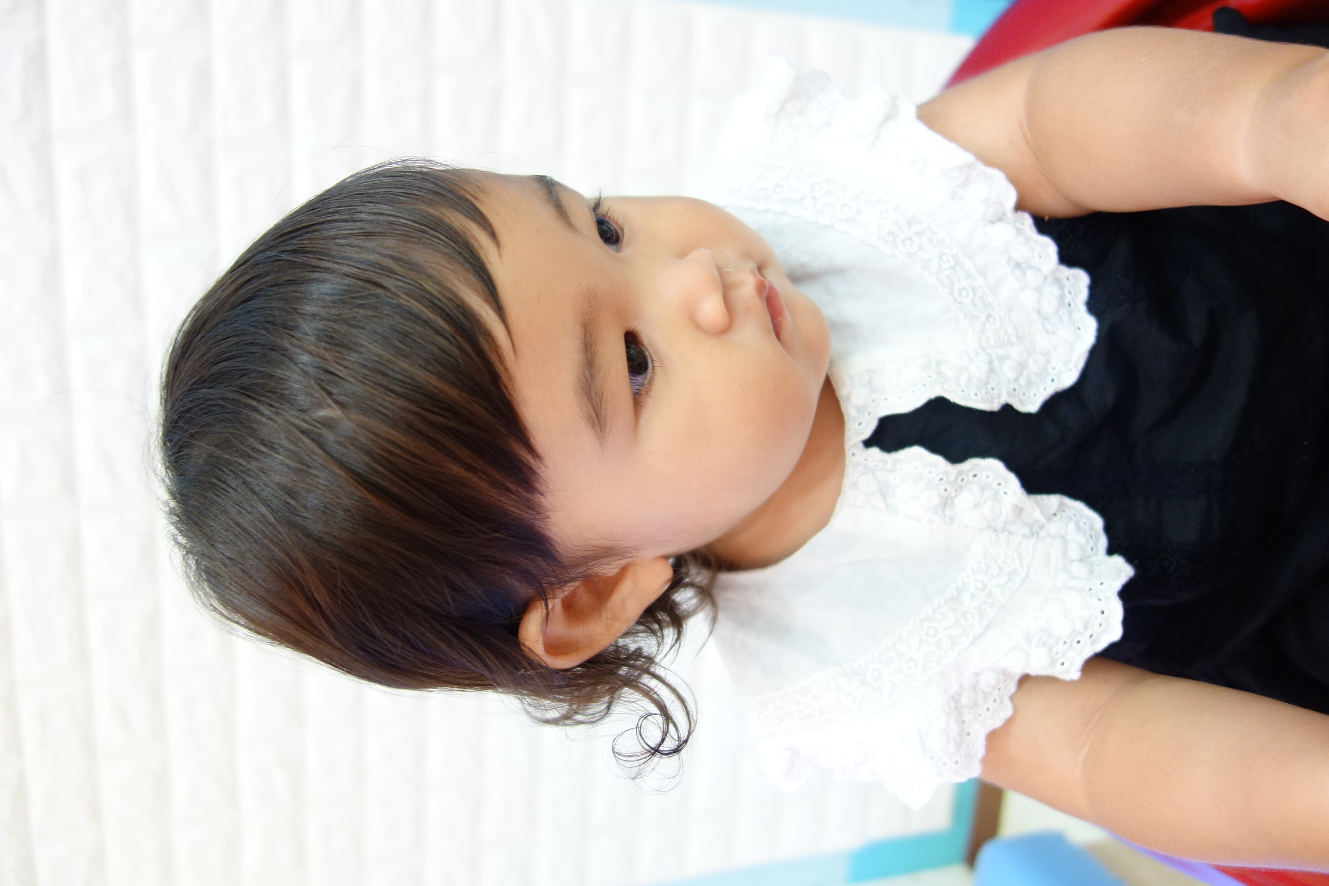 ゆいなちゃん 1さいオンザバング ちょっぴりくせ毛のゆいなちゃん初めての前髪ちょっきんおでこ半分くらいで自然にチョキチョキしました   ゆいなちゃん とってもキュートでかわいく変身お母さま、お父さま、ブログのご協力ありがとうございました