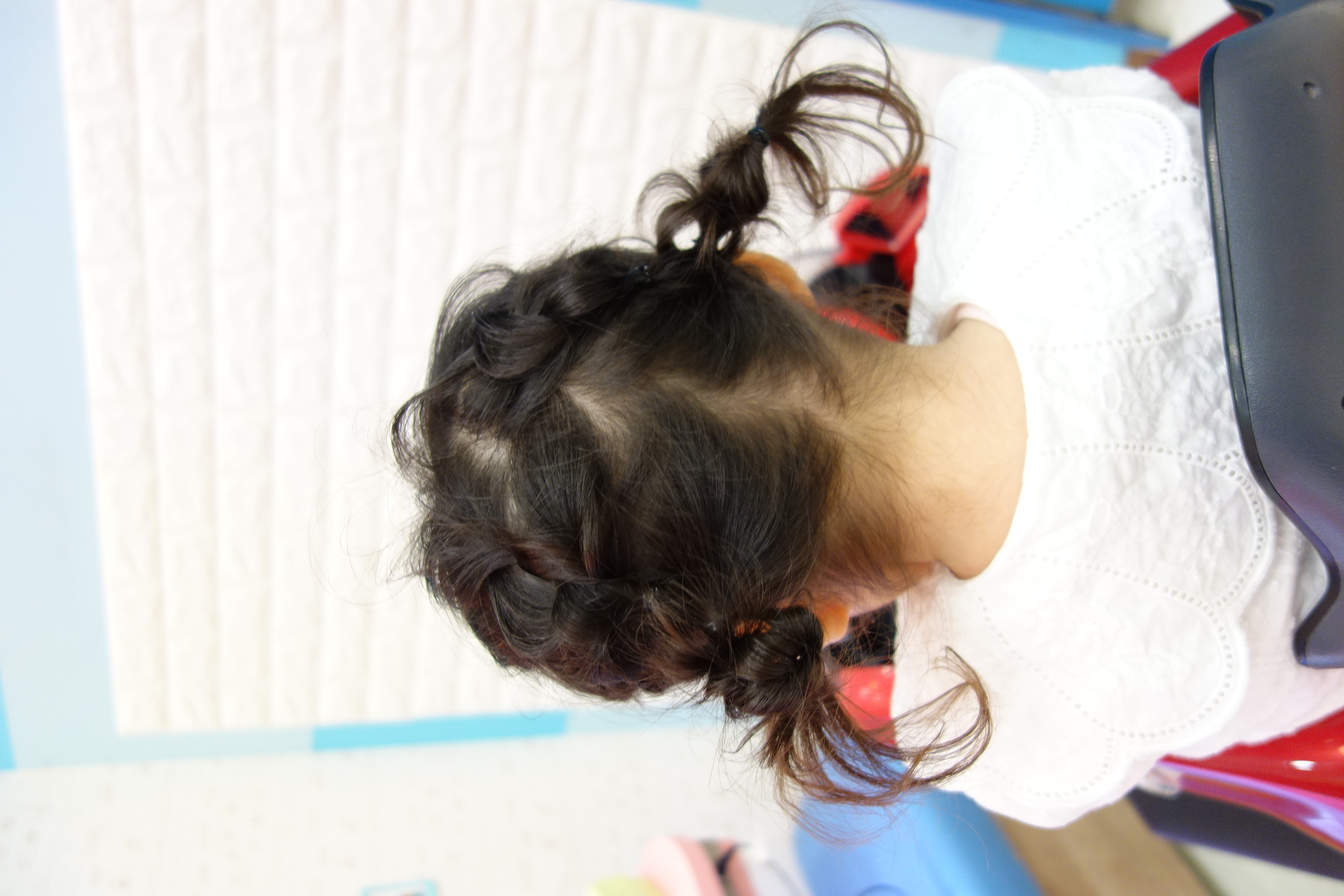 いとちゃん 3才ツインヘアーセット七五三で、お着物とドレスを着るのでどちらにでも合うようにしましたサイドは短かったので、くるりんぱ後ろは、真ん中くらいまで編み込みしてふわっとルーズにお耳くらいの位置で結んでゴム隠し結びとくるりんぱ最後に毛先はくるりん巻きでキュートなゆるふわツインの完成いとちゃん、とってもかわいく変身したね そして、初めての美容室がんばったね素敵な七五三のお写真撮ってきてねお父様、お母様ブログのご協力ありがとうございました