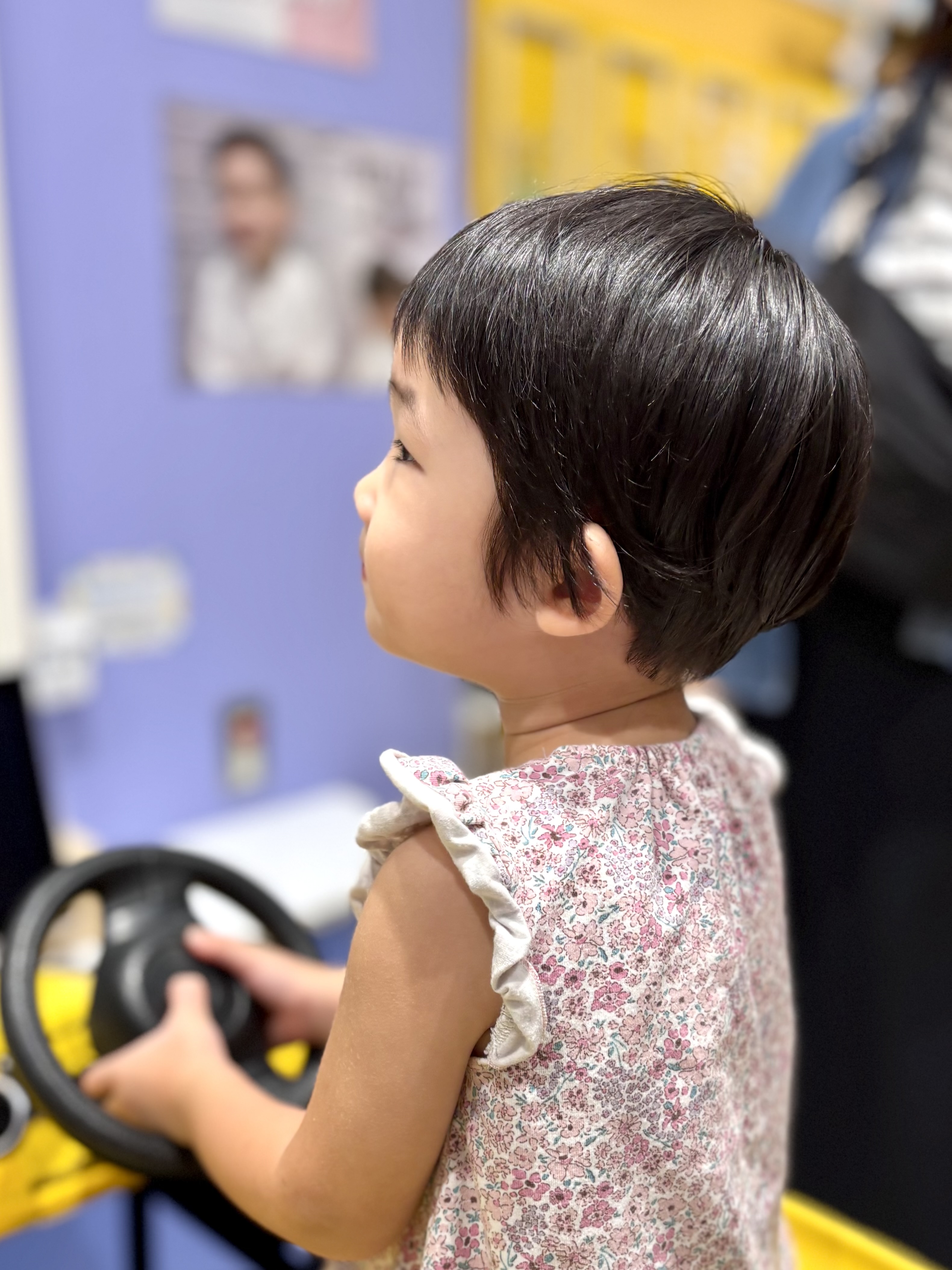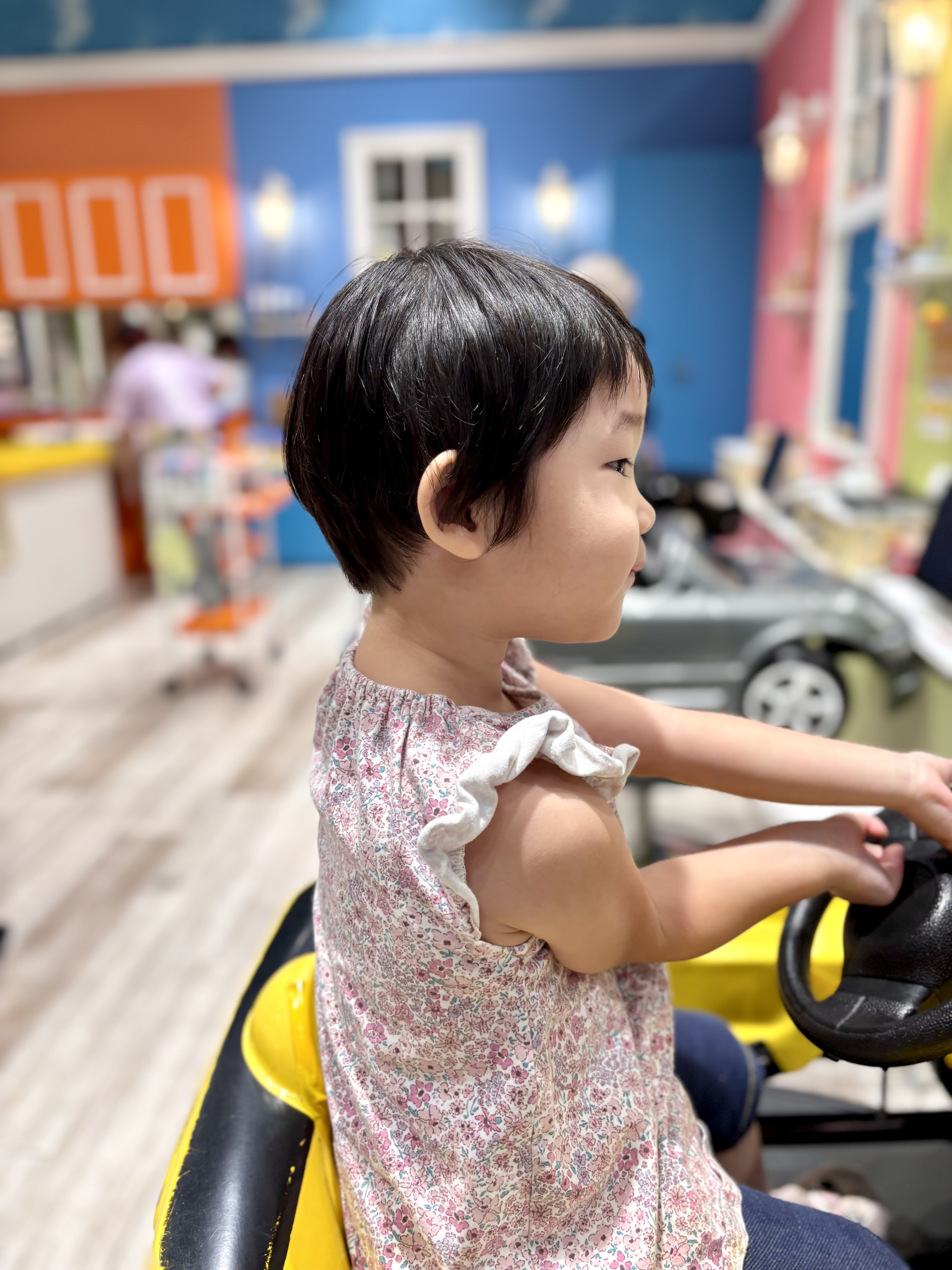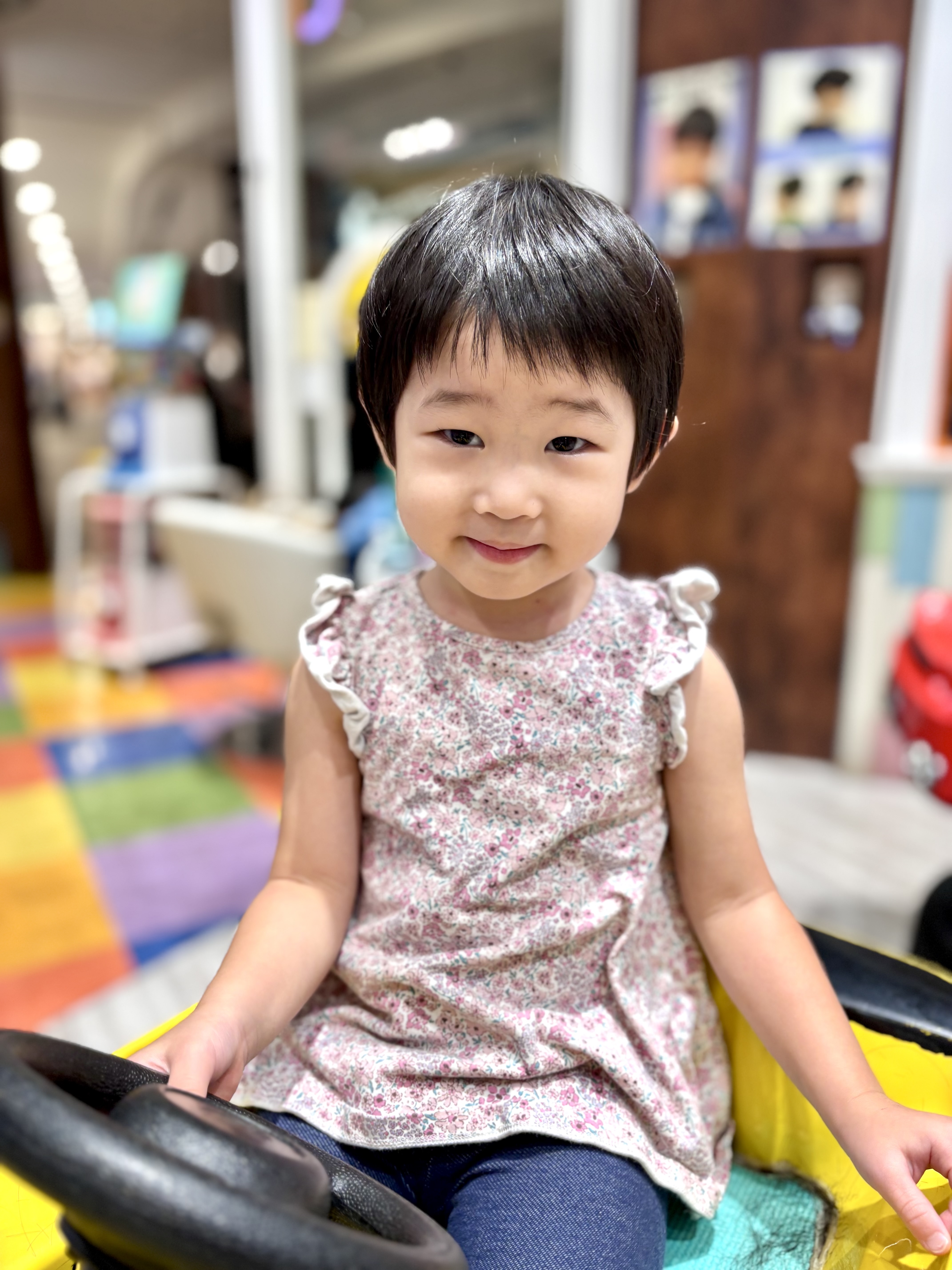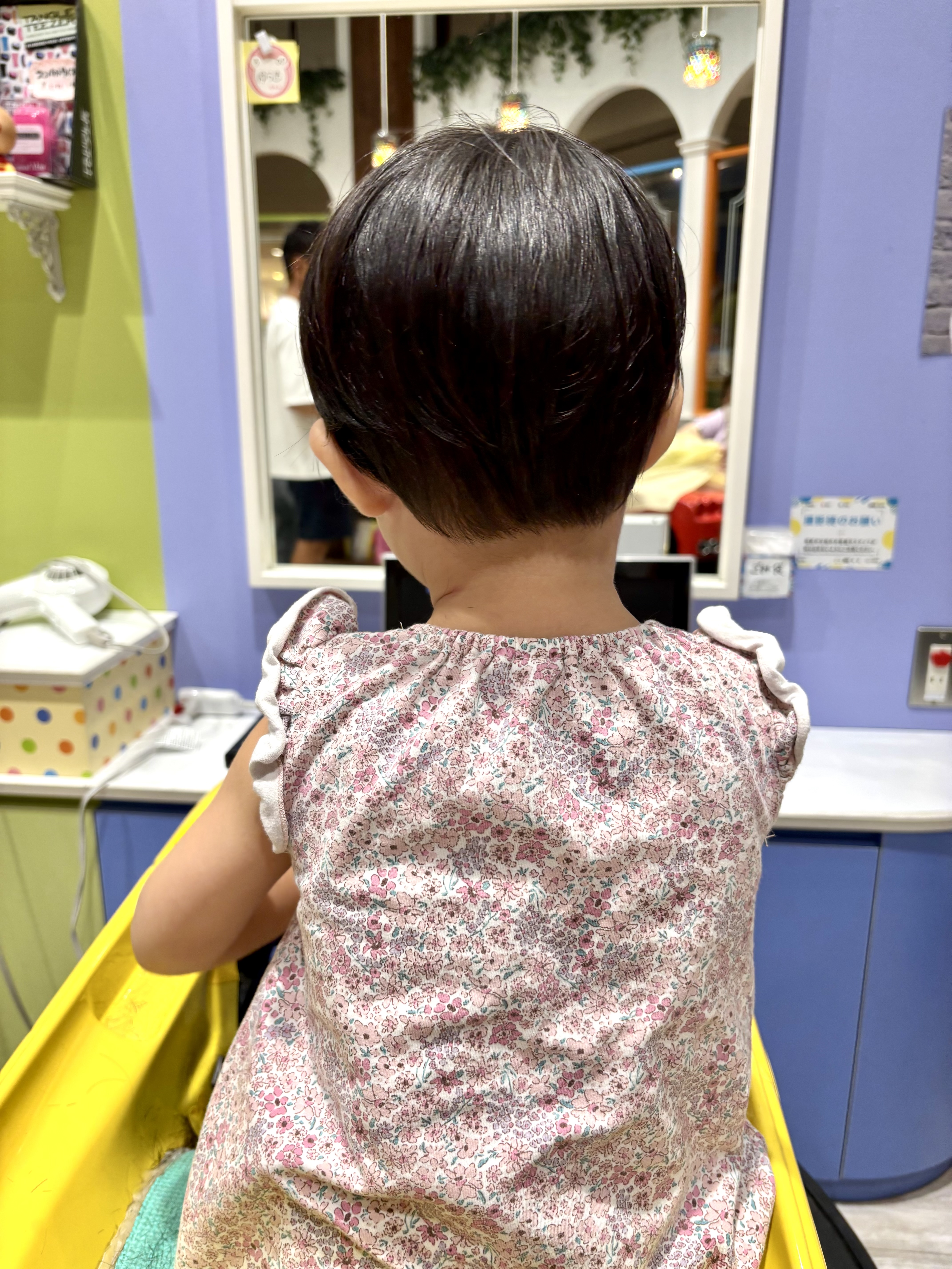 ゆうきちゃん 2さい 襟足ギリギリに整えて、サイドも耳たぶ出るくらいの長さのショートボブスタイルです軽くして重さも取って爽やか〜カット中もいっぱい運転上手でした〜 お母様お写真のご協力ありがとうございました。またのご利用お待ちしております。