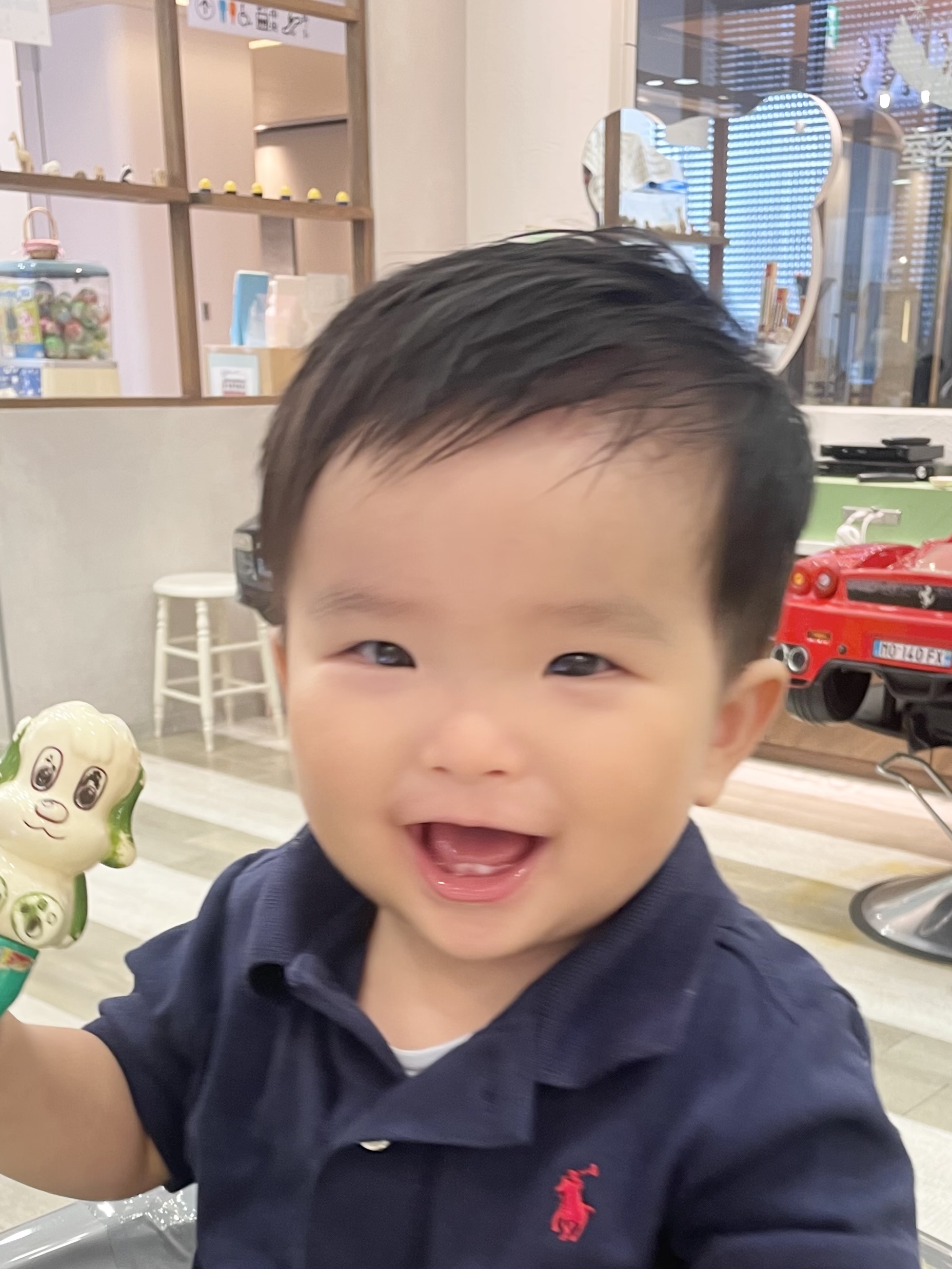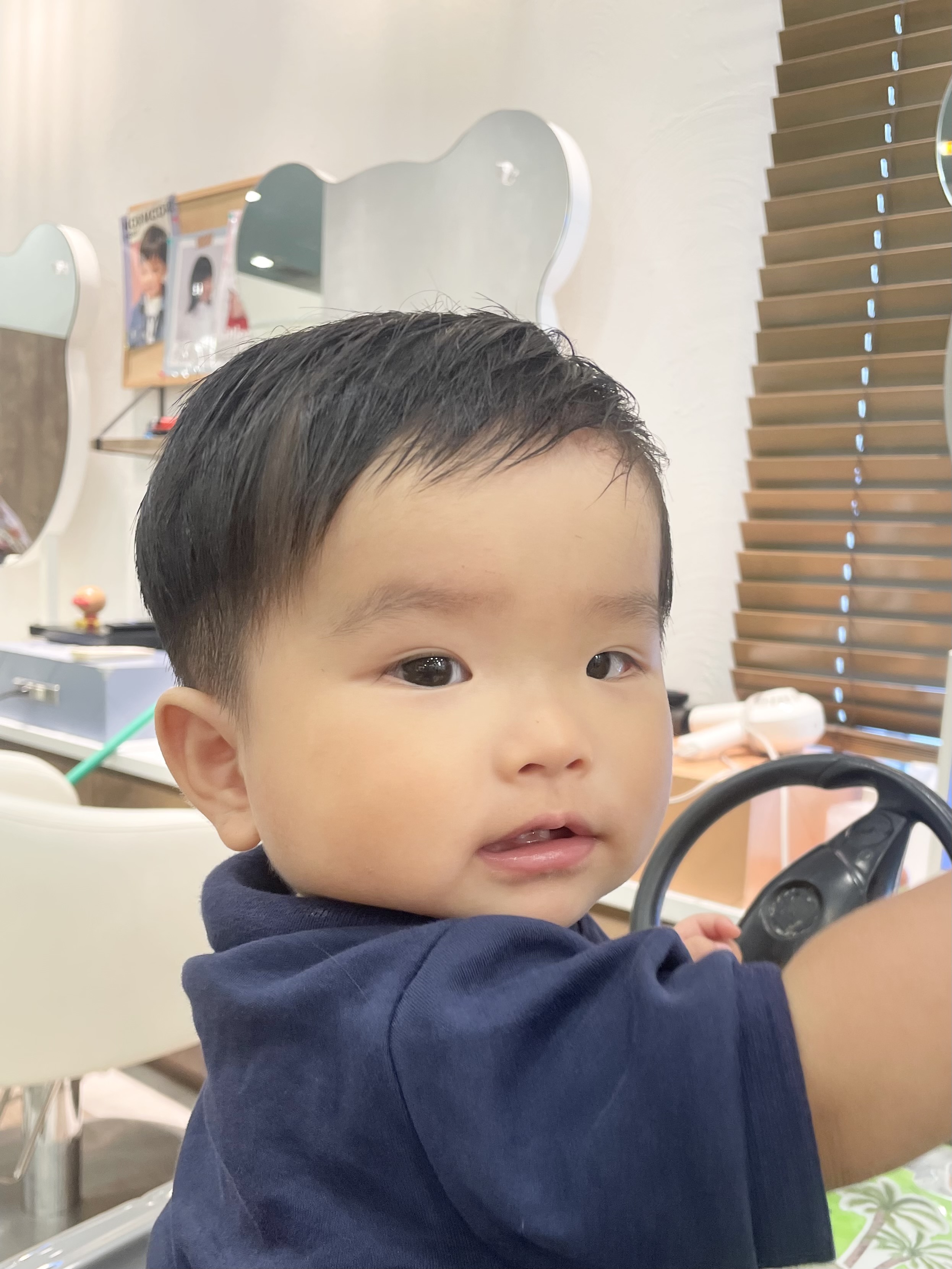 かいぜんくん 11か月 初めてのバリカンも全然へっちゃらだったかいぜんくんでした!今回は短めにツーブロックスタイルに✂️まだまだ暑そうなので耳えりすっきりと終始ニコニコでとっても癒されました💕お母様ブログのご協力ありがとうございました。またのご来店お待ちしています🎵