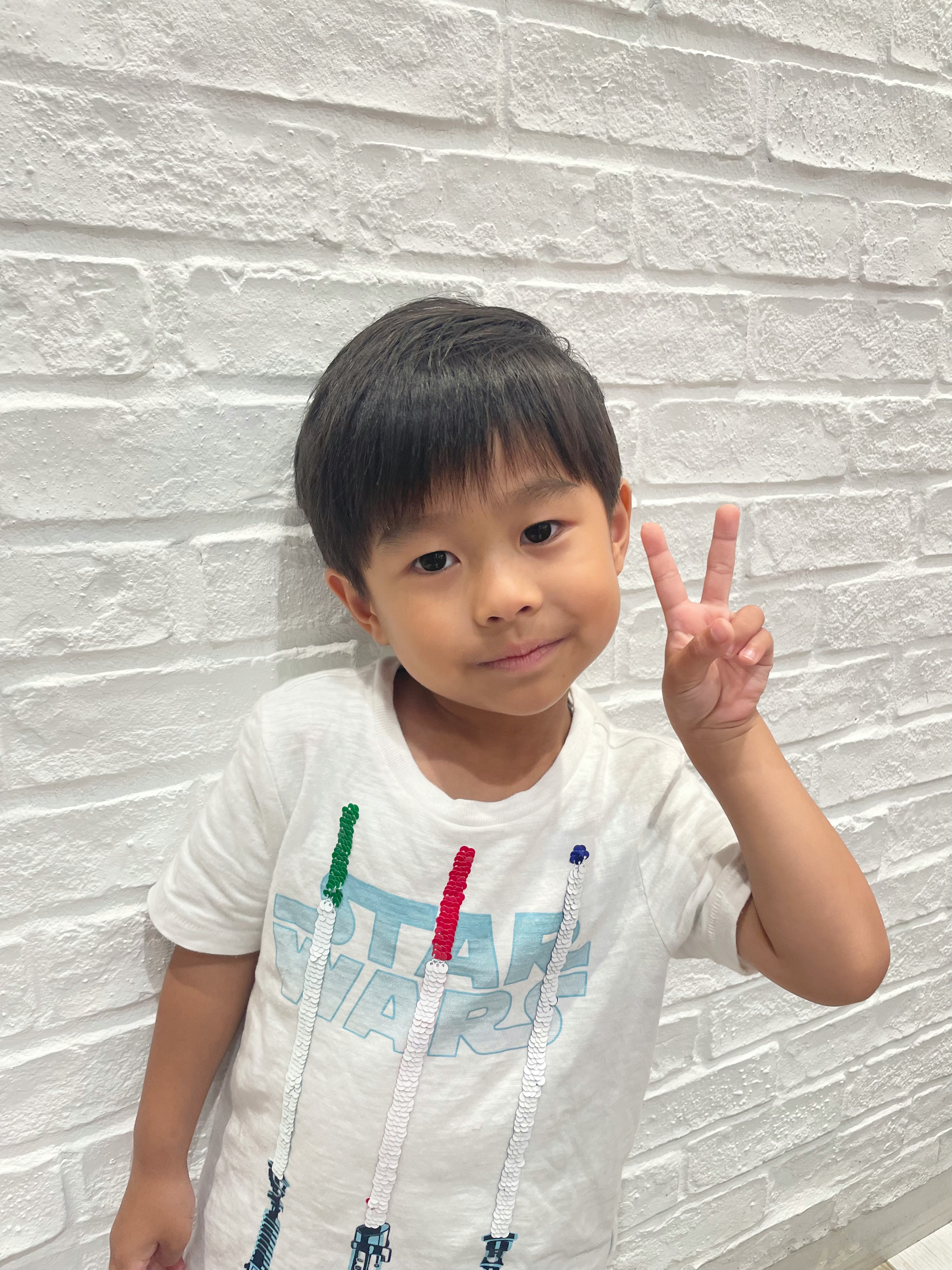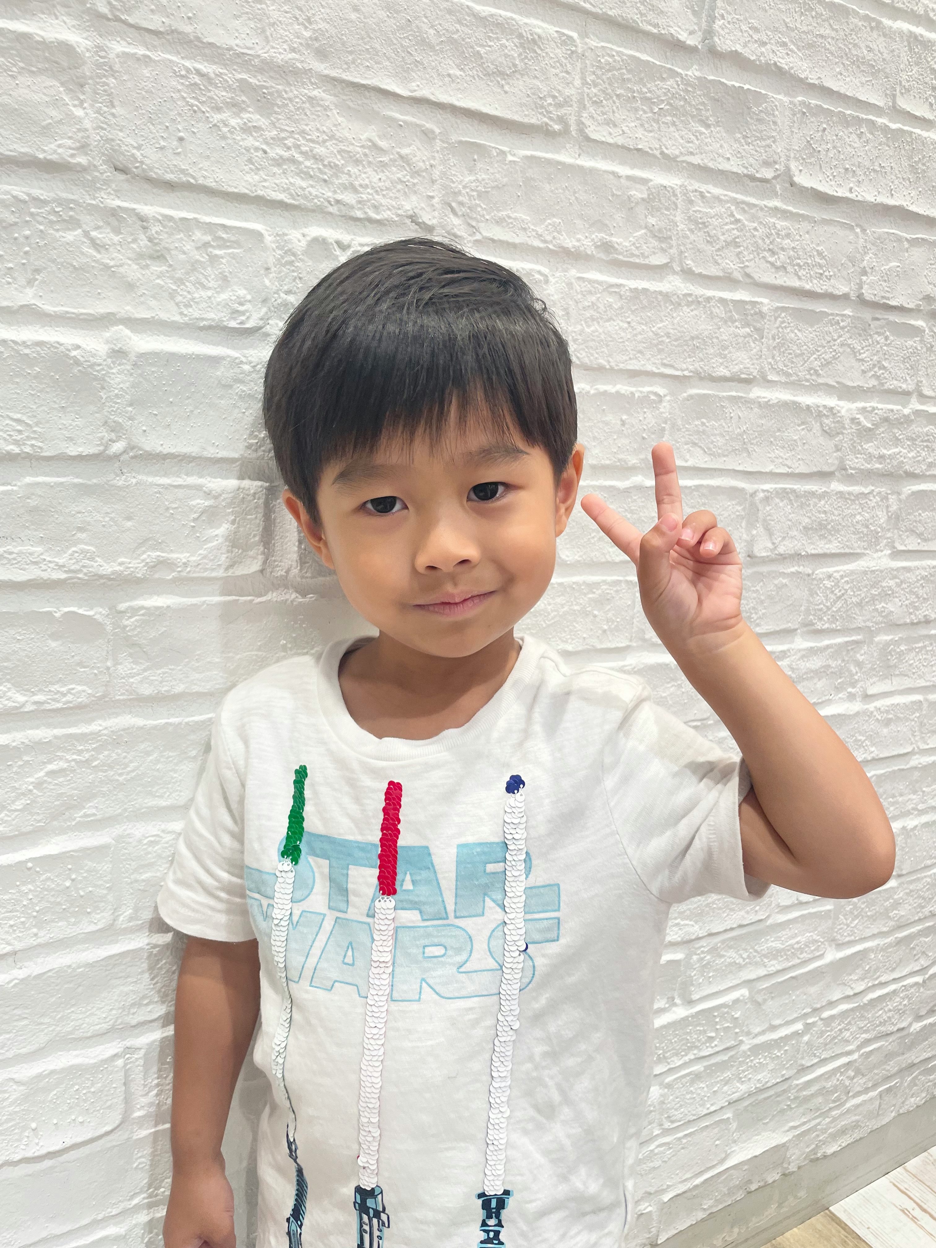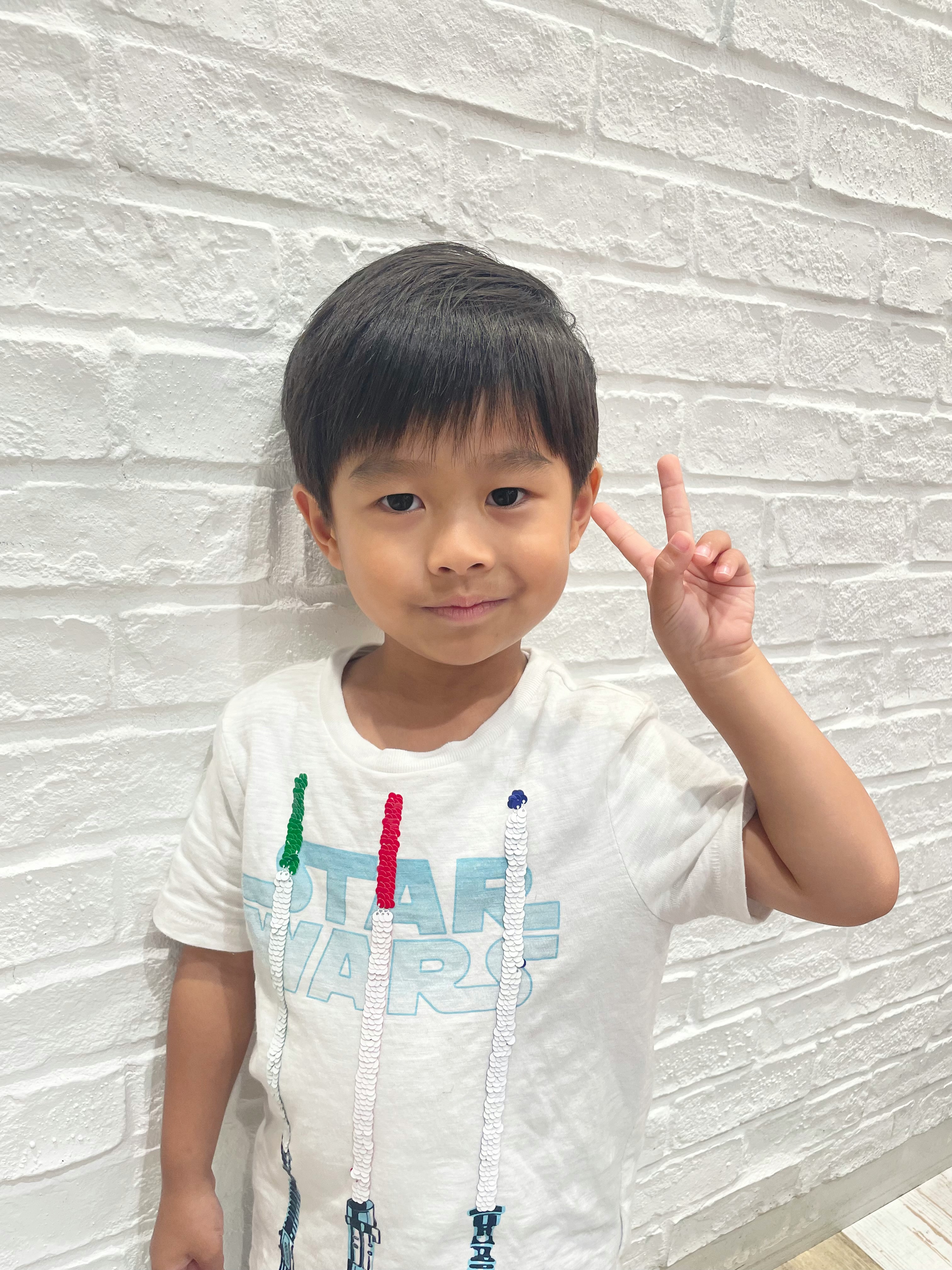 りくくん 4さいチョッキンズ大好きな、りくくん王道、耳出しショート短すぎずナチュラルなスタイルですスタイルのチェックも自分でしてくれてとってもオシャレさん最近行ったディズニーのサングラスと一緒に最後のキメポーズまたお店でチョキチョキしようね!! お写真のご協力ありがとうございました!またのご利用をお待ちしております。