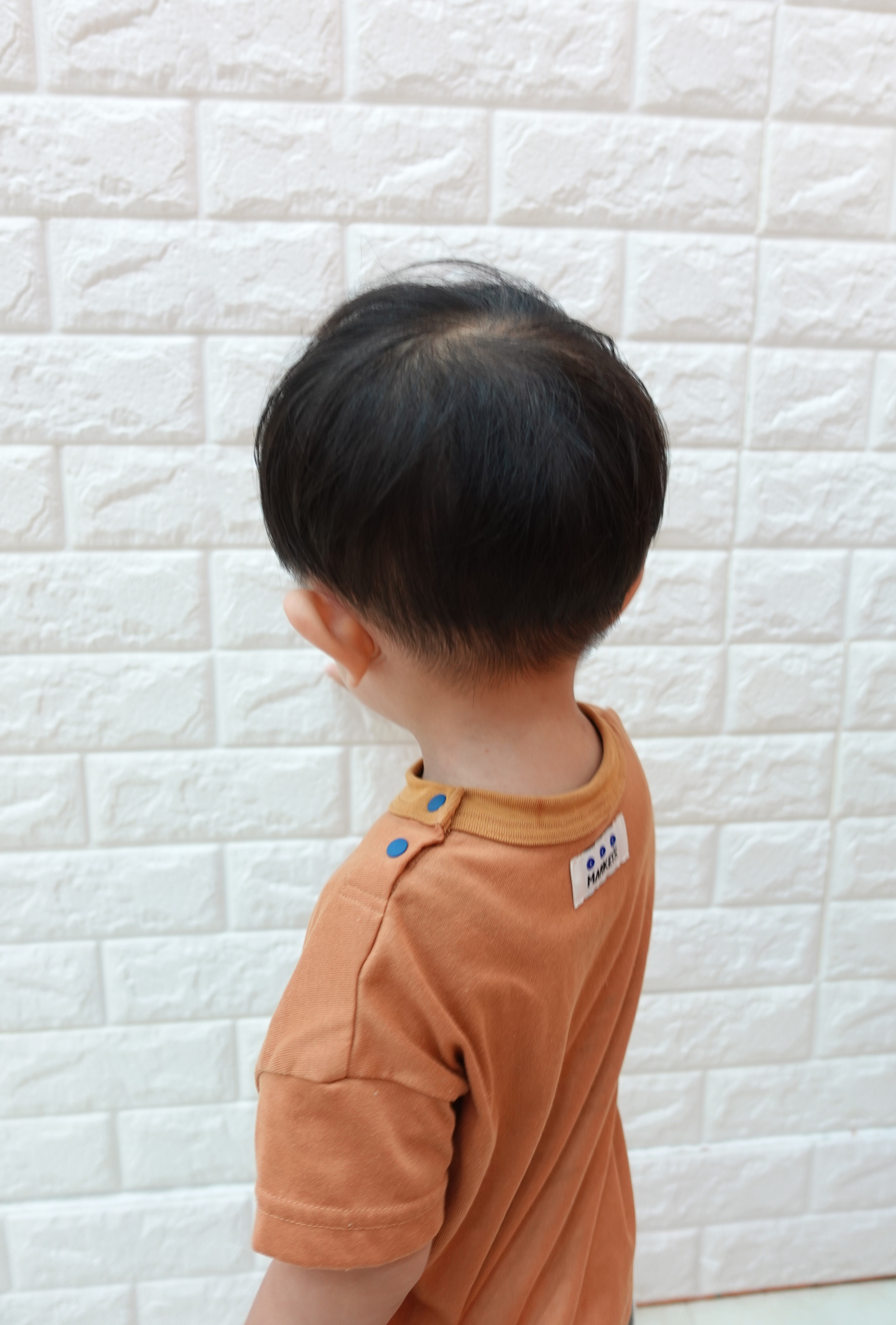 もうすぐ2才の男の子 全体をツーブロックにしつつ、バックは丸みがでるよう刈り上げに差を丸いフォルムは大事にしつつ軽さもプラス可愛くもかっこよくもすっきり感もとってもお似合いですお写真のご協力ありがとうございました