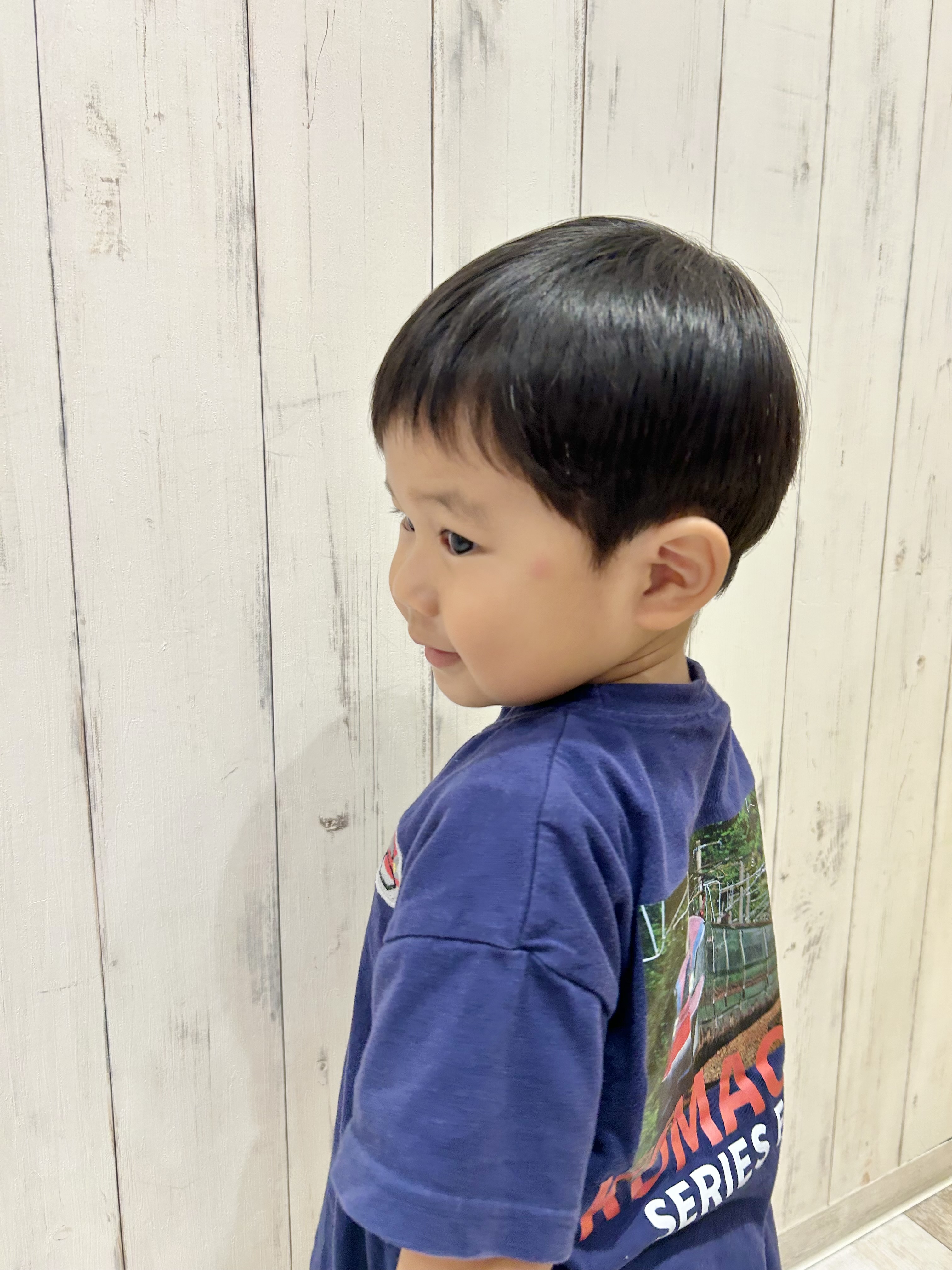 👦ときくん👦 2歳✌︎ 【耳だしショート】 刈り上げではなく、ハサミで耳周り、襟足をスッキリさせたショートカットです☺︎バリカンが苦手なお子様や、可愛らしいフォルムがお好みの方におすすめです♪短めの前髪もとってもキュート♪ カットから撮影までずーっと可愛い笑顔をくれたときくん✨癒されちゃいました❤︎Tシャツのこまちがかっこいいね🚄よく似合ってるよー!! ご協力ありがとうございました☺︎☺︎