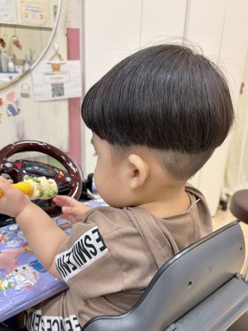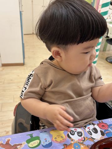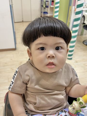 はるくん0歳さん!ファーストカットでチョッキンズにきてくれました🎉とっても髪の毛ふさふささんでしたが、2ブロックにしてすっきり!小さなお子様にぴったりなマッシュでさらに可愛くなりました❤️これでおうちでシャンプーするのもやりやすくなると思います😄初めてのカット、とても上手にできました!ブログのご協力ありがとうございました!