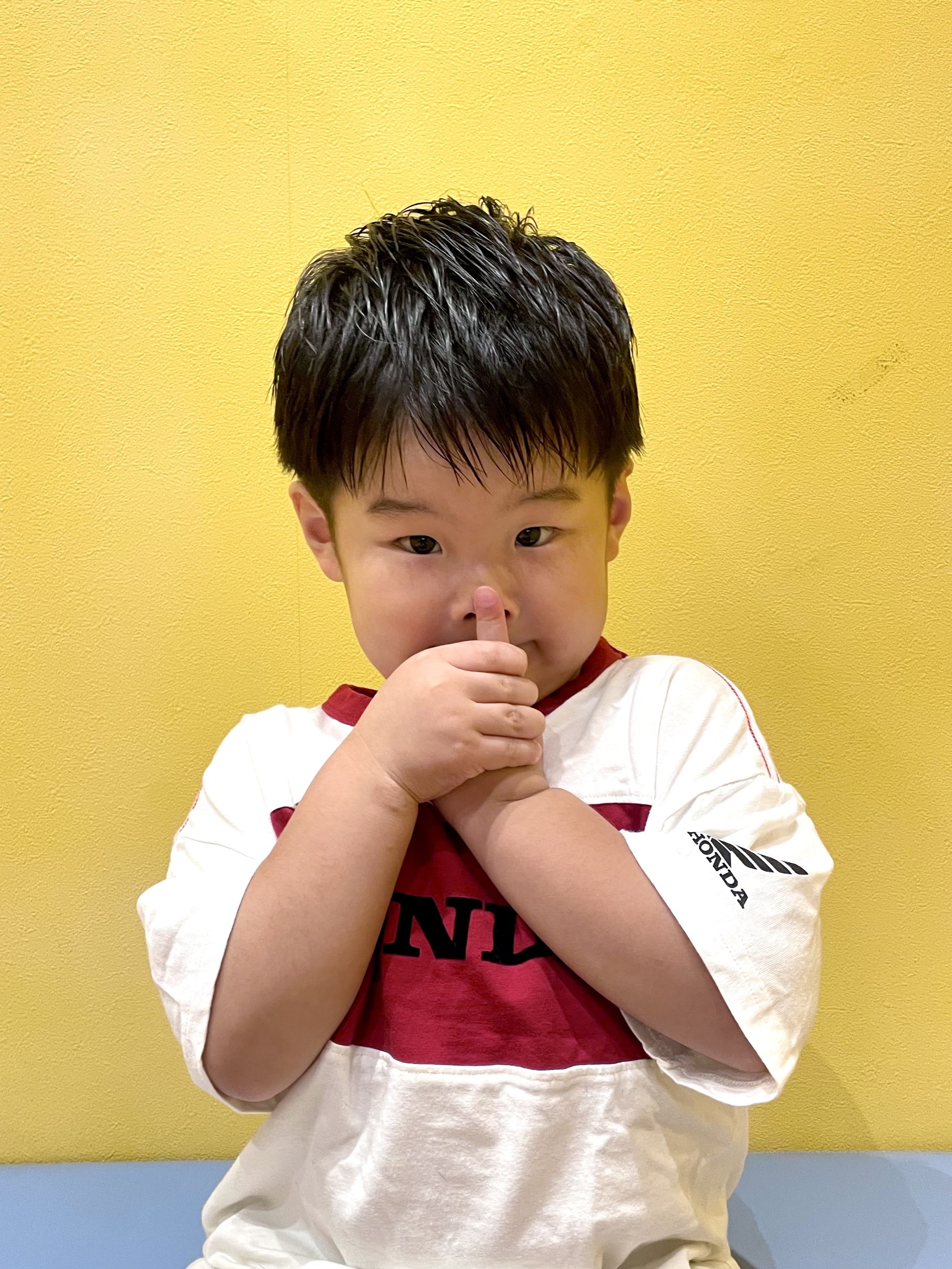 🚗 るねんくん 3才 🏍️サイドとバックは刈り上げてツーブロックスタイルに✨伸ばしていくのでTOPの長さを残してます🙆‍♂️ また車で遊ぼうね!🚗 お母様、お写真のご協力ありがとうございました。またのご来店お待ちしております。