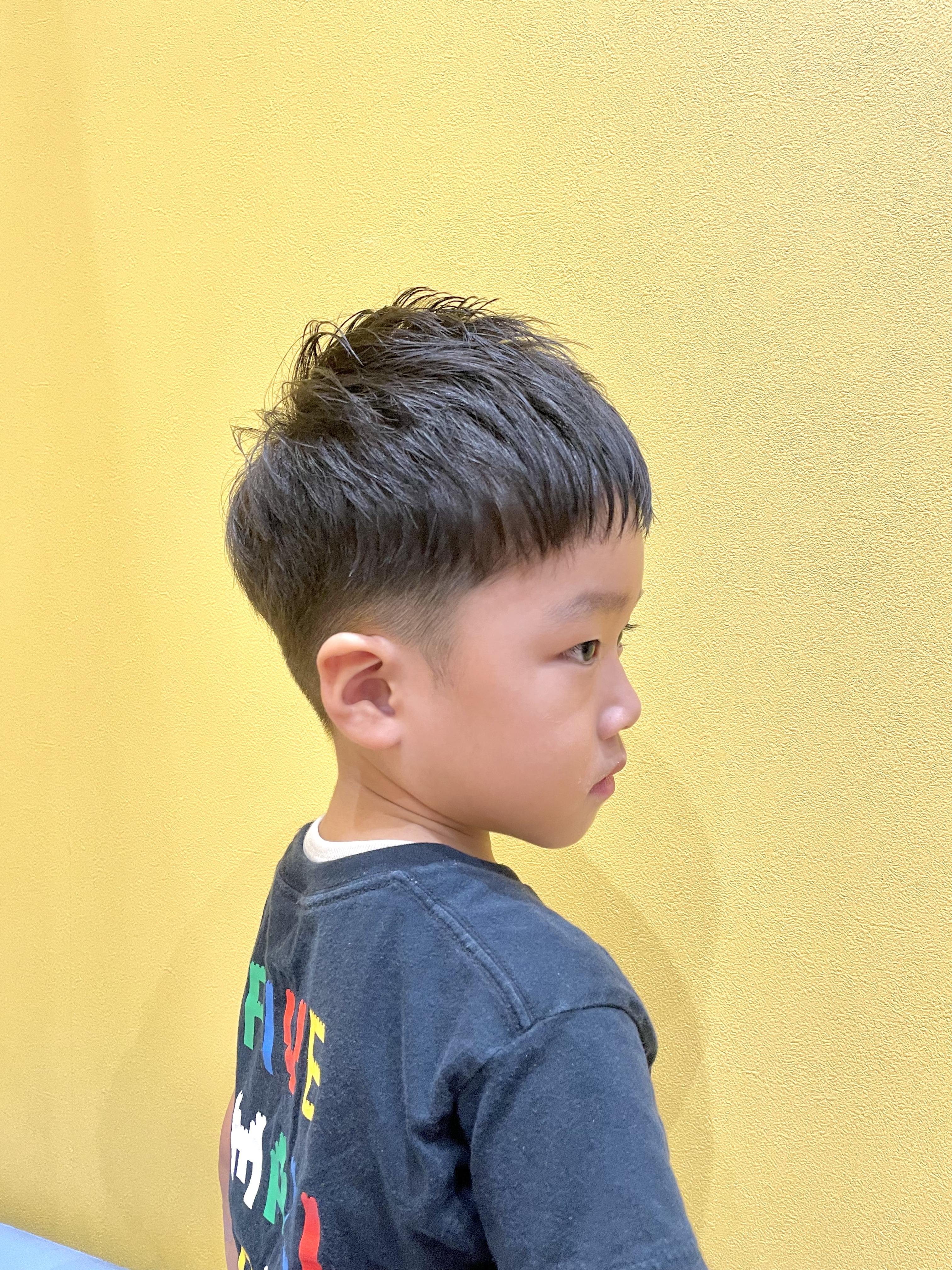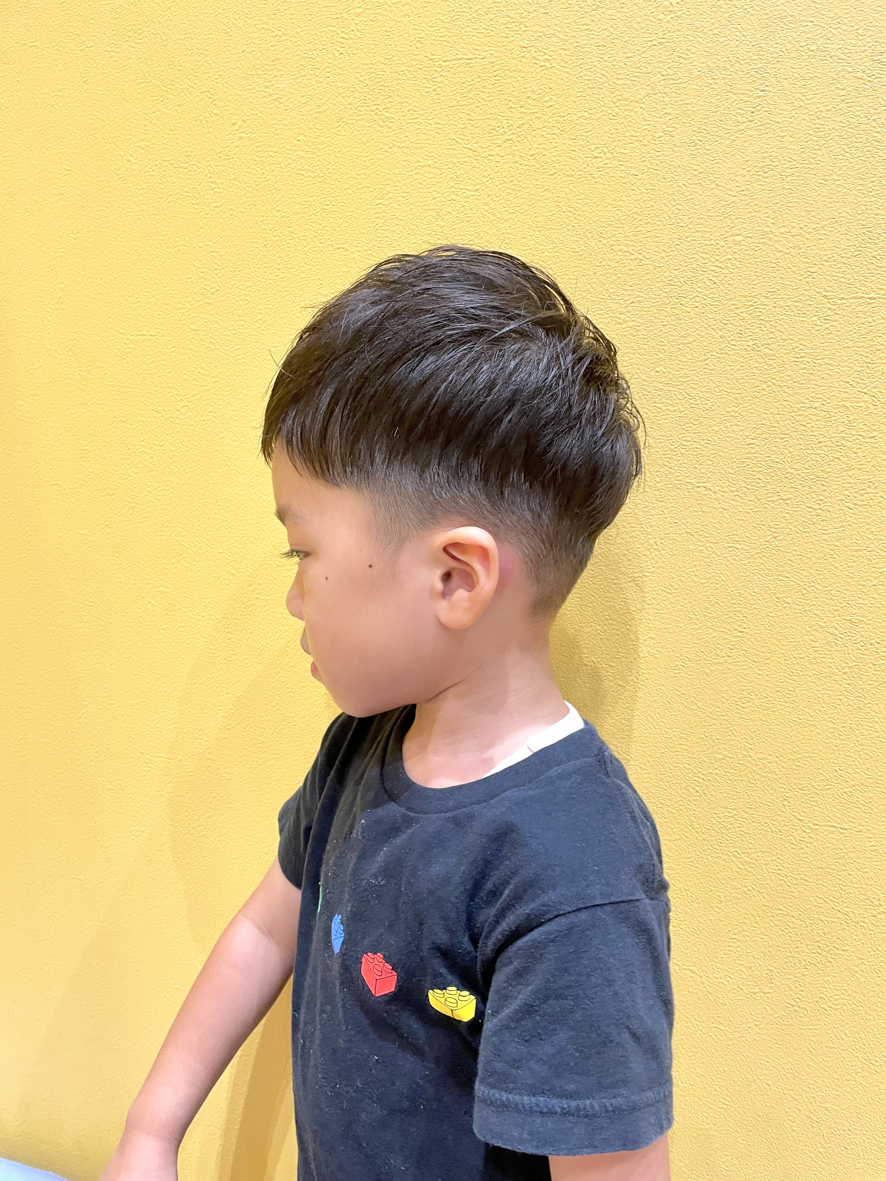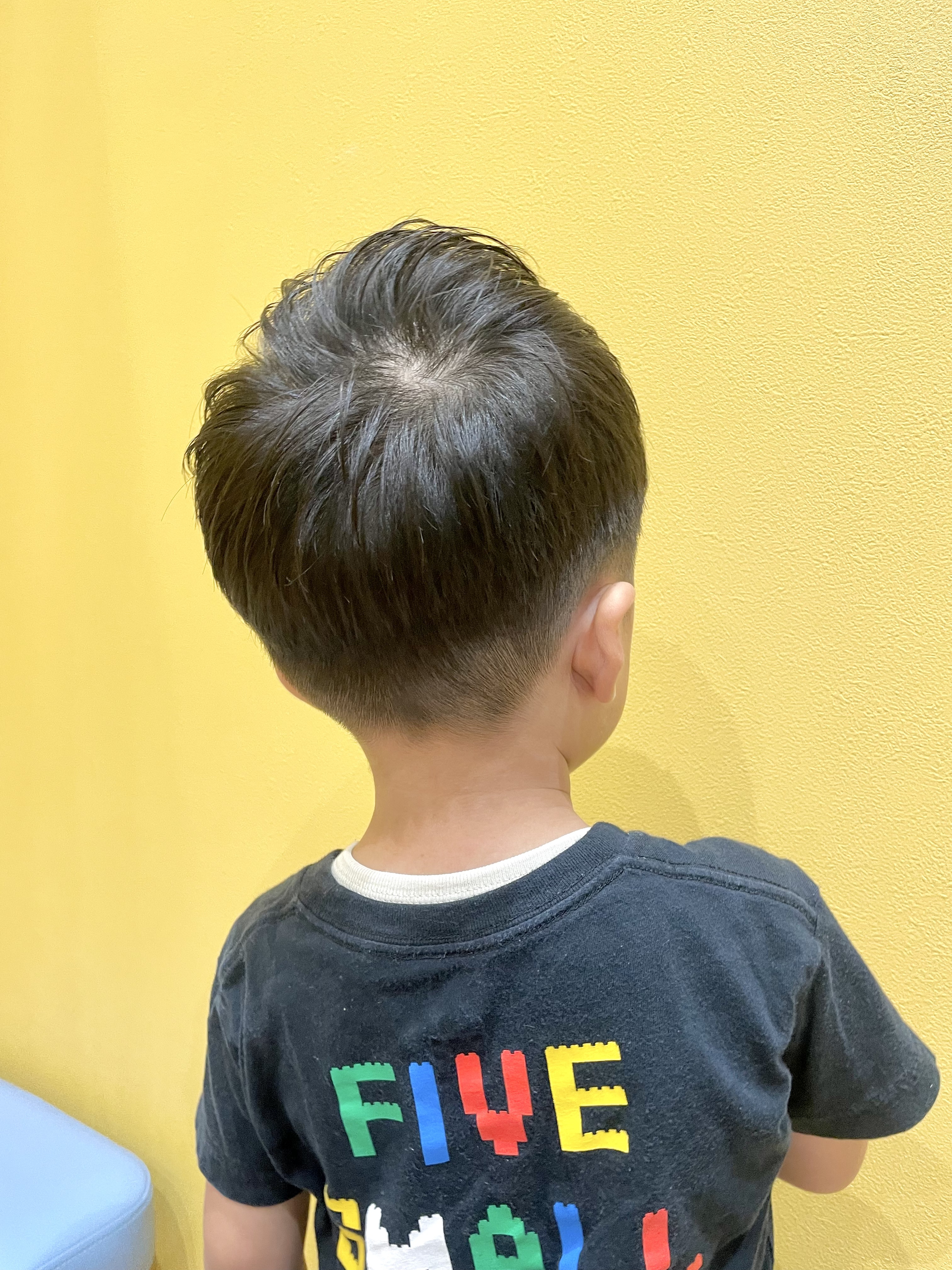 ⭐️ しんいちくん 4才 ⭐️刈り上げにメリハリをつけたフェードスタイル!⚡️しっかり刈り込むので男の子らしいかっこよさがあります🙆‍♂️ ウルトラマンポーズ決まってるね!😎 お母様、お写真のご協力ありがとうございました。またのご来店お待ちしております。