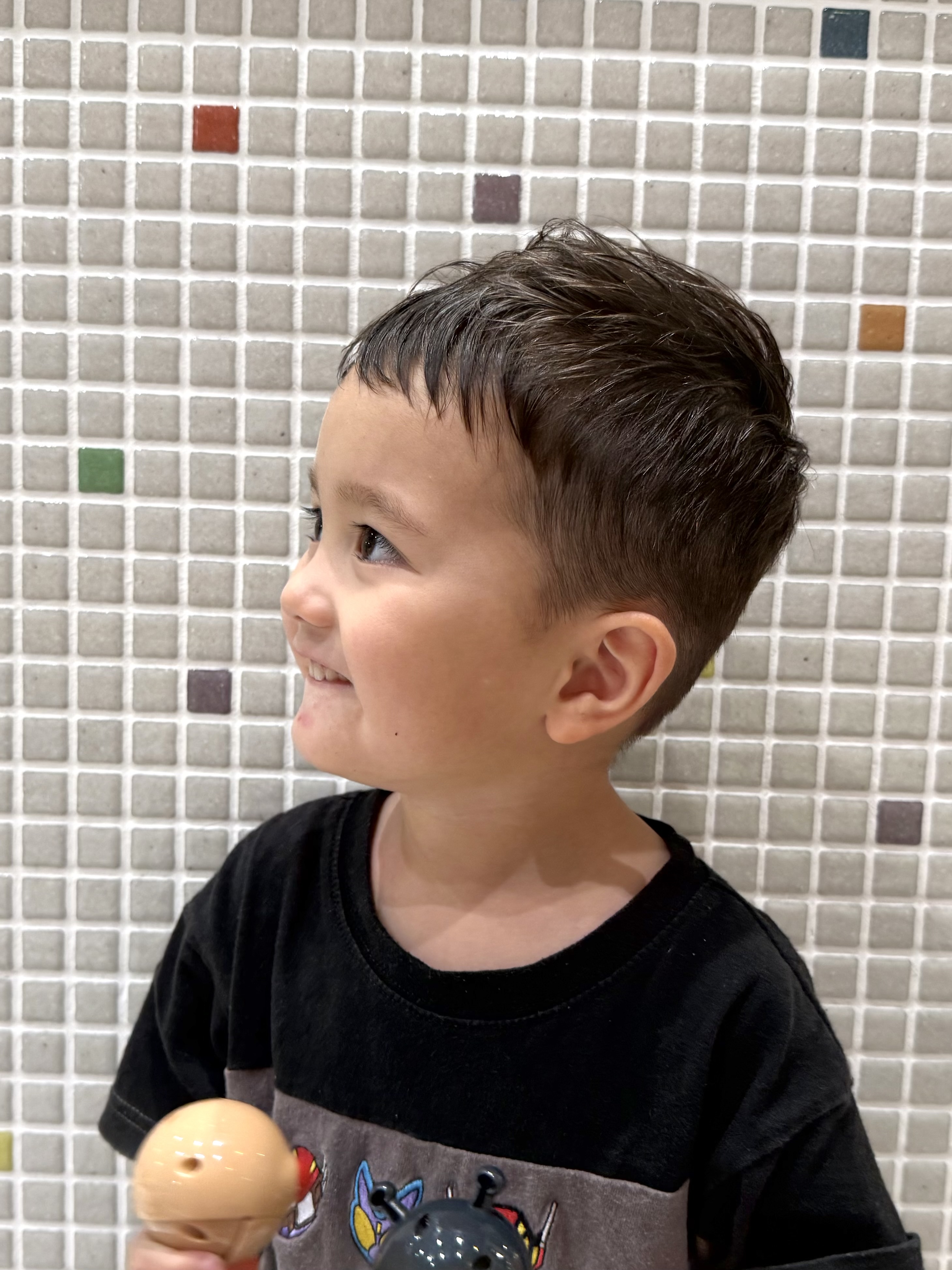 じいく君 3歳バリカンで刈り上げ、トップを短めにしたソフトモヒカンスタイルです!終始ニコニコ☺️沢山お話しをしてくれたじいく君雰囲気に合うようナチュラルな仕上がりにしましたお写真のご協力ありがとうございましたまたのご来店をお待ちしております
